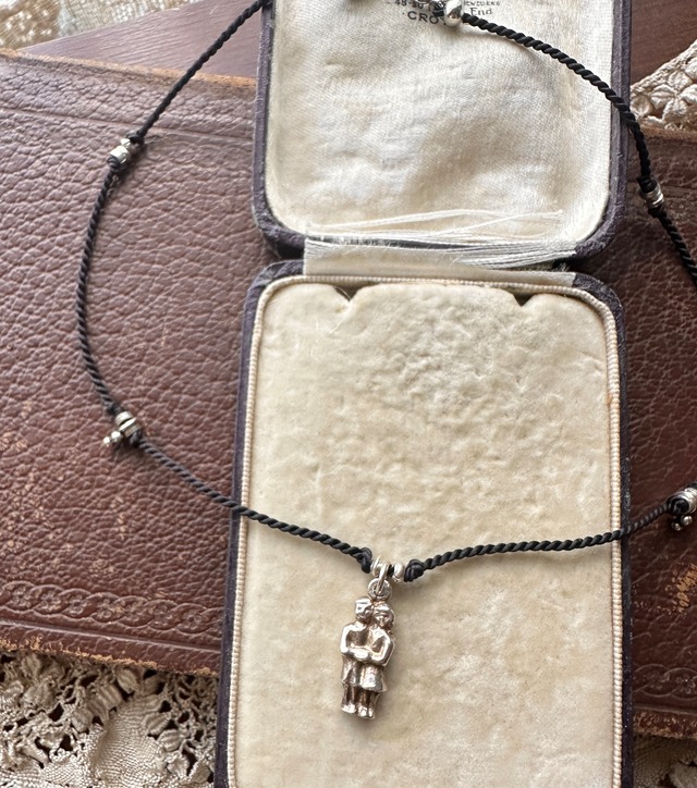 アンティーク カップルリングデザイン Silver925チャーム ハンドメイドシルク紐ネックレス ― 1点もの ―