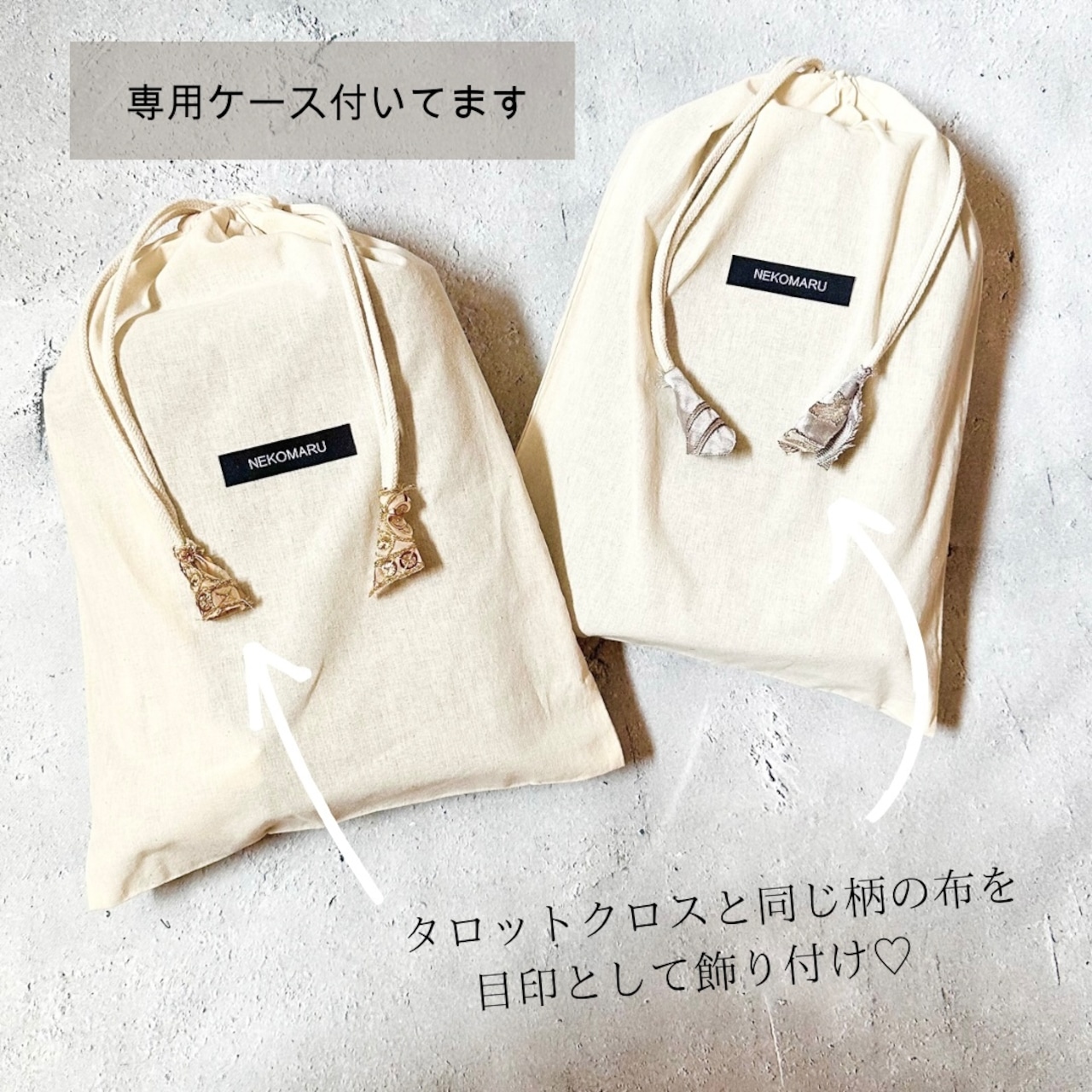 NEKOMARUタロットクロス専用の巾着ポーチをおつけします。