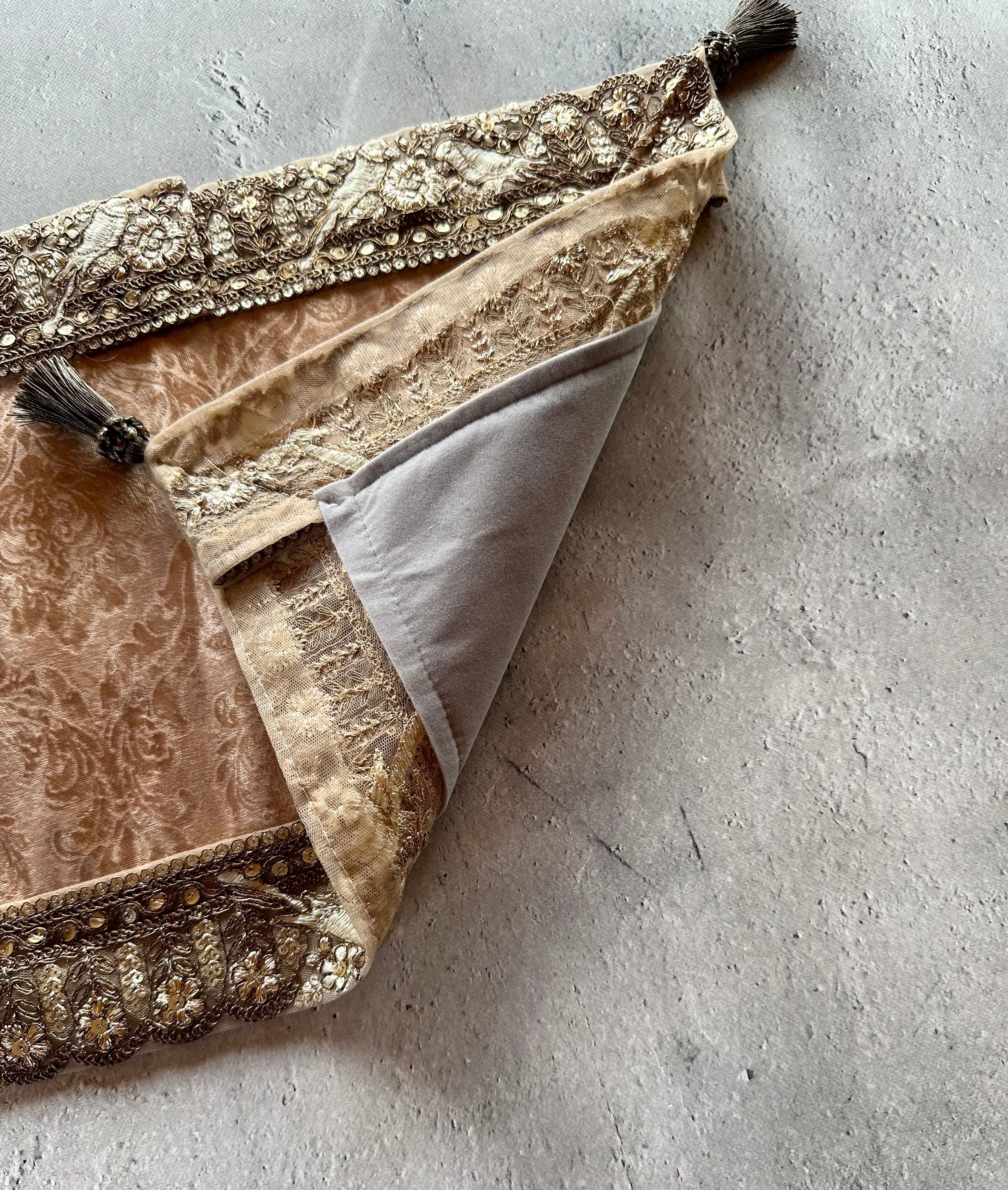 インド製ゴールド刺繍リボン×ロココ調ベルベット タロットカードベットクロス スタンバイマット ハンドメイド Made in JAPAN アクセサリーディスプレイ ディスプレイマット