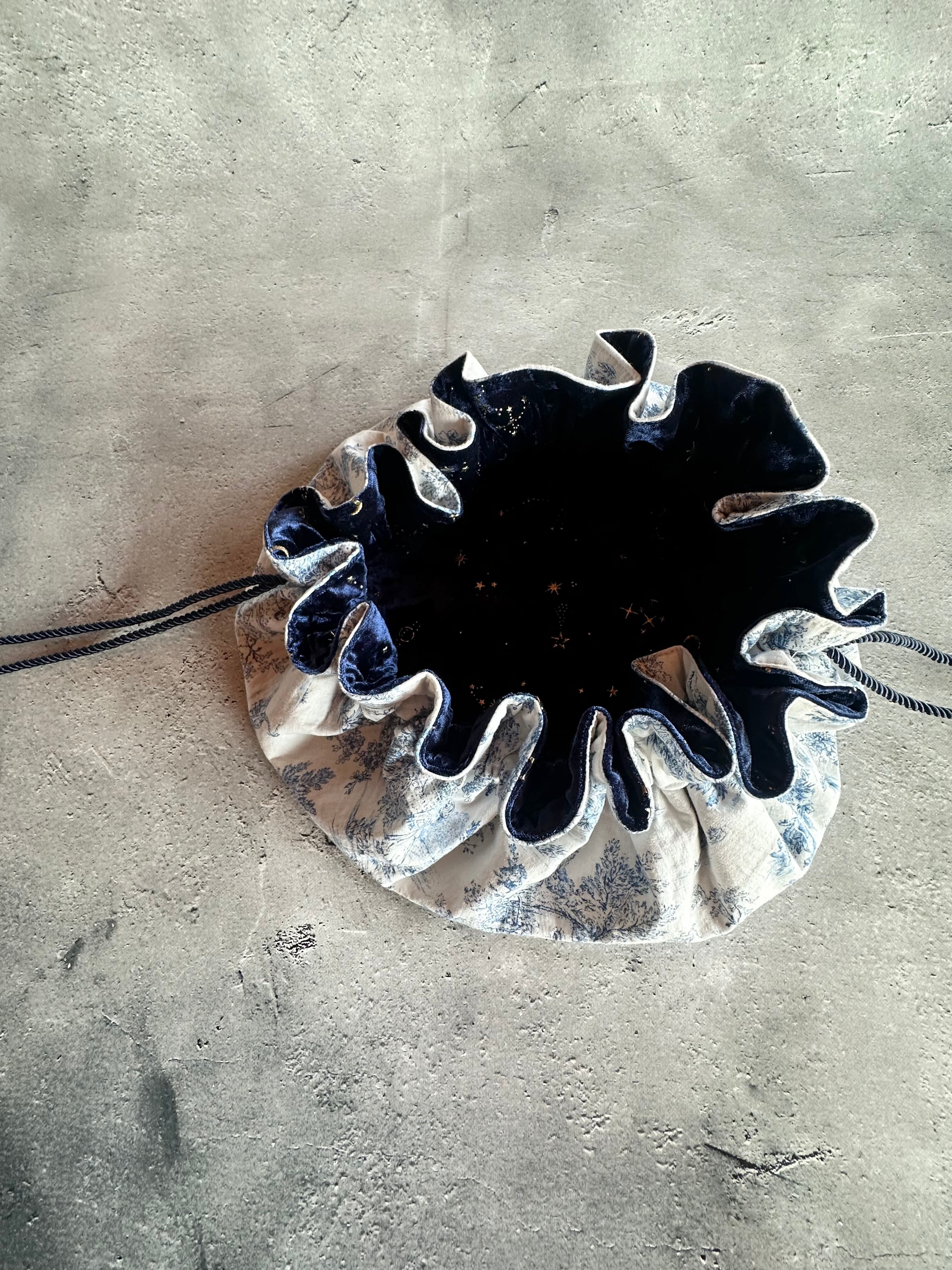 タロットカードやオラクルカードを優しく包み込む、リバーシブル仕様のタロットクロス兼巾着袋です。