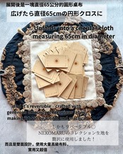 広げれば直径約65cmの大判円形クロスに、絞ればころんと可愛い巾着型に変身。