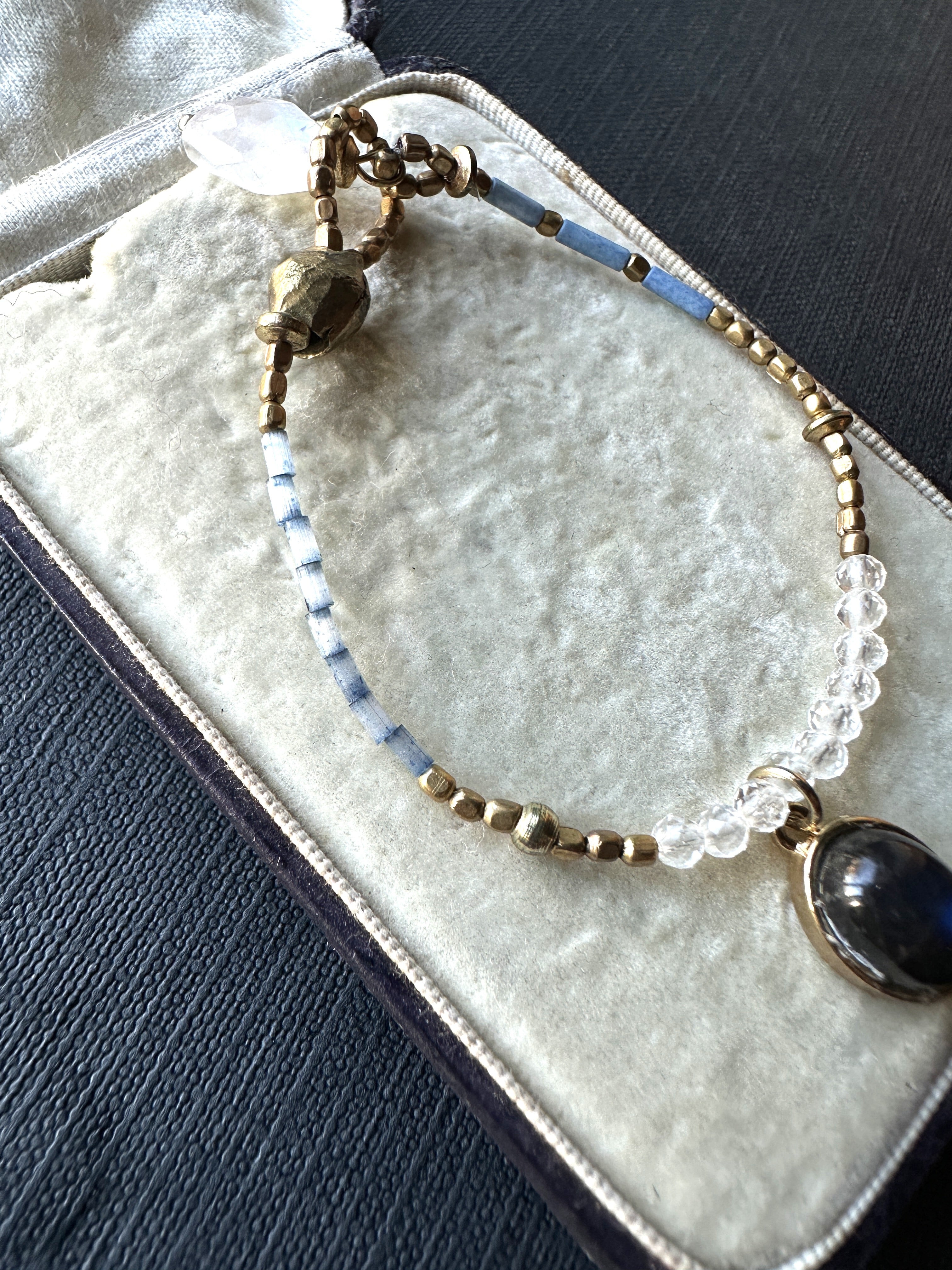 ブルーラブラドライド 藍染ビーズと真鍮ビーズのブレスレット
