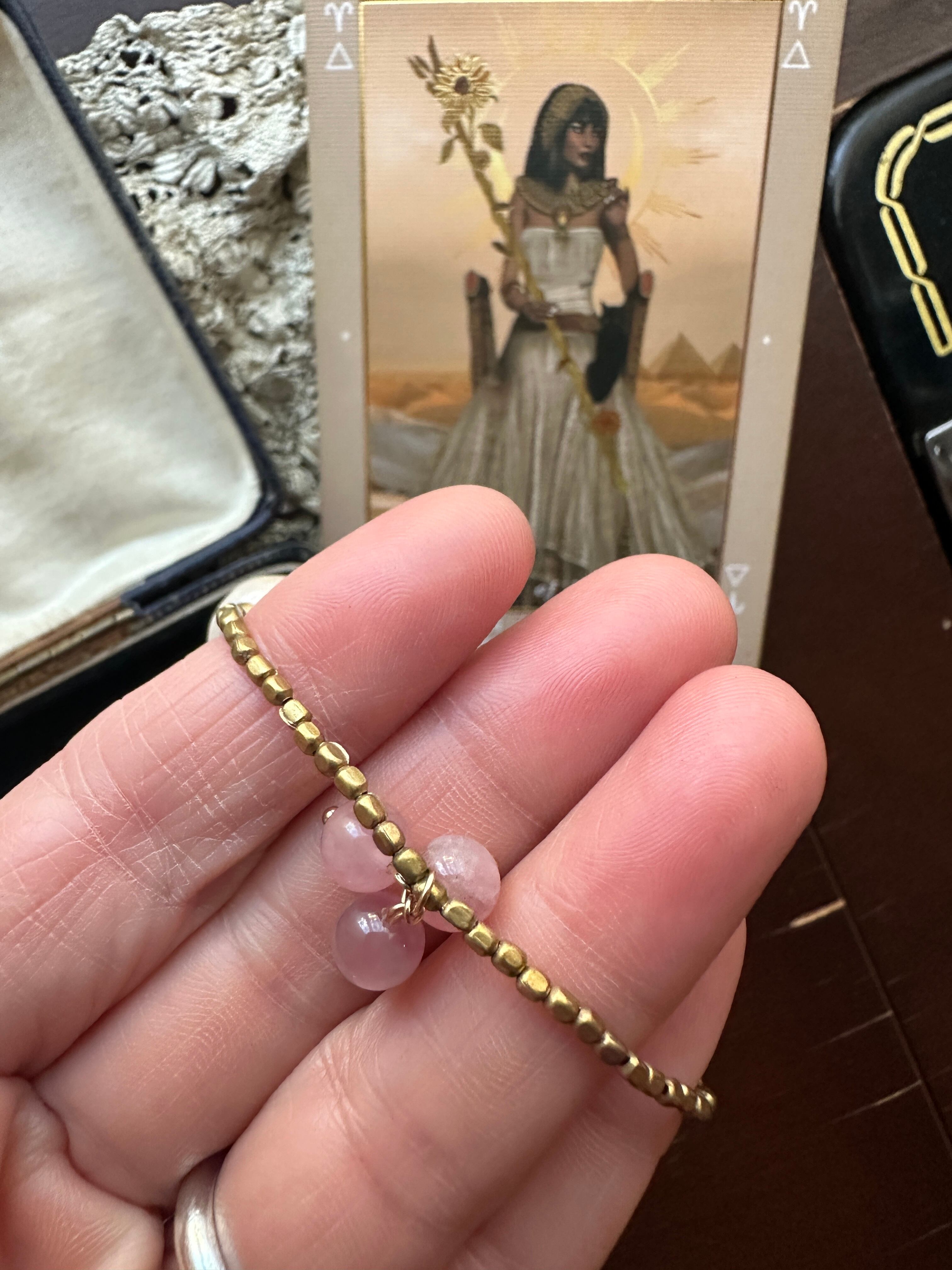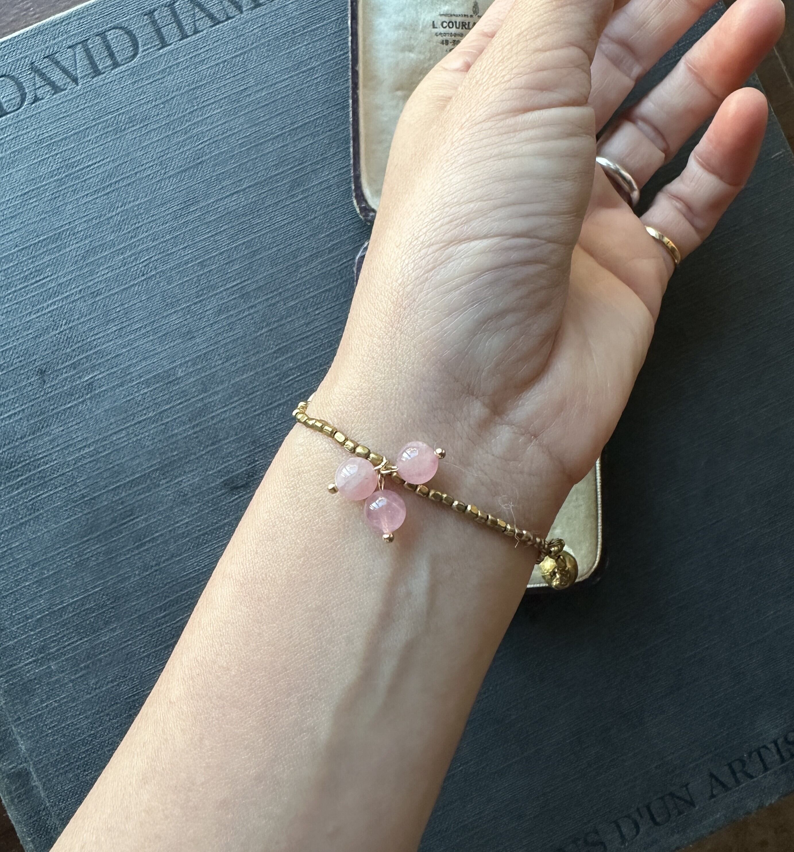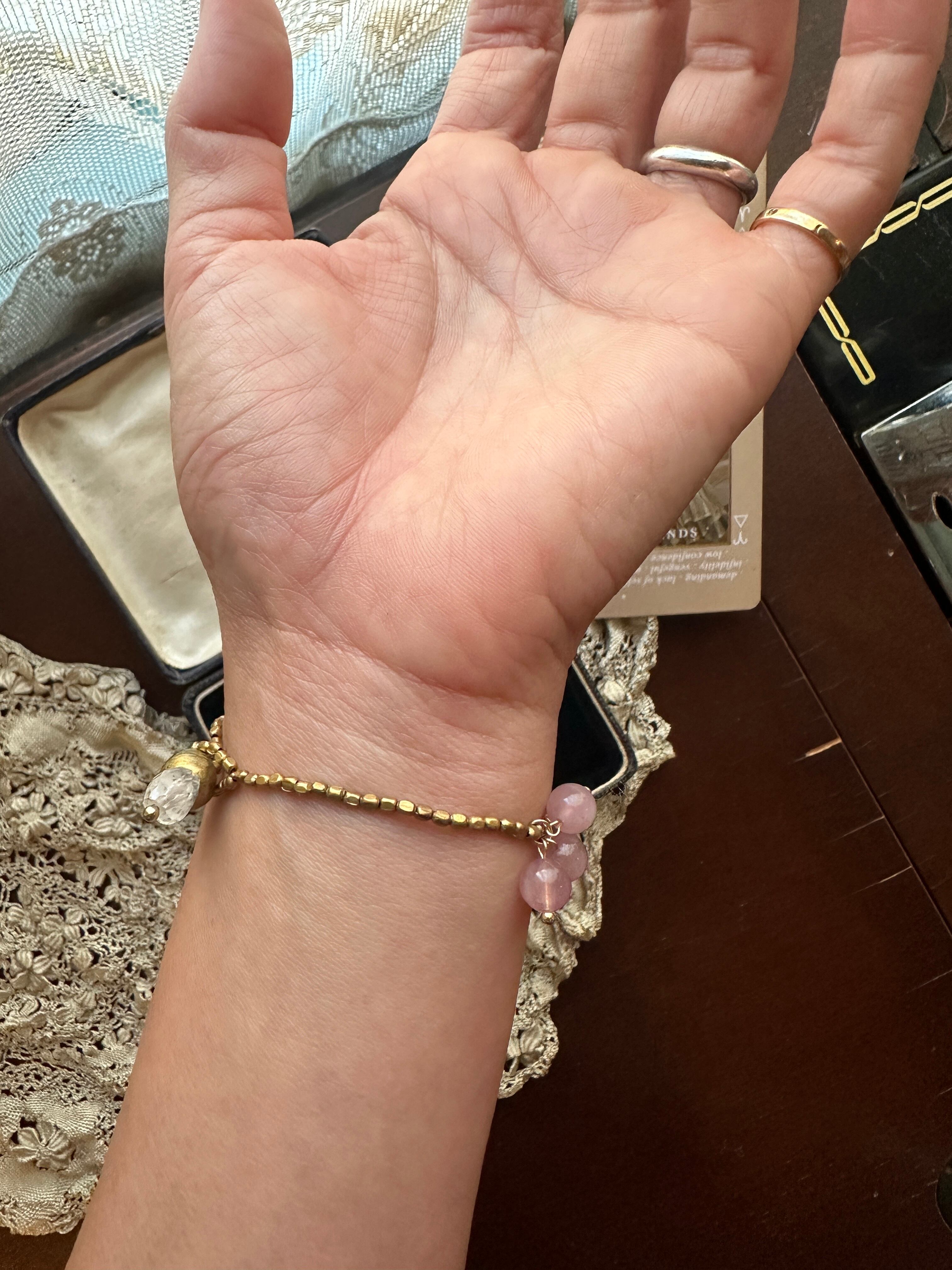ローズクオーツの柔らかなピンクは全体に穏やかさを、
