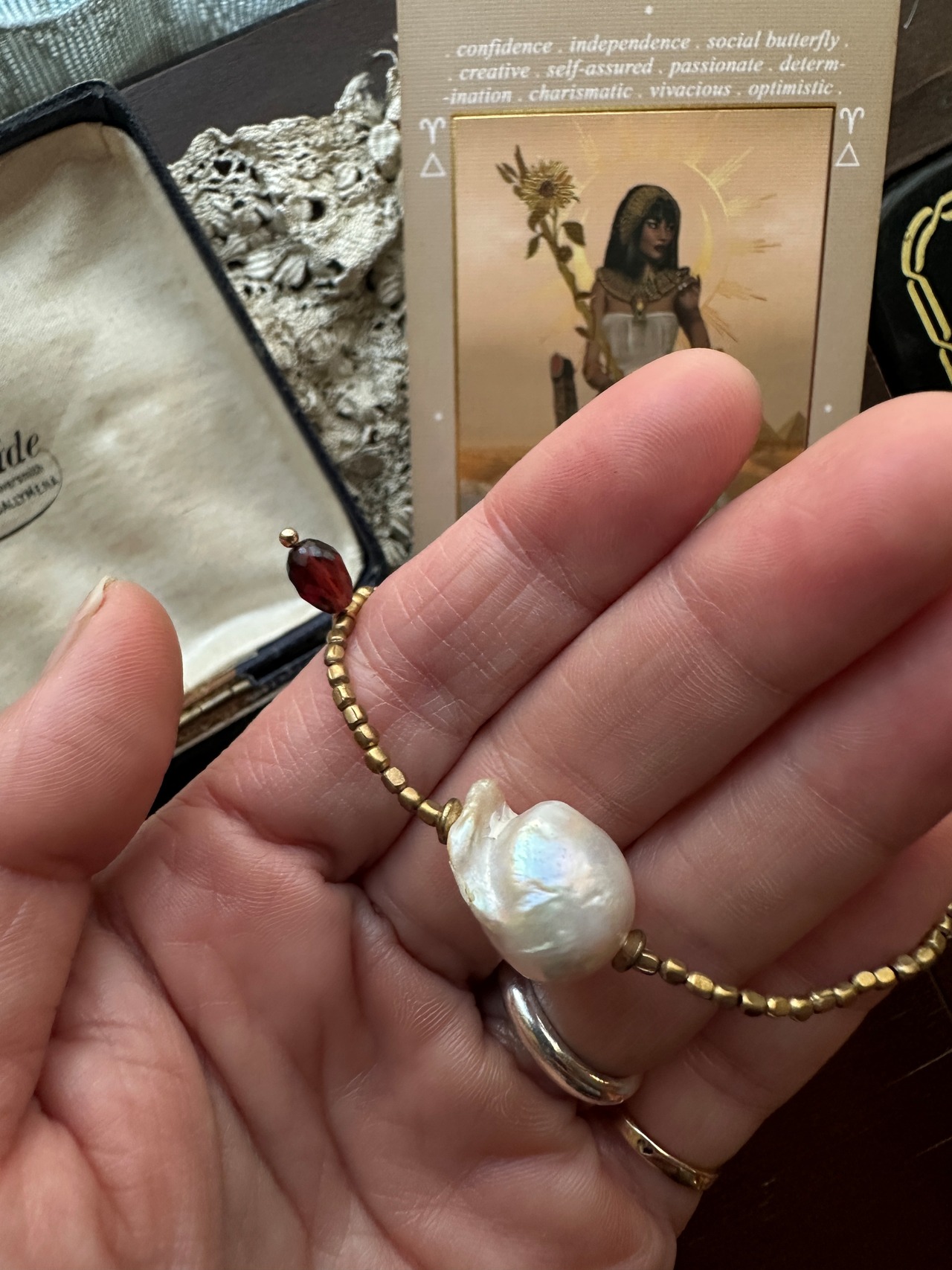 深みのある赤が印象的なガーネットを組み合わせました。