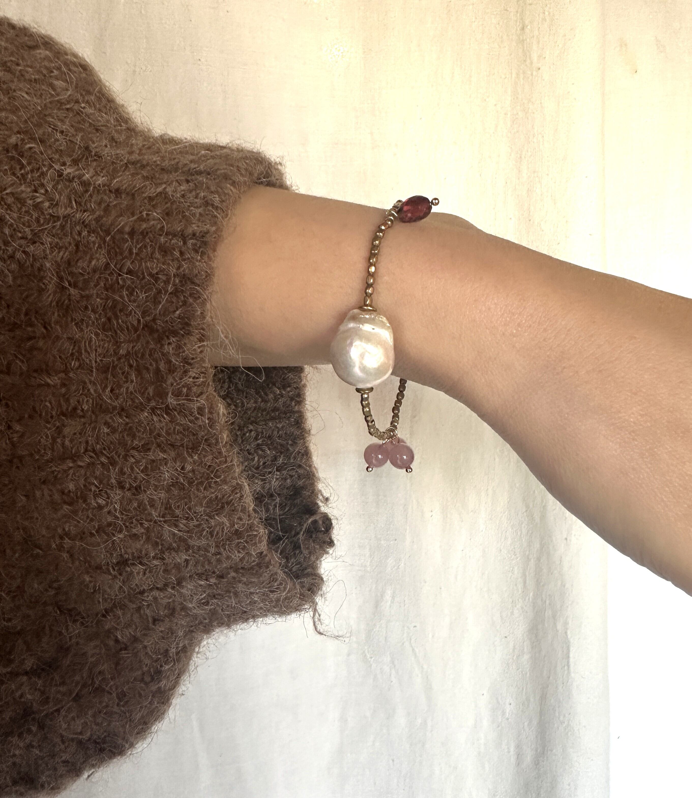MINZOKU ブレスレット バロックパール×ローズクオーツ×ガーネット