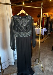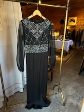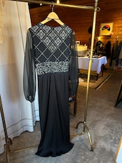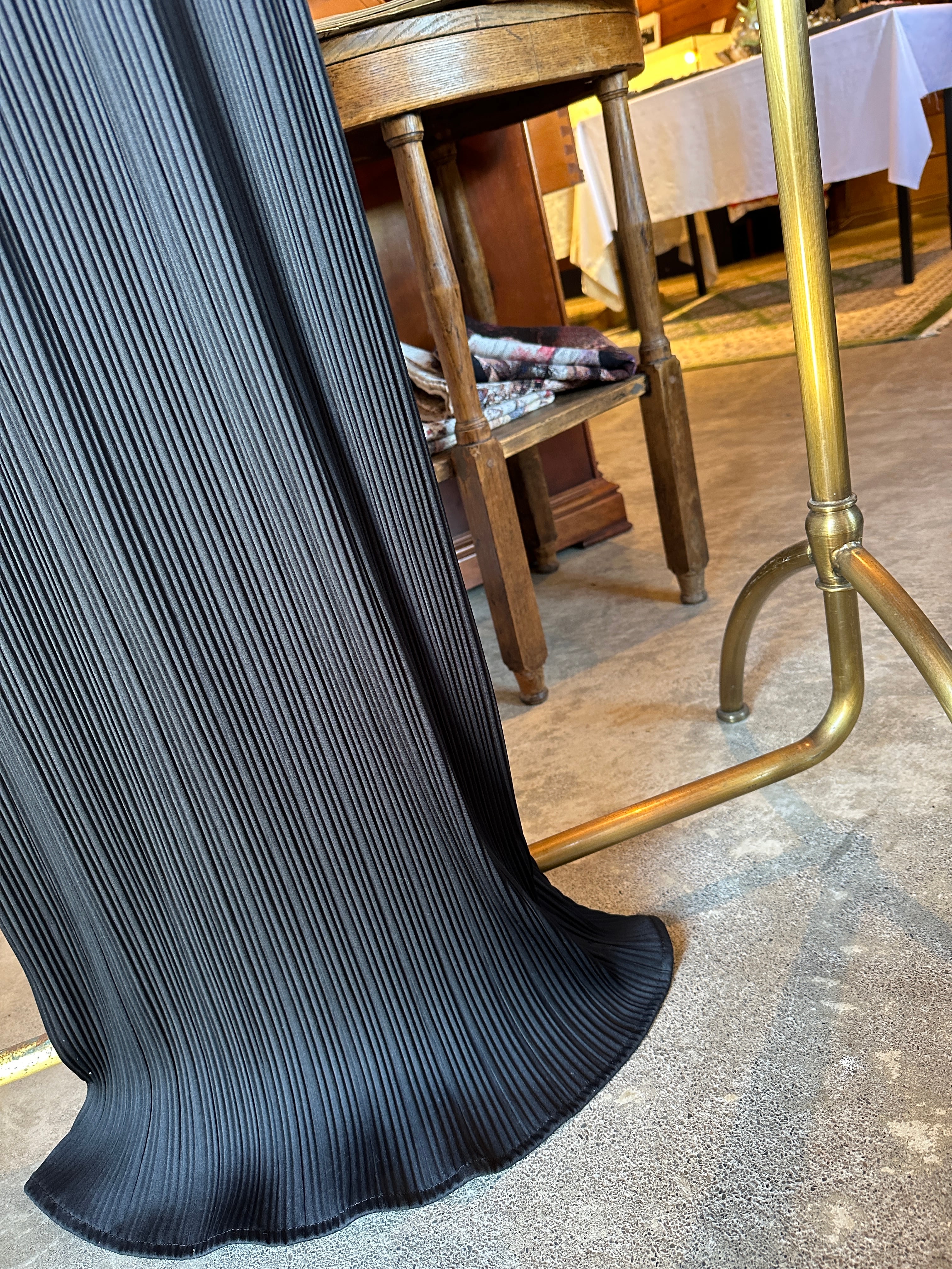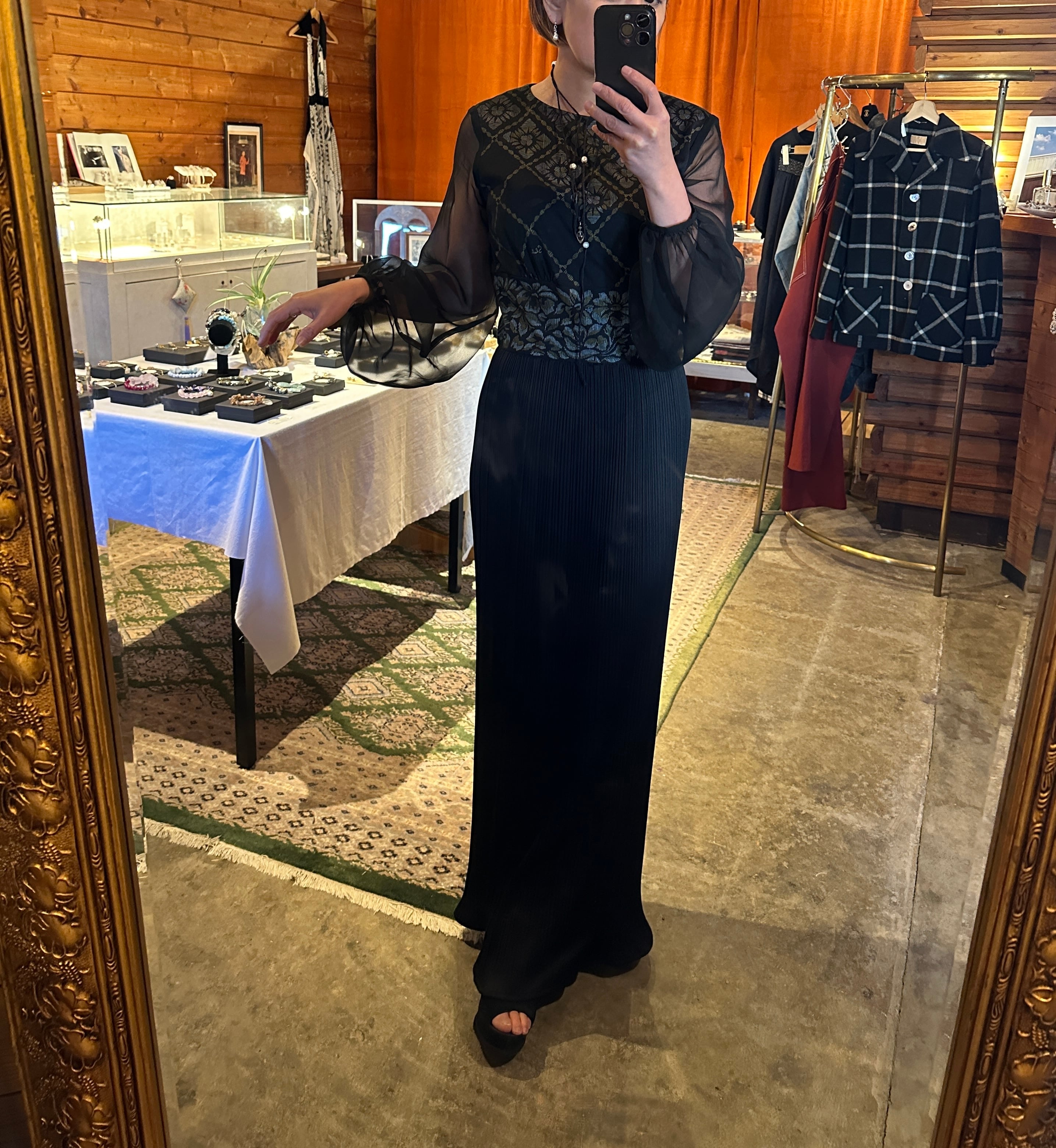 こちらは細かいプリーツと、マーメイドラインが個性的なデザイン。