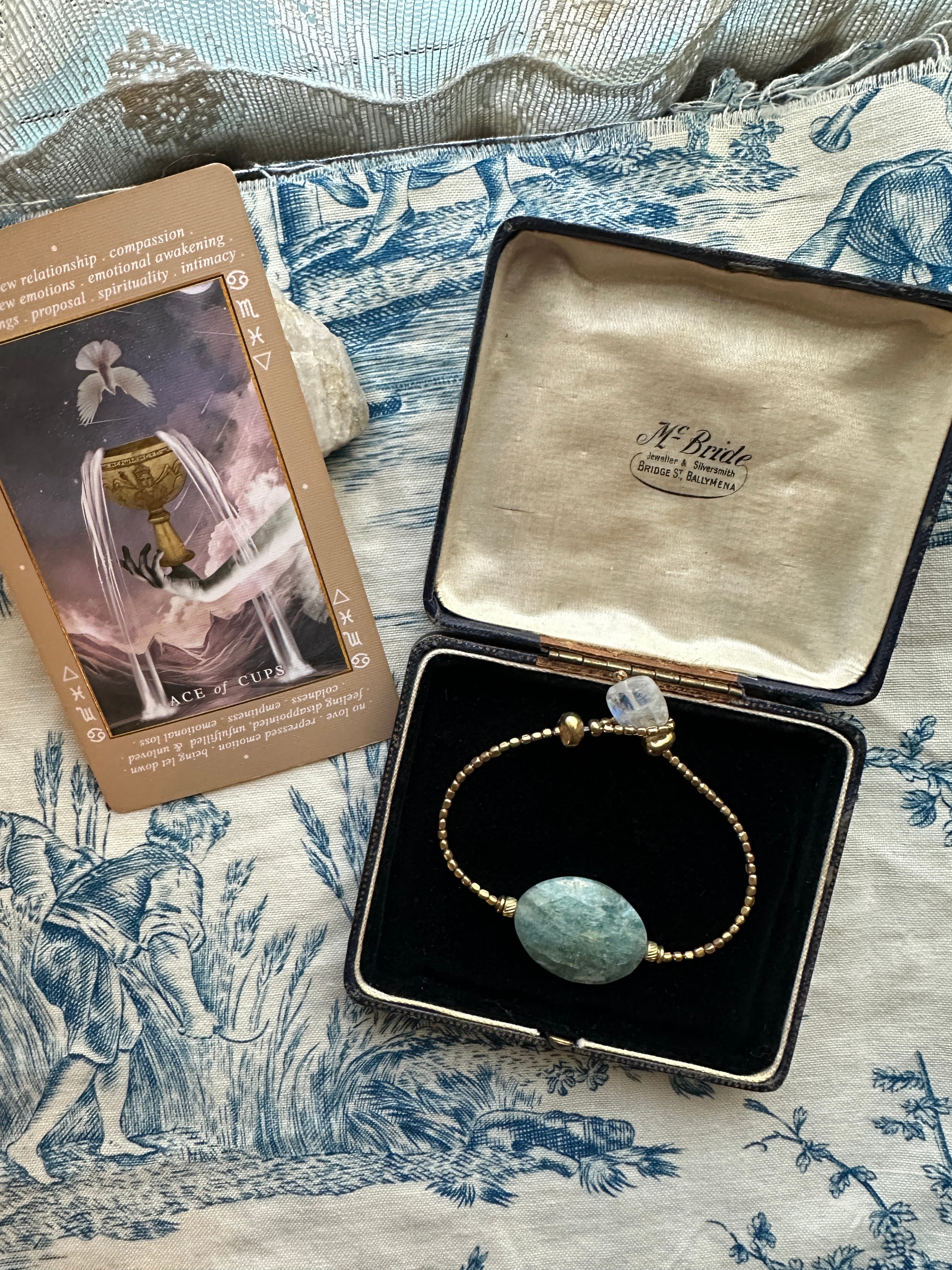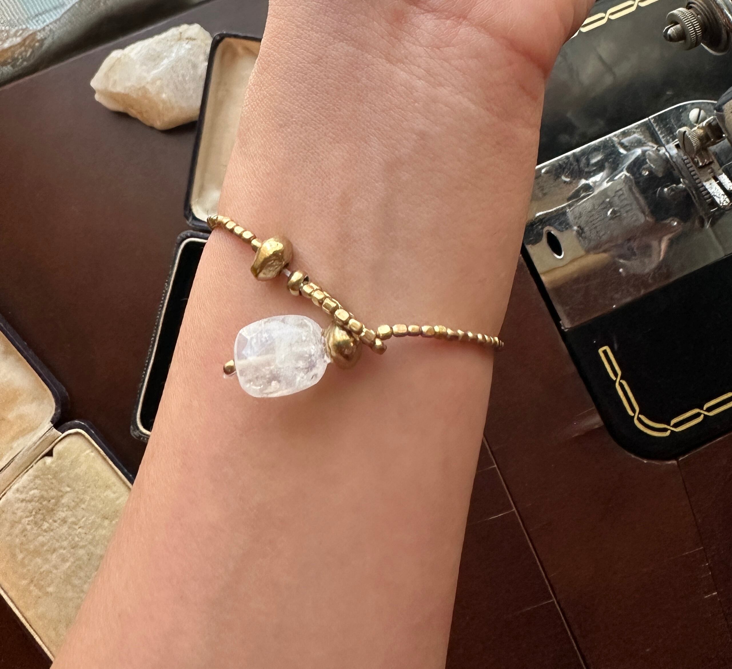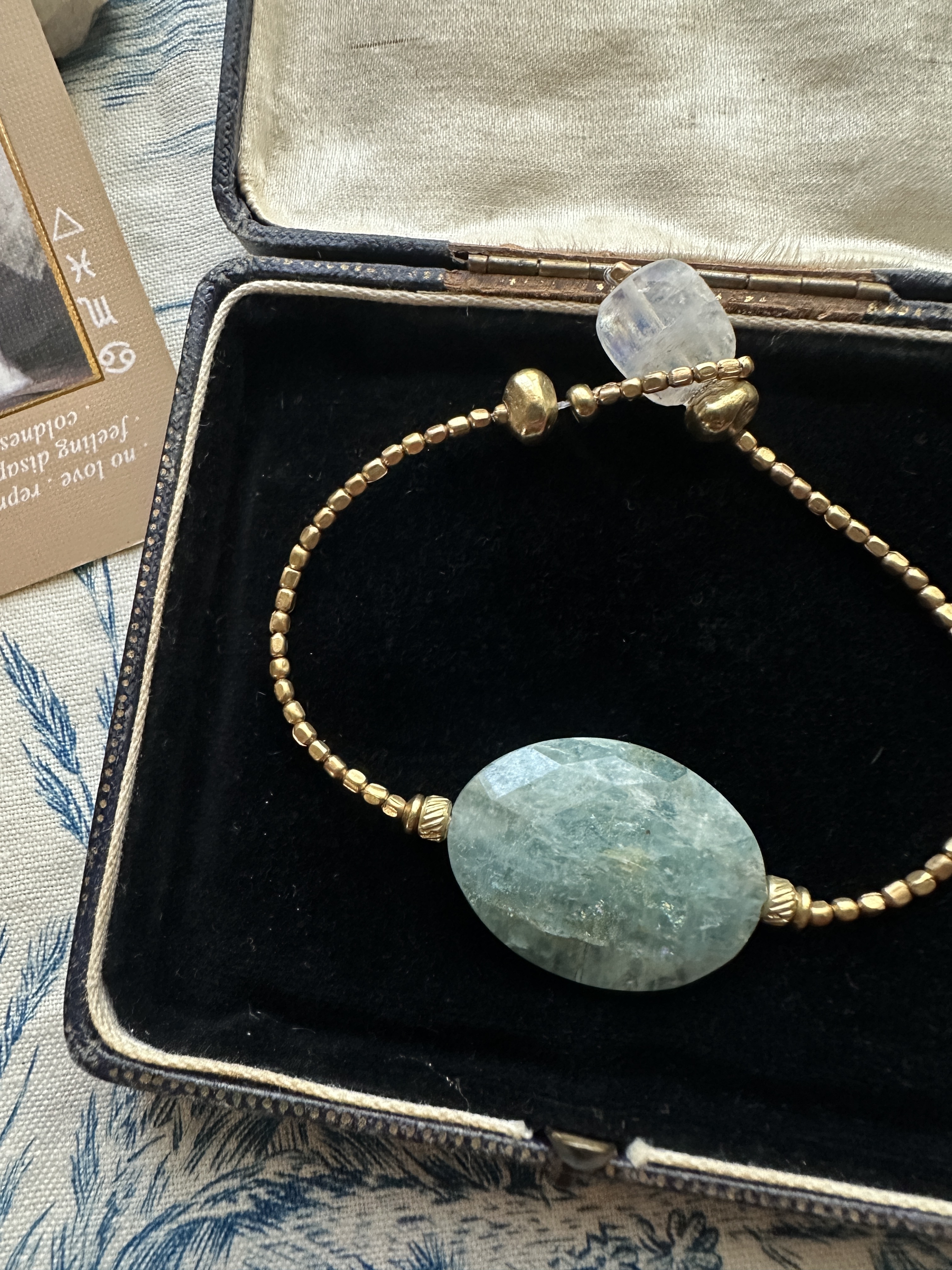 アクアマリン × レインボームーンストーン アフリカン真鍮ビーズ ブレスレット