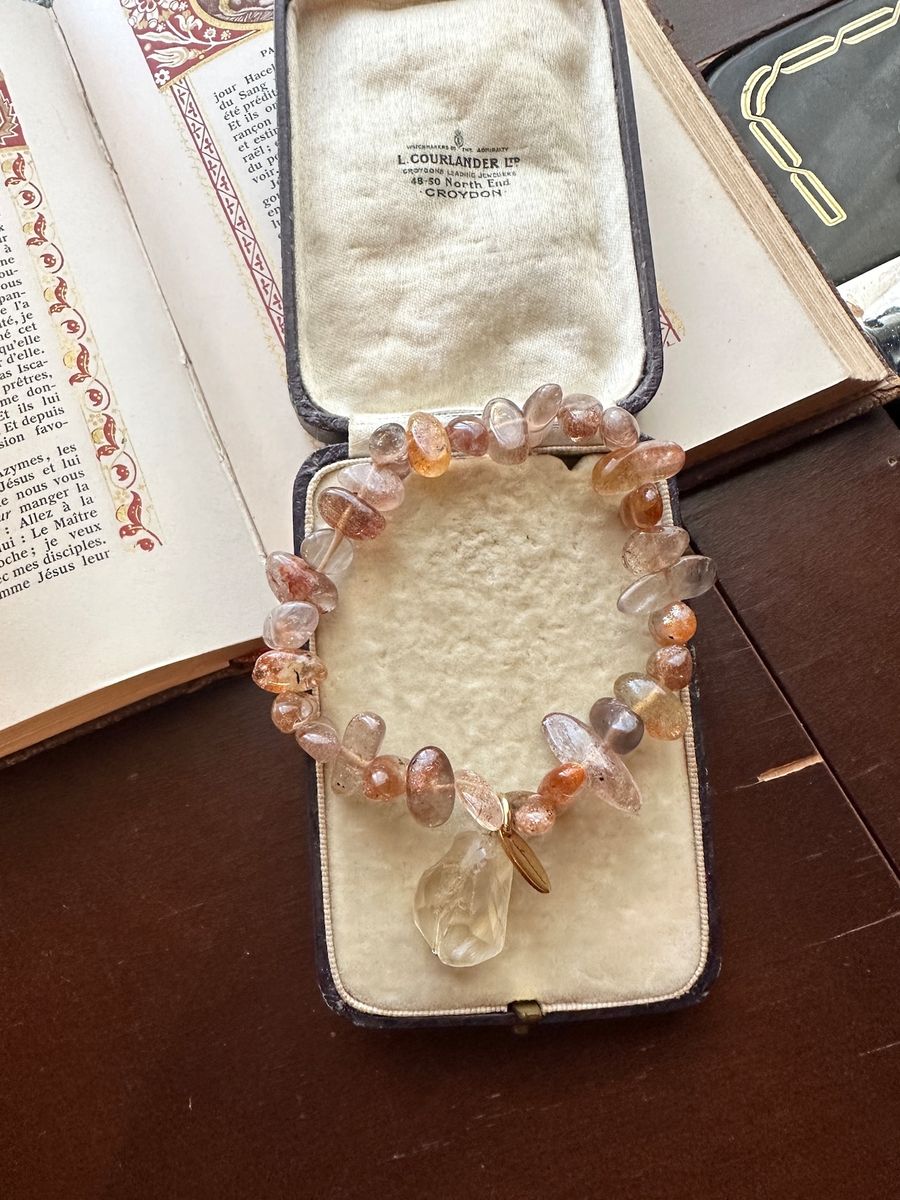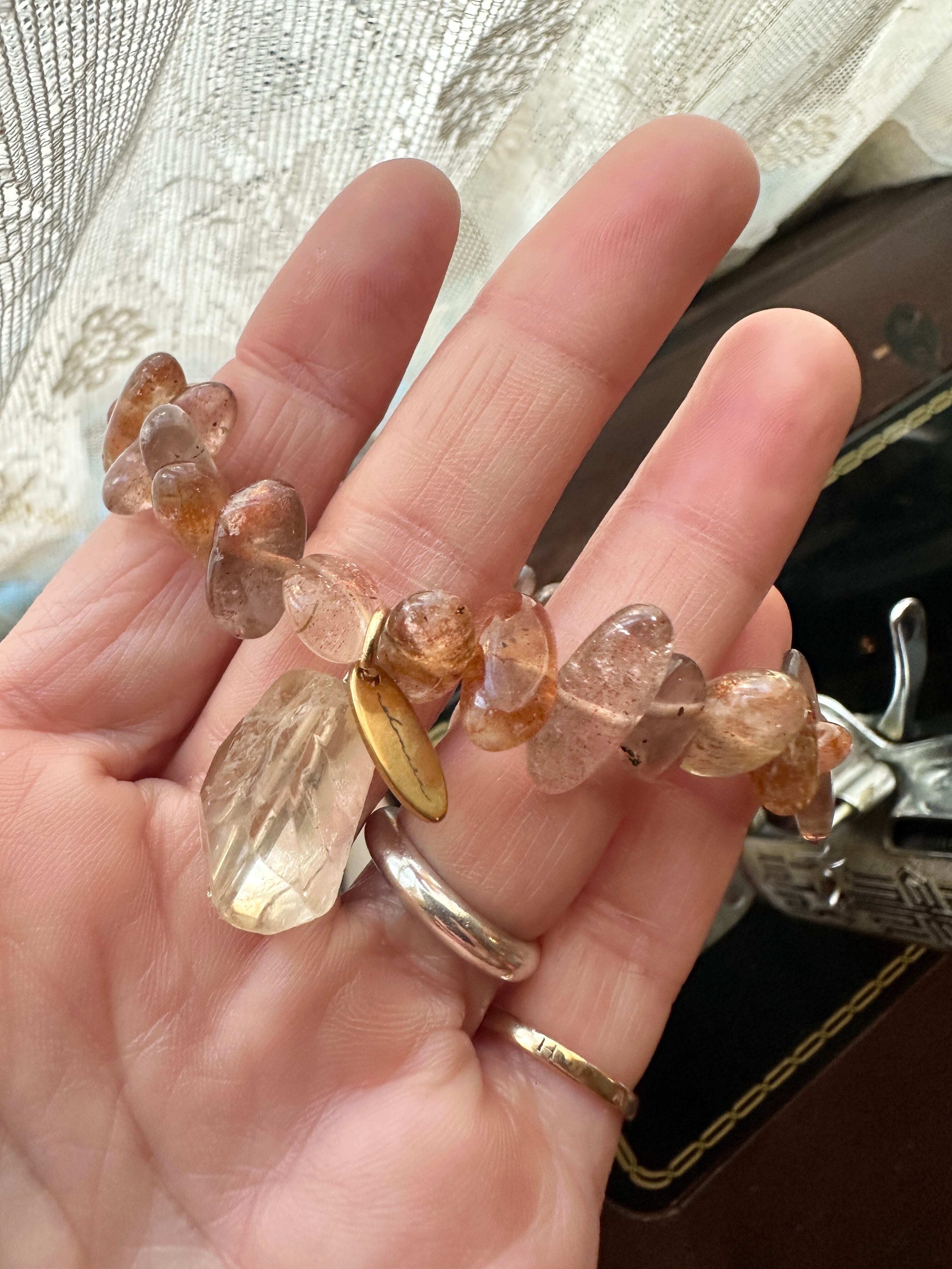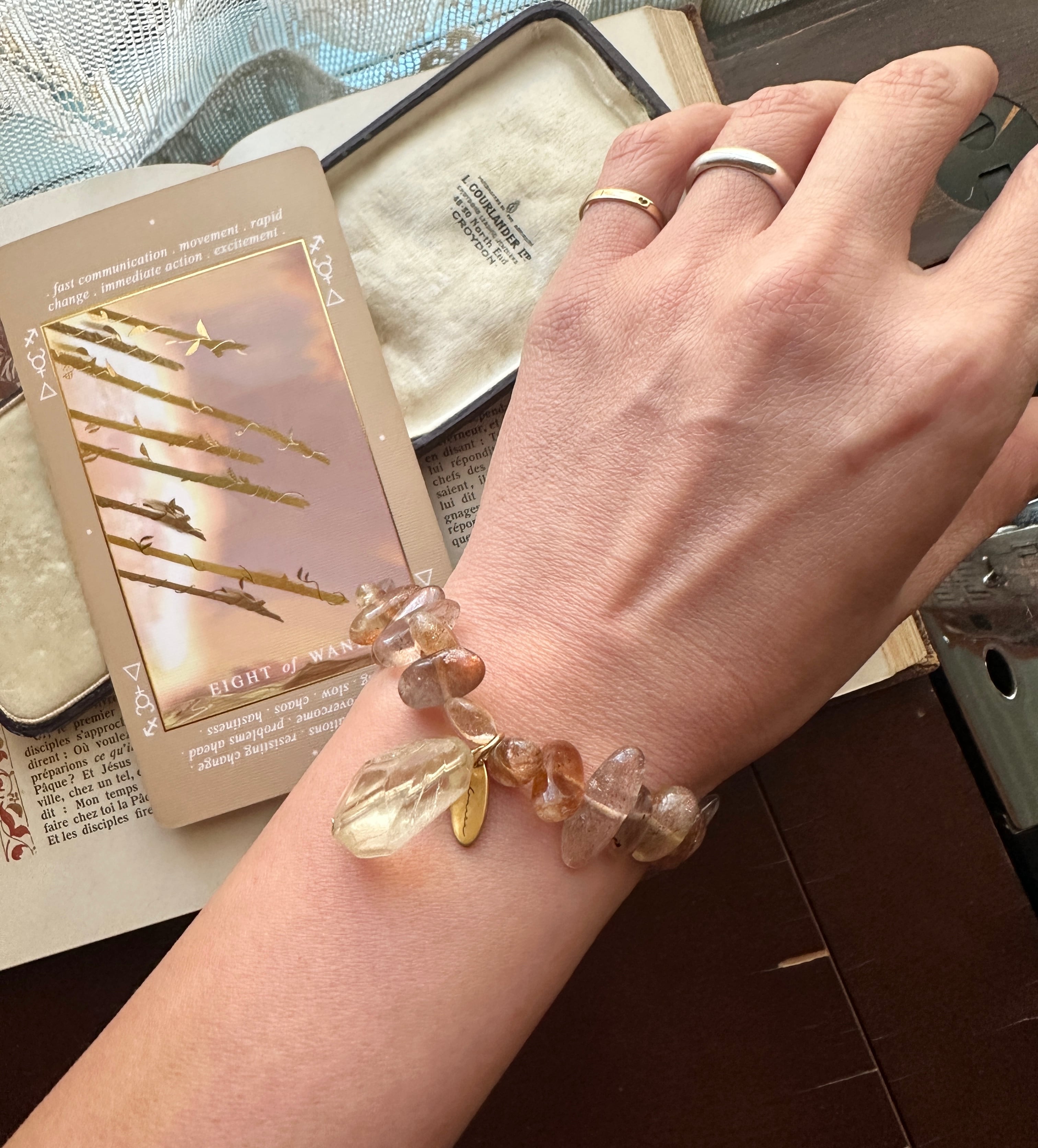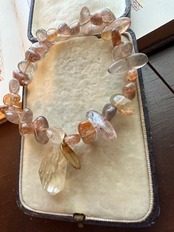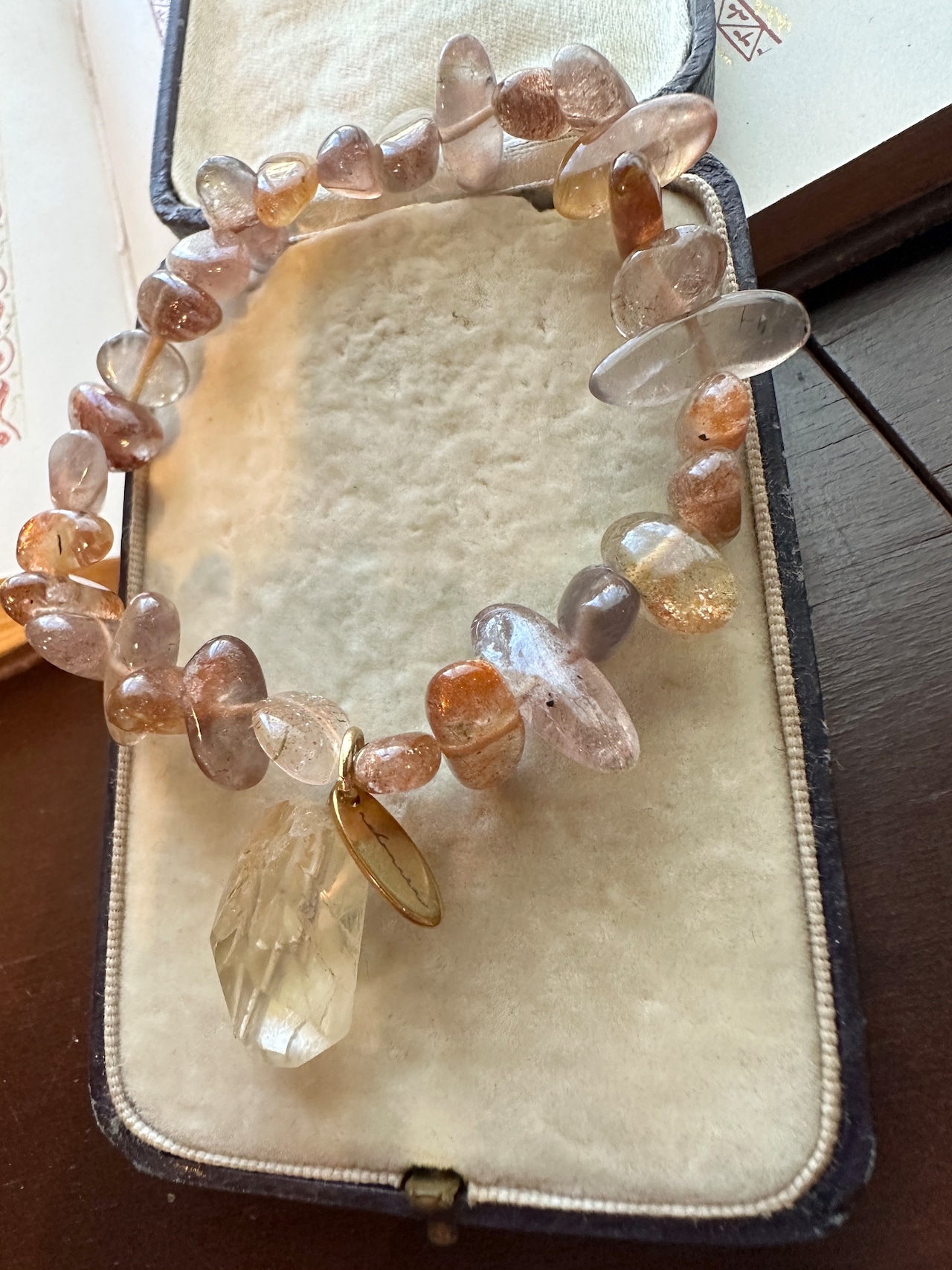 希少な大粒シトリンのラフロックを主役として組み合わせたブレスレット。