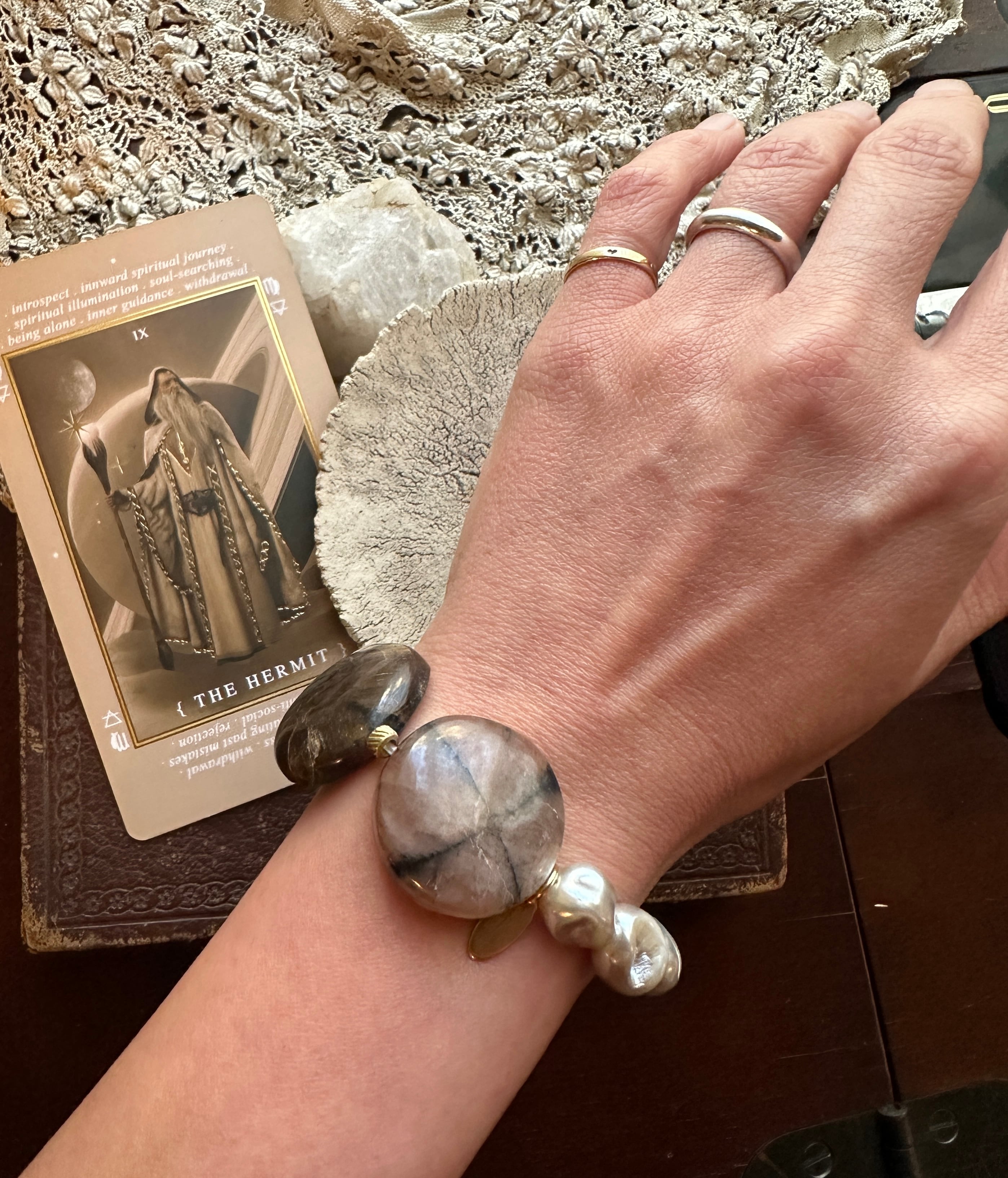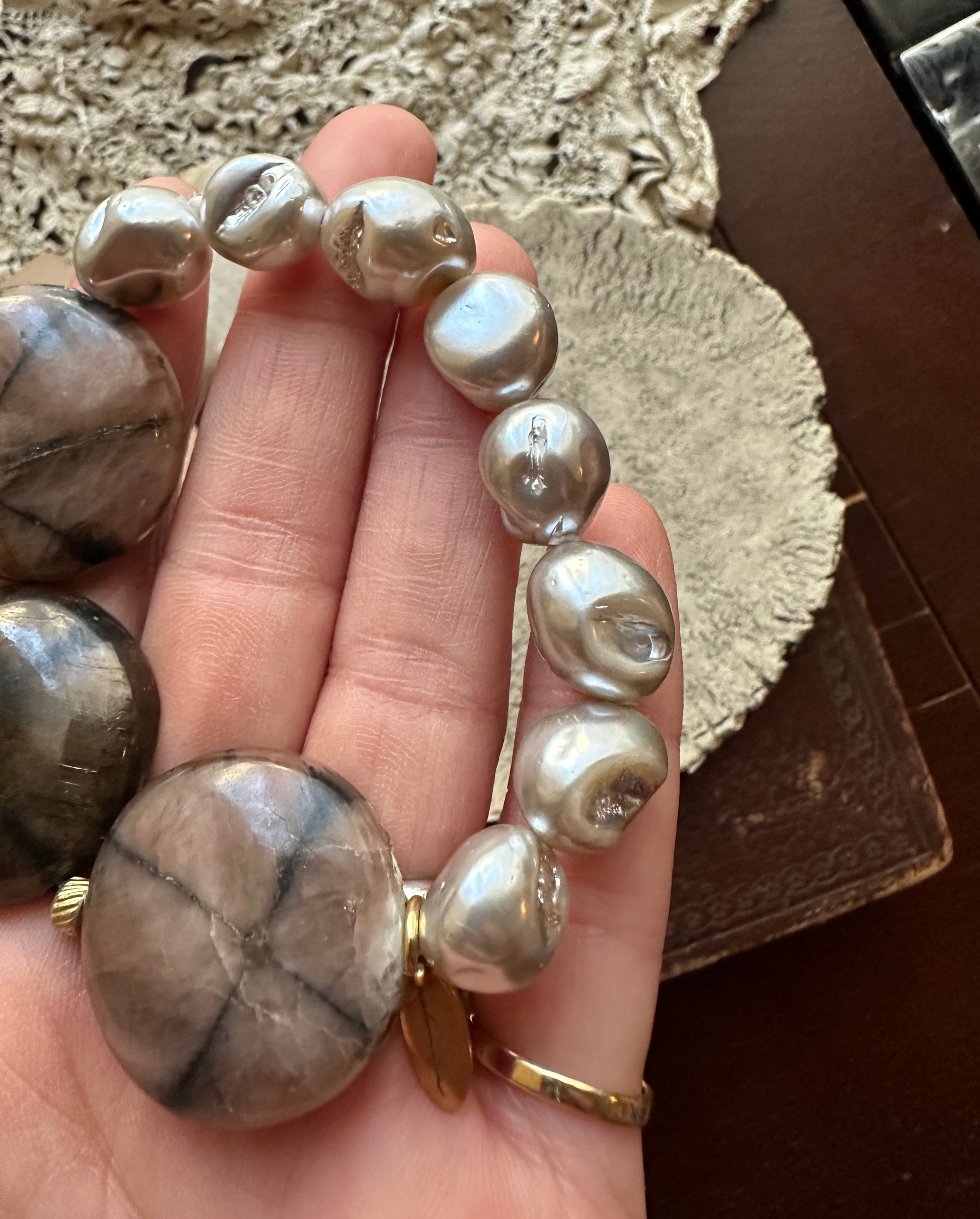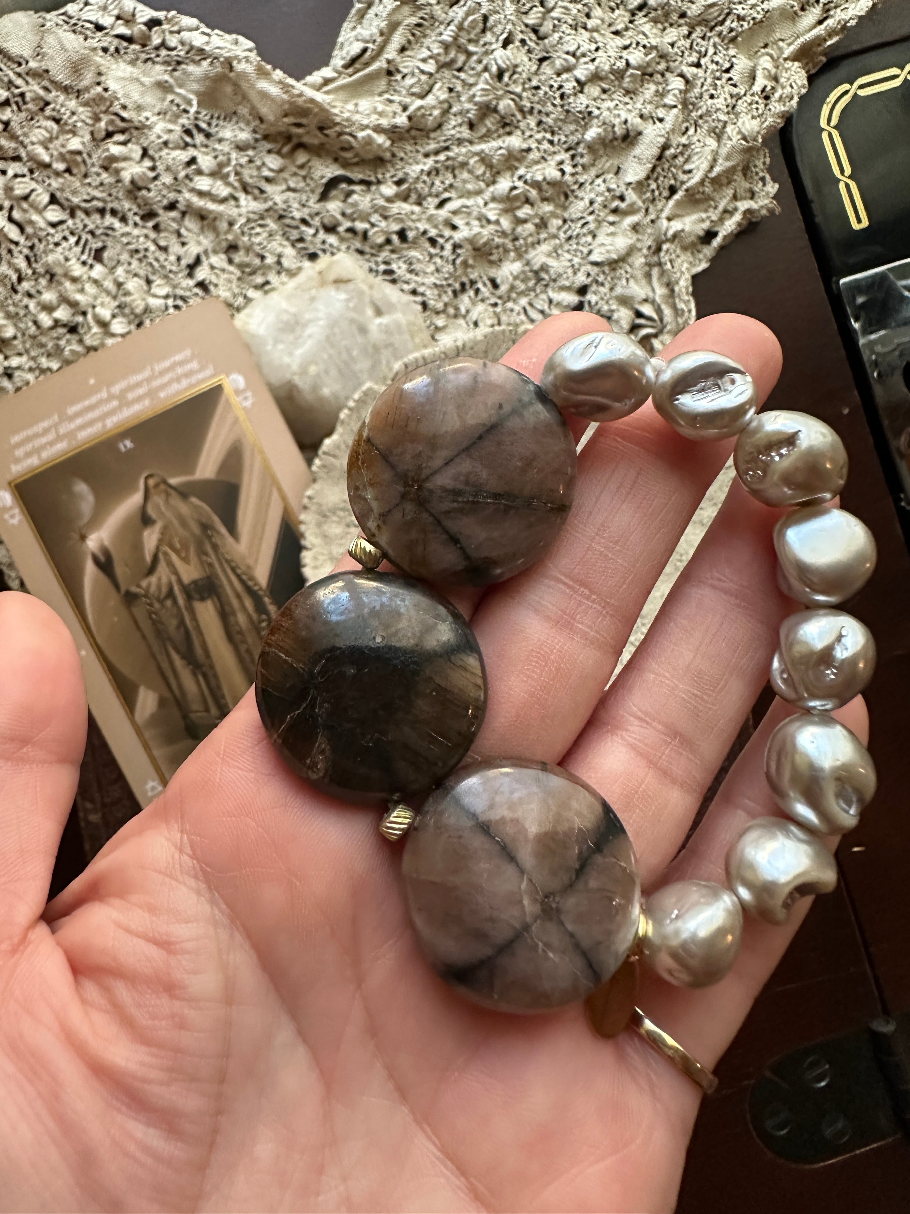 キアストライト × 貝パール ブレスレット