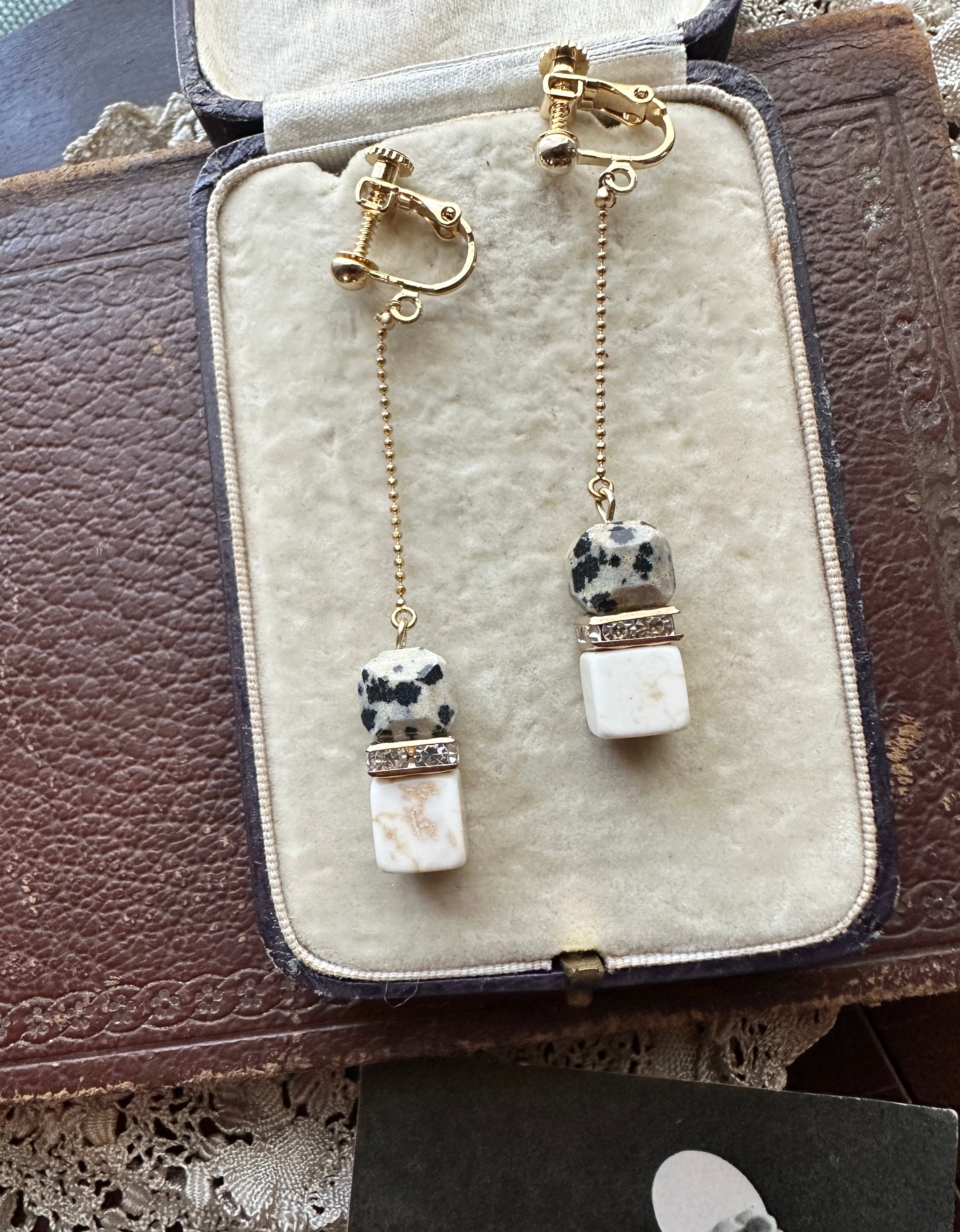 ダルメシアンジャスパー × ホワイトターコイズ キラキラロンデル チェーンピアス