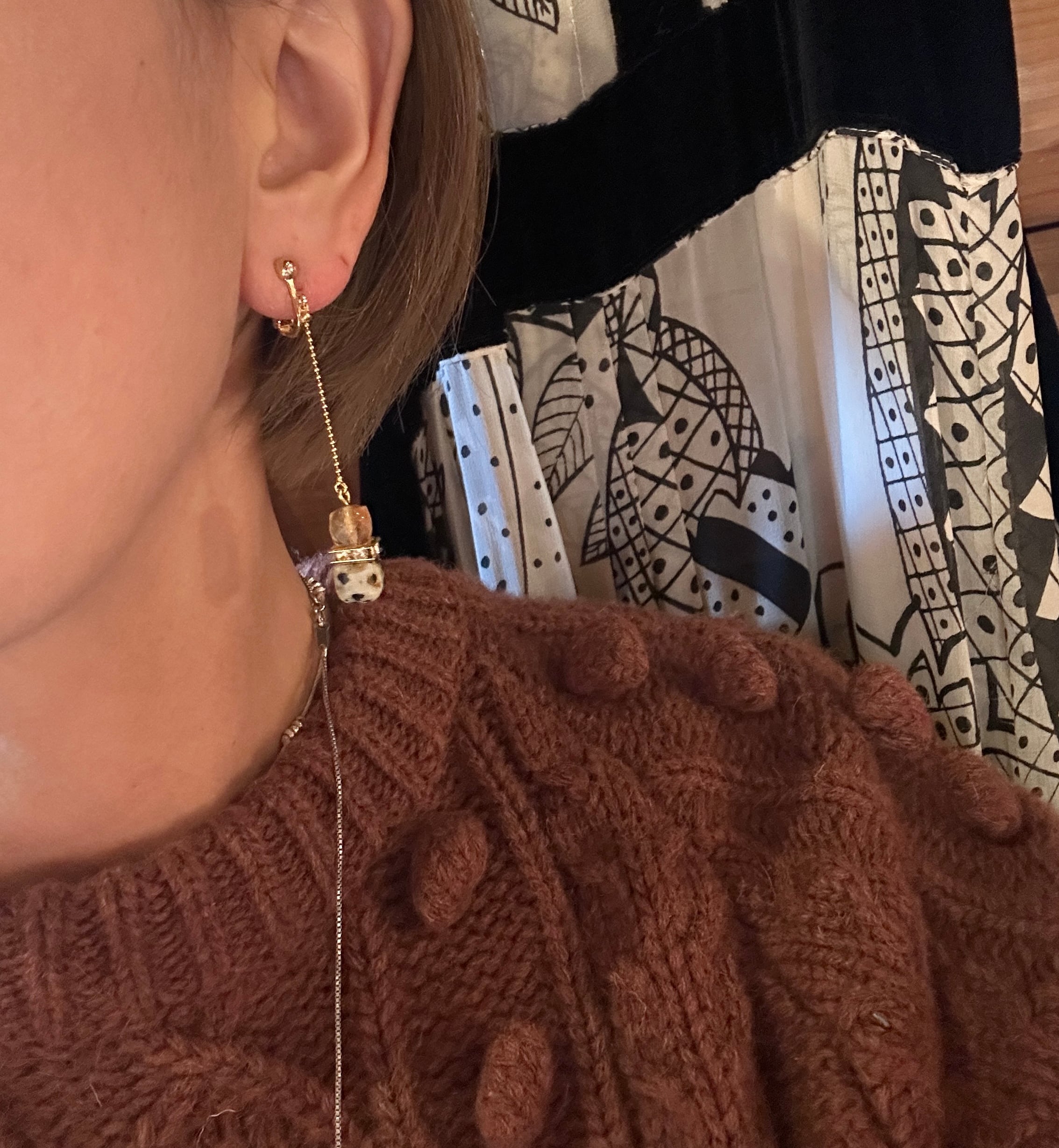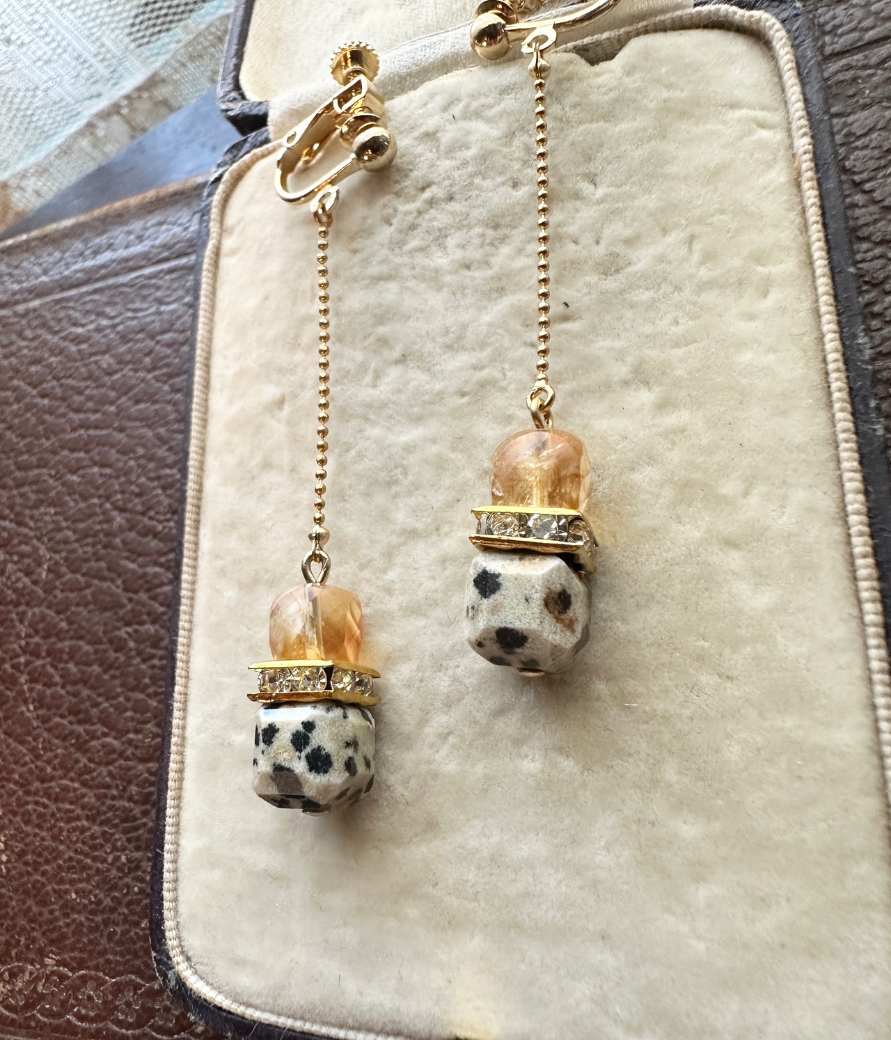 ダルメシアンジャスパー × シトリン キラキラロンデル チェーンピアス/イヤリング