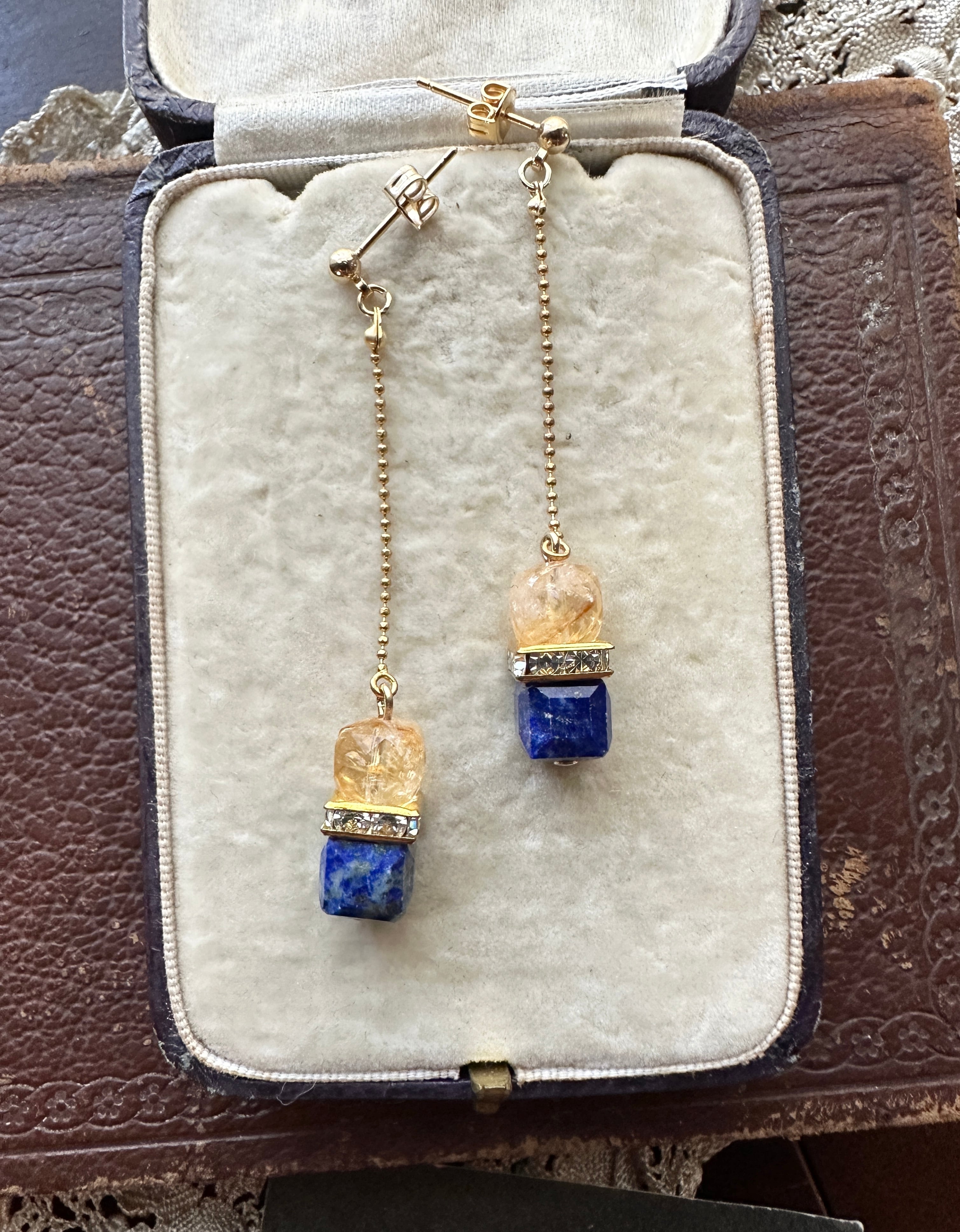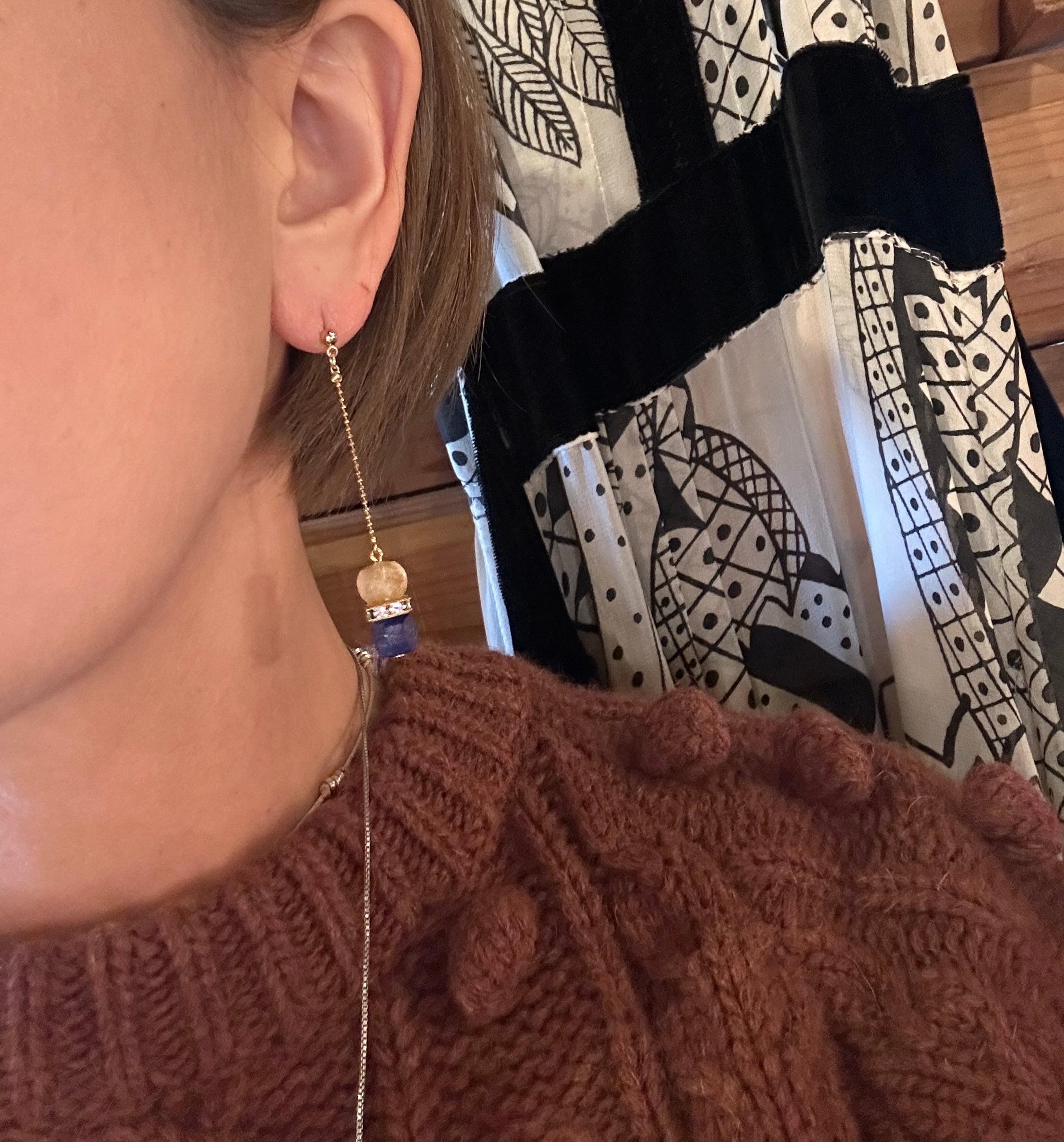 シトリン × ラピスラズリ キラキラロンデル チェーンピアス