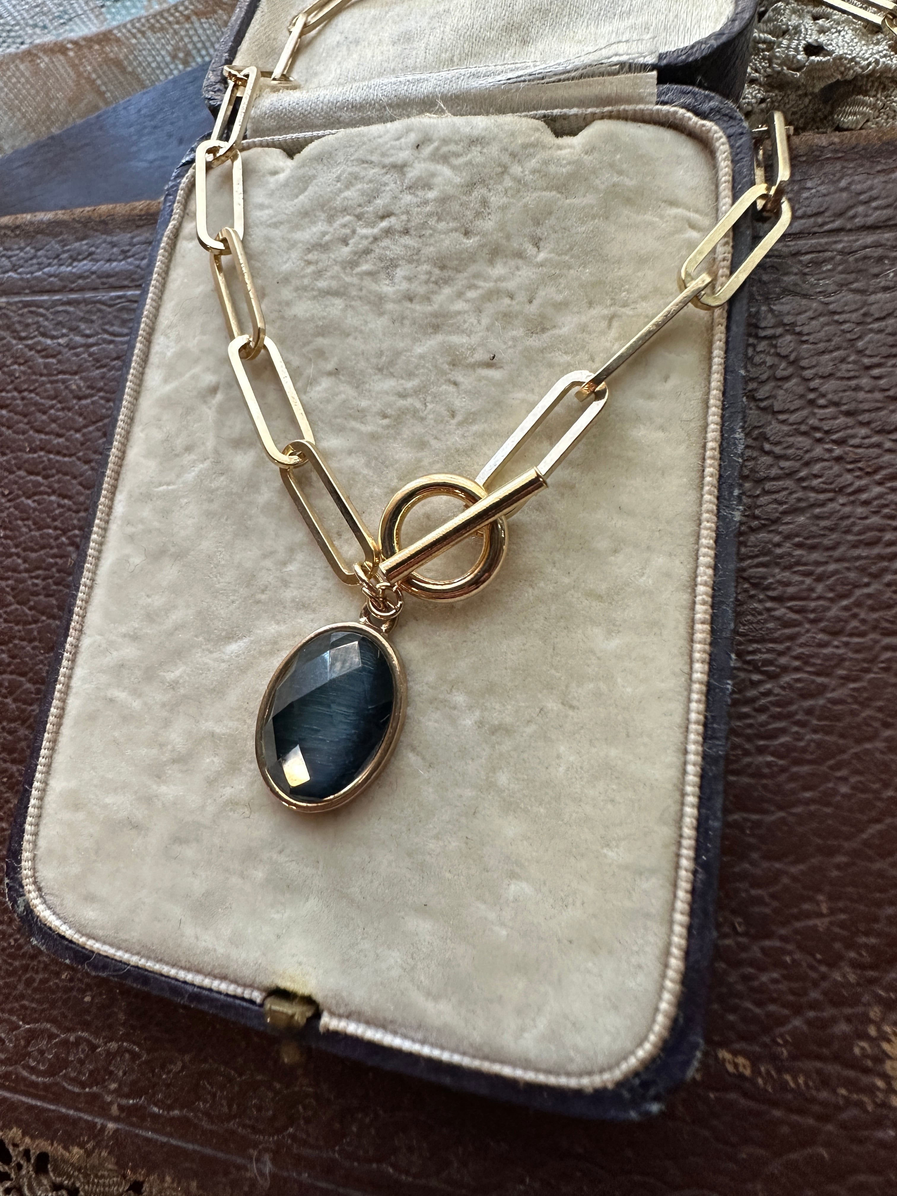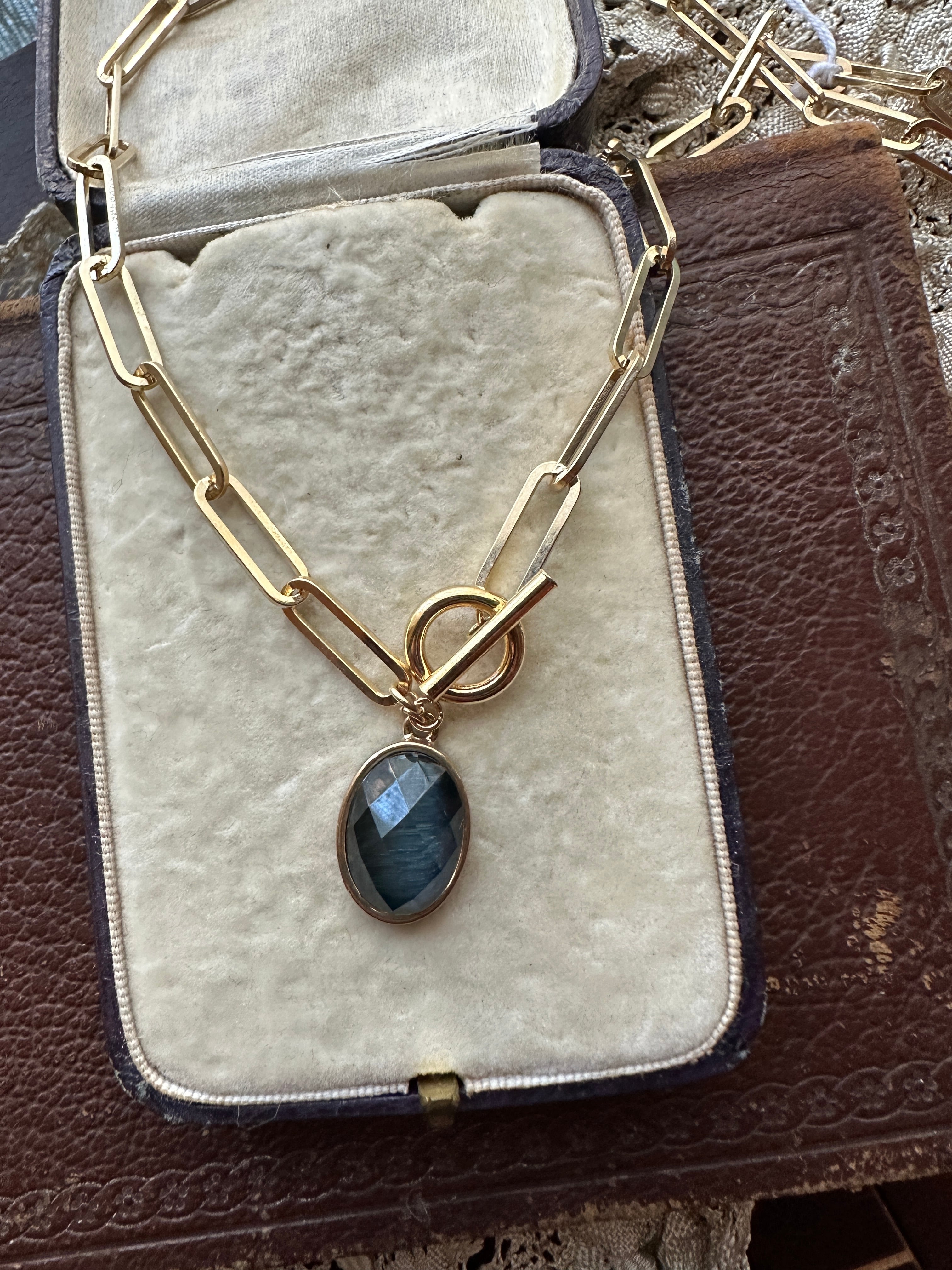ブルーラブラドライト デザインチェーン ネックレス