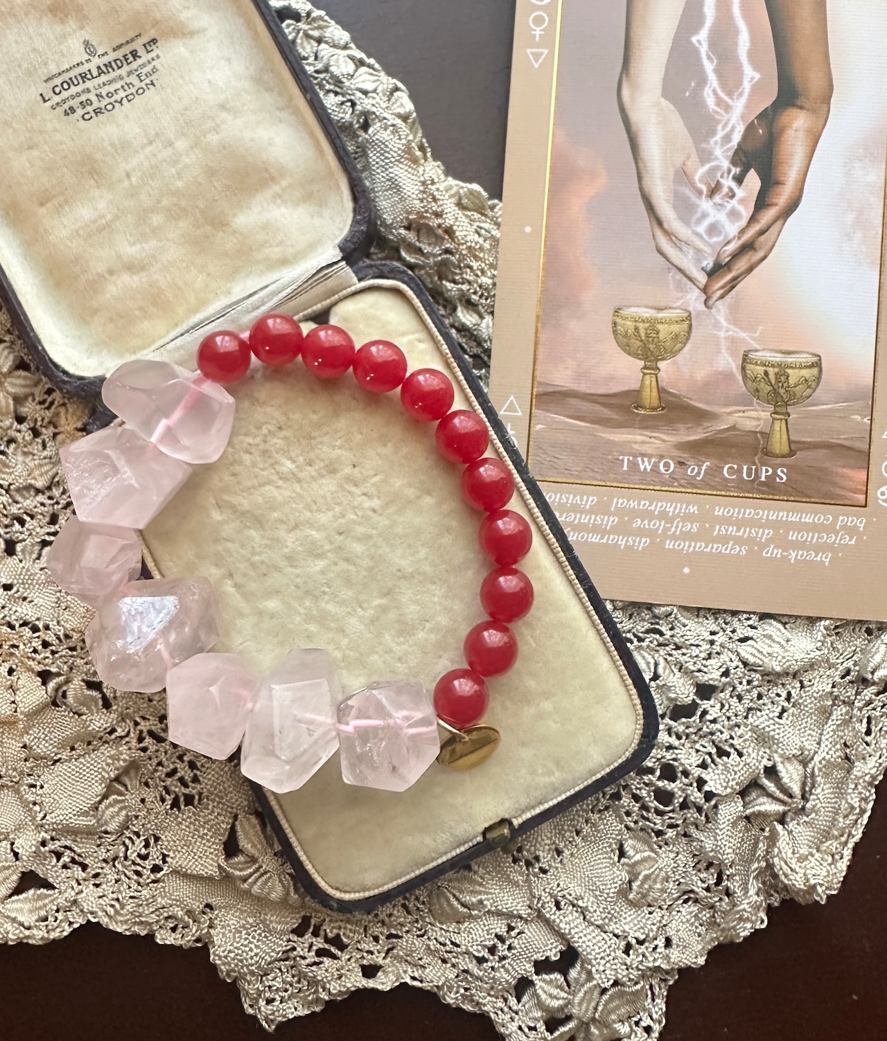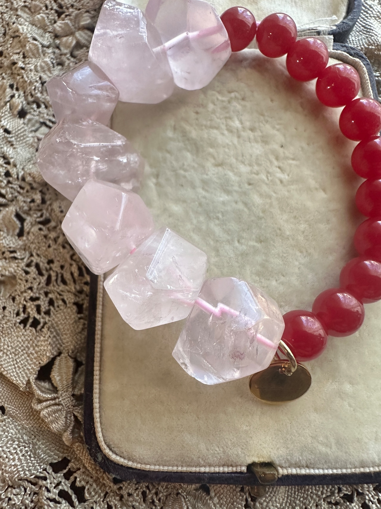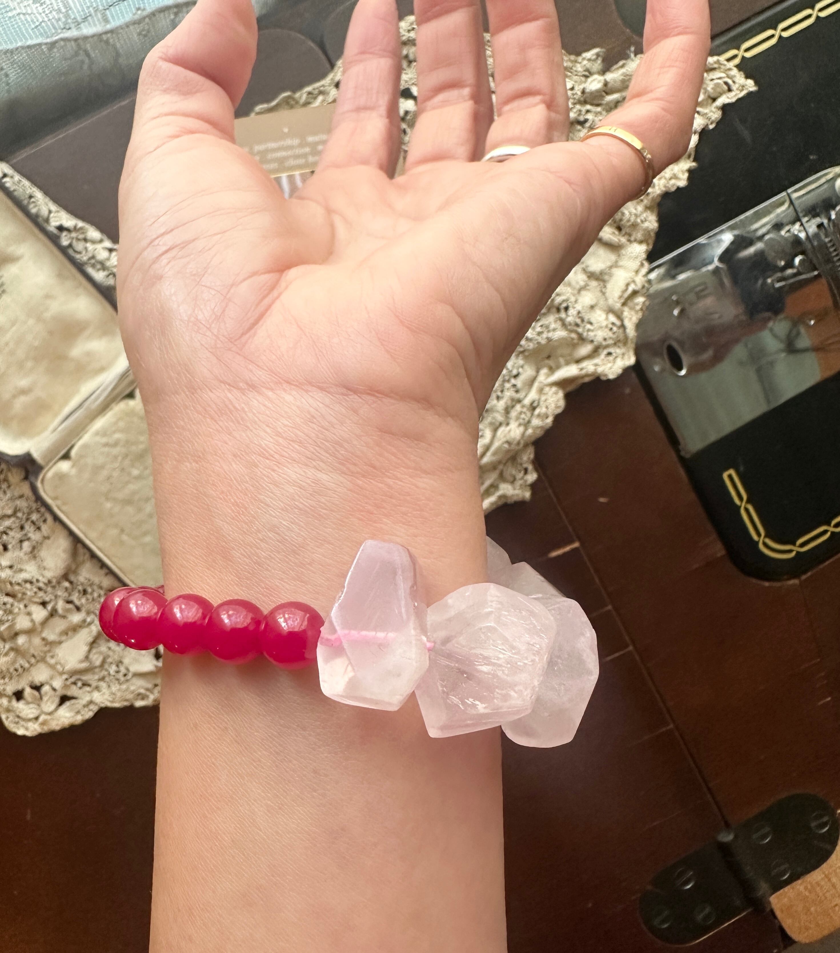 ローズクオーツ × ルビー ブレスレット