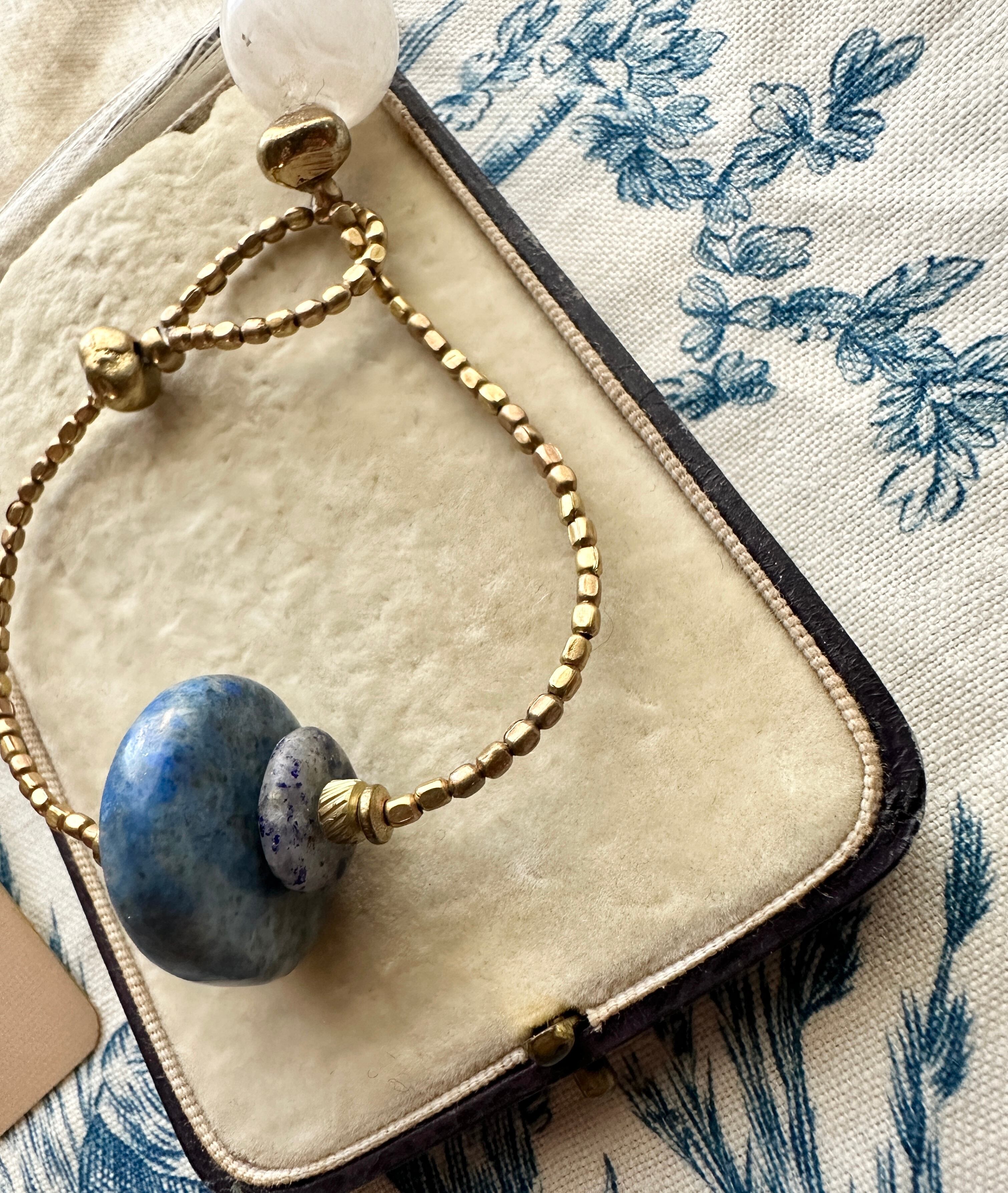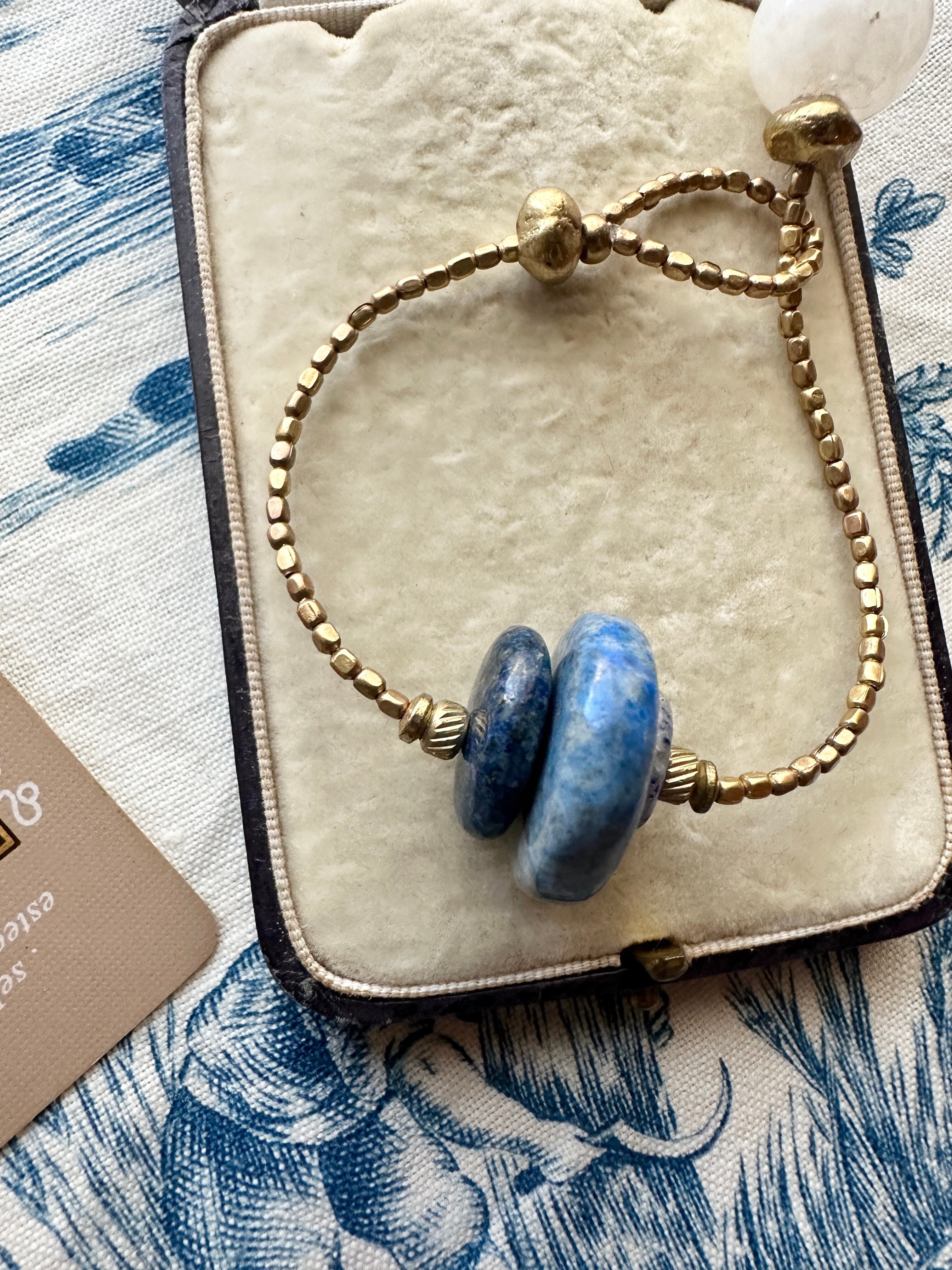 ラピスラズリ × ゴーストクオーツ アフリカン真鍮ビーズ ブレスレット