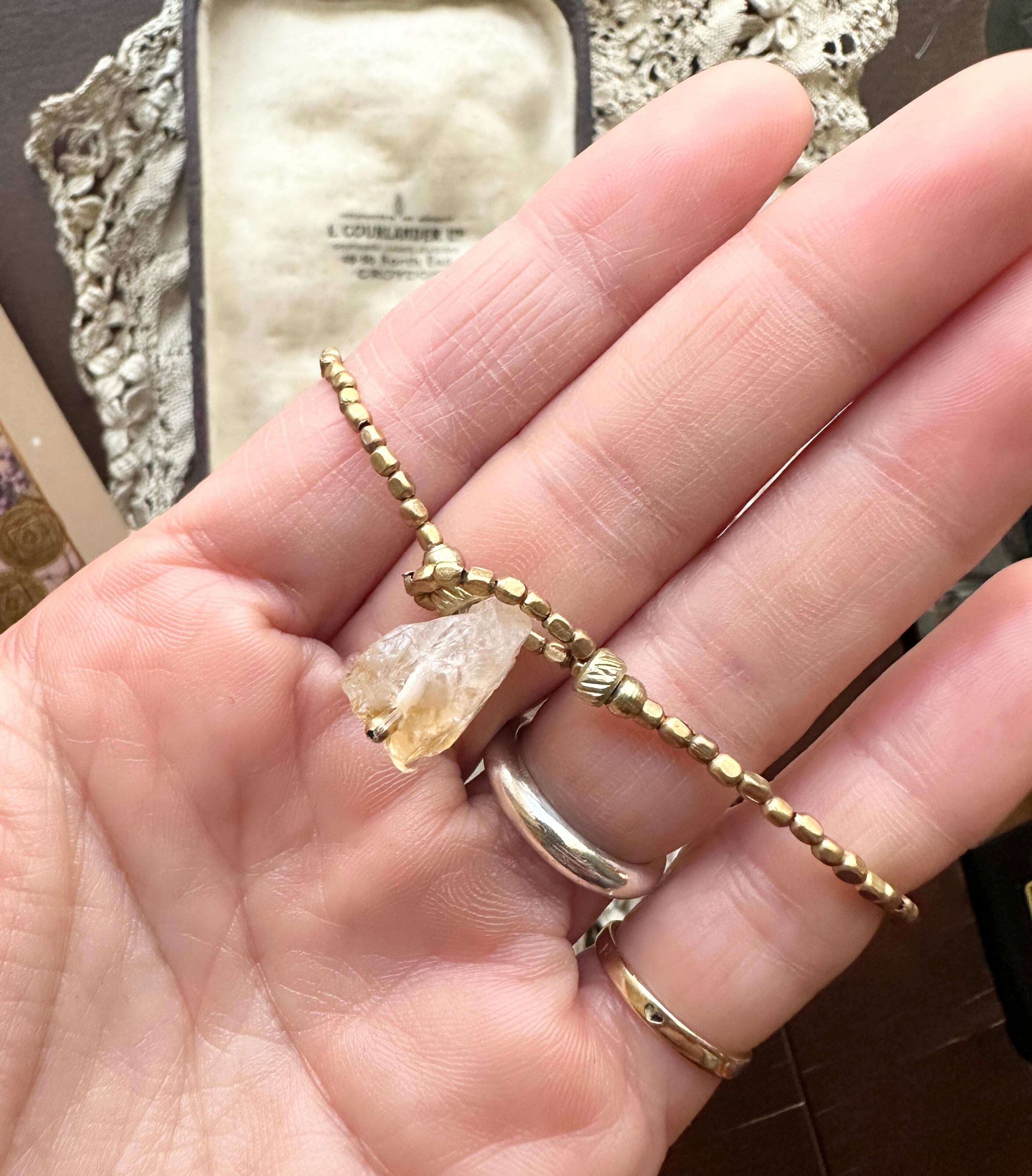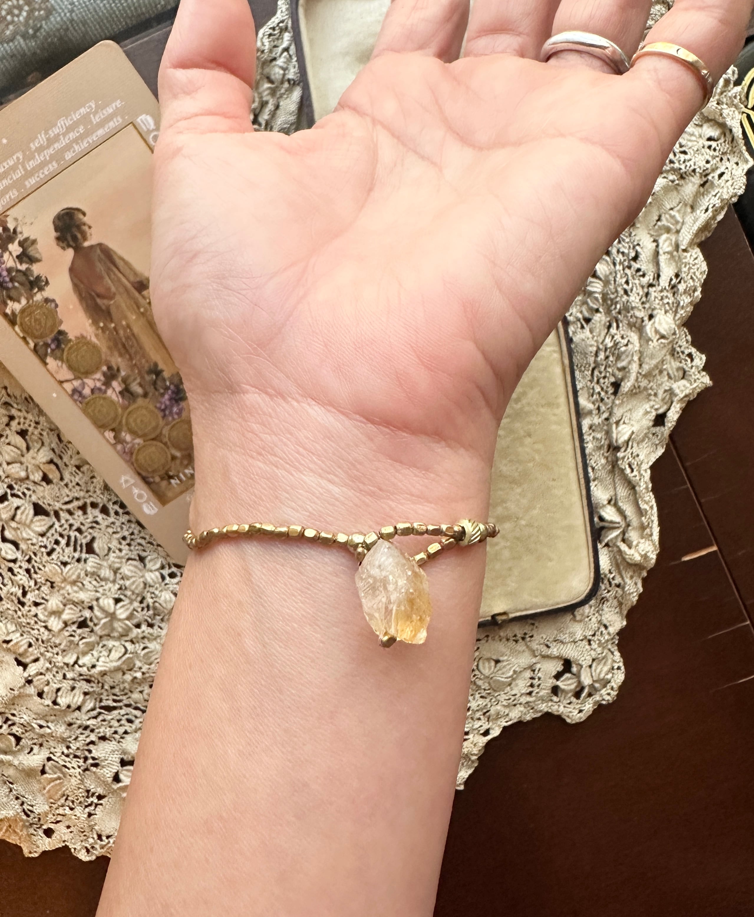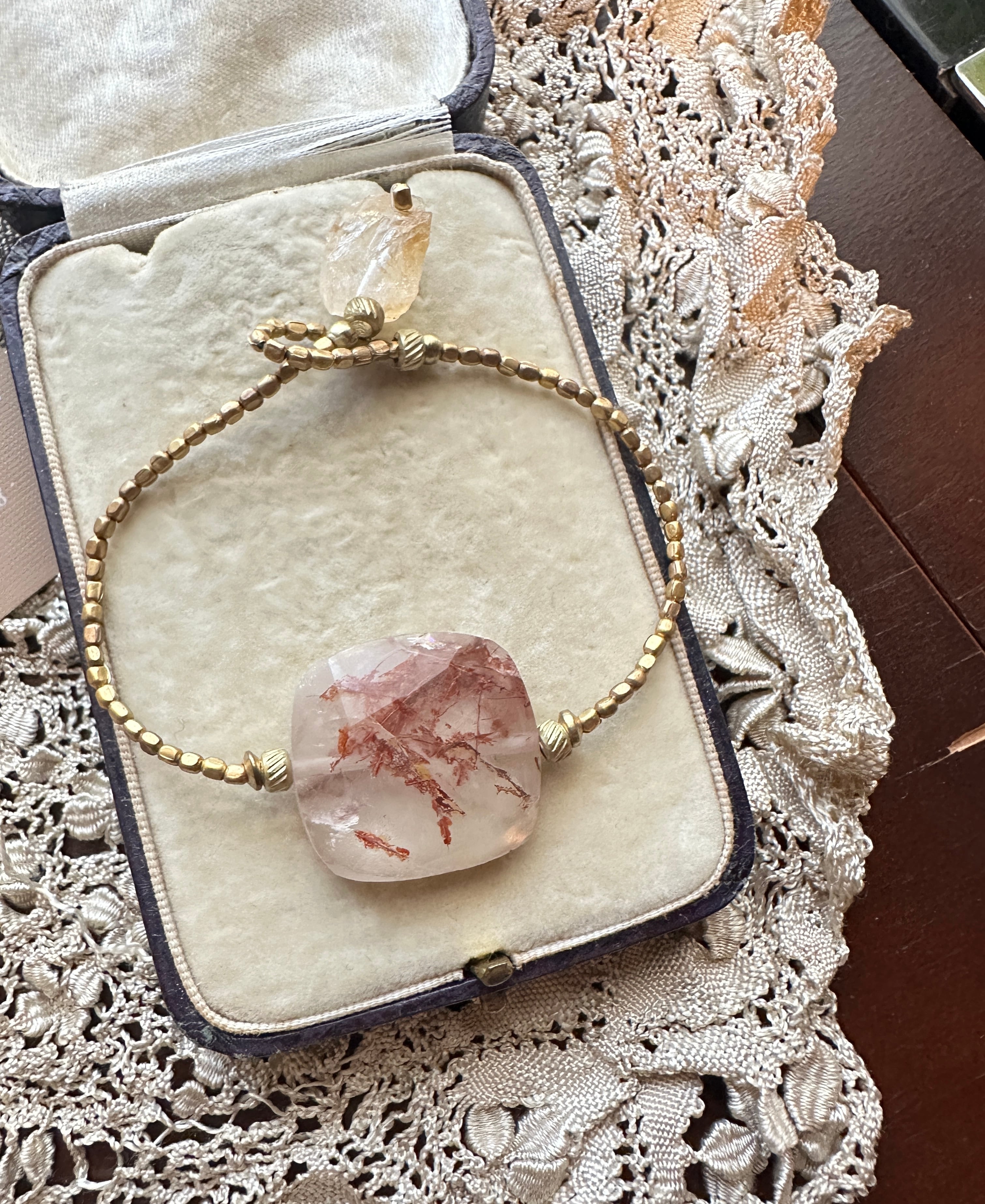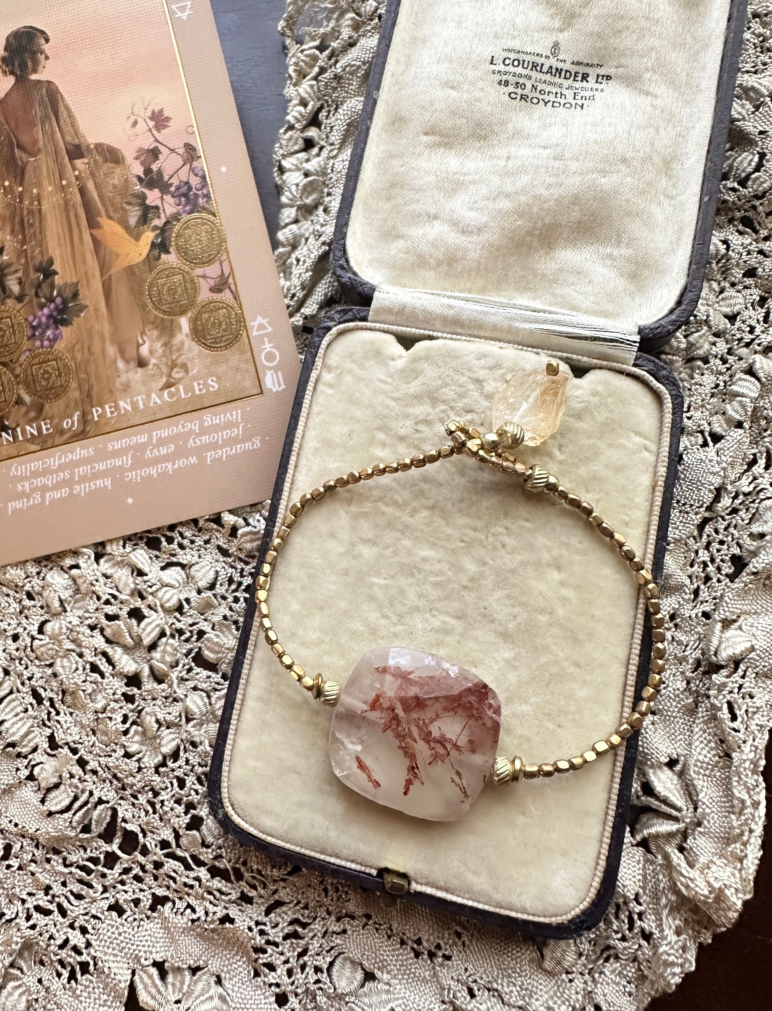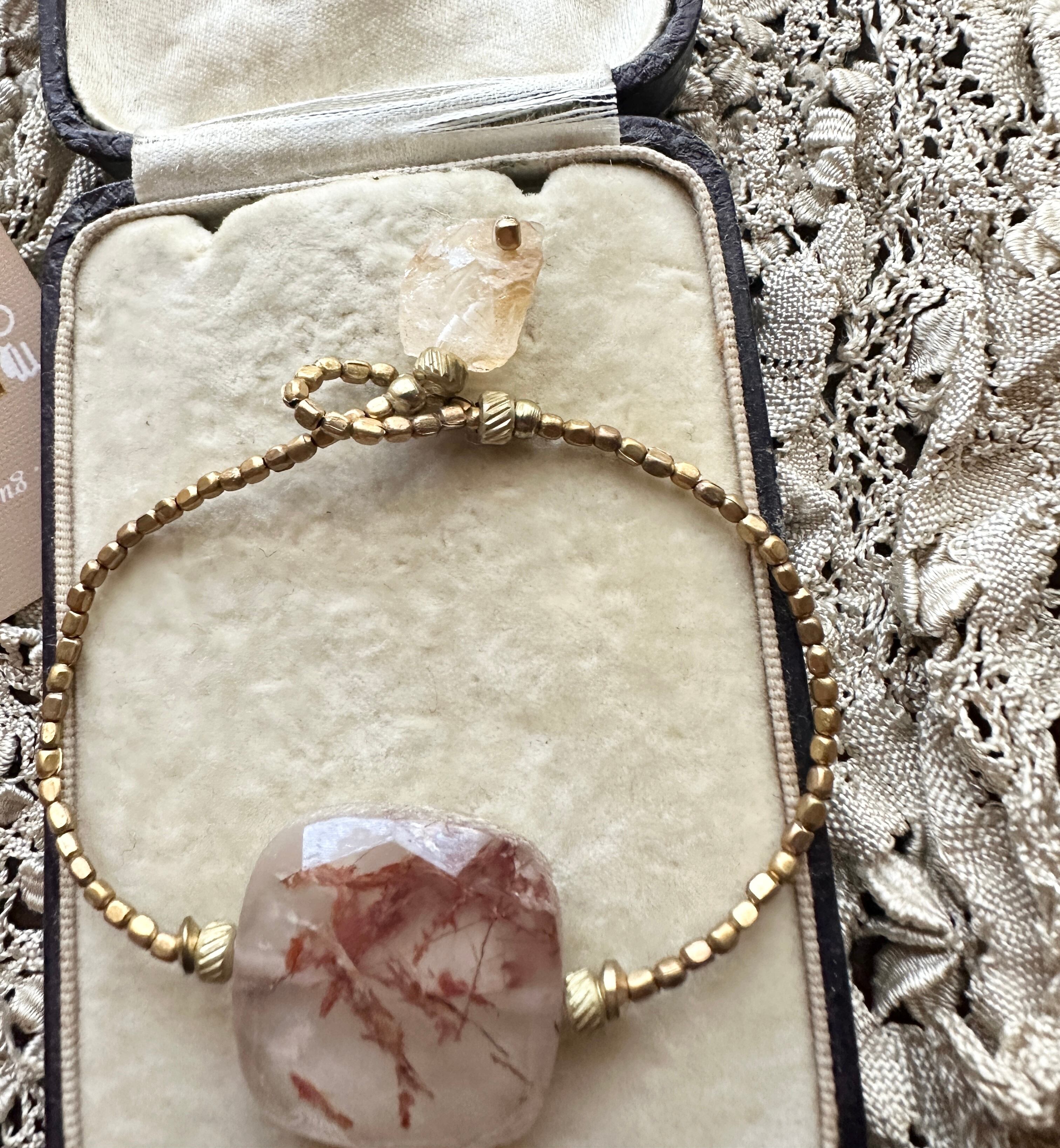 銅ルチルクオーツ × シトリン アフリカン真鍮ビーズ ブレスレット