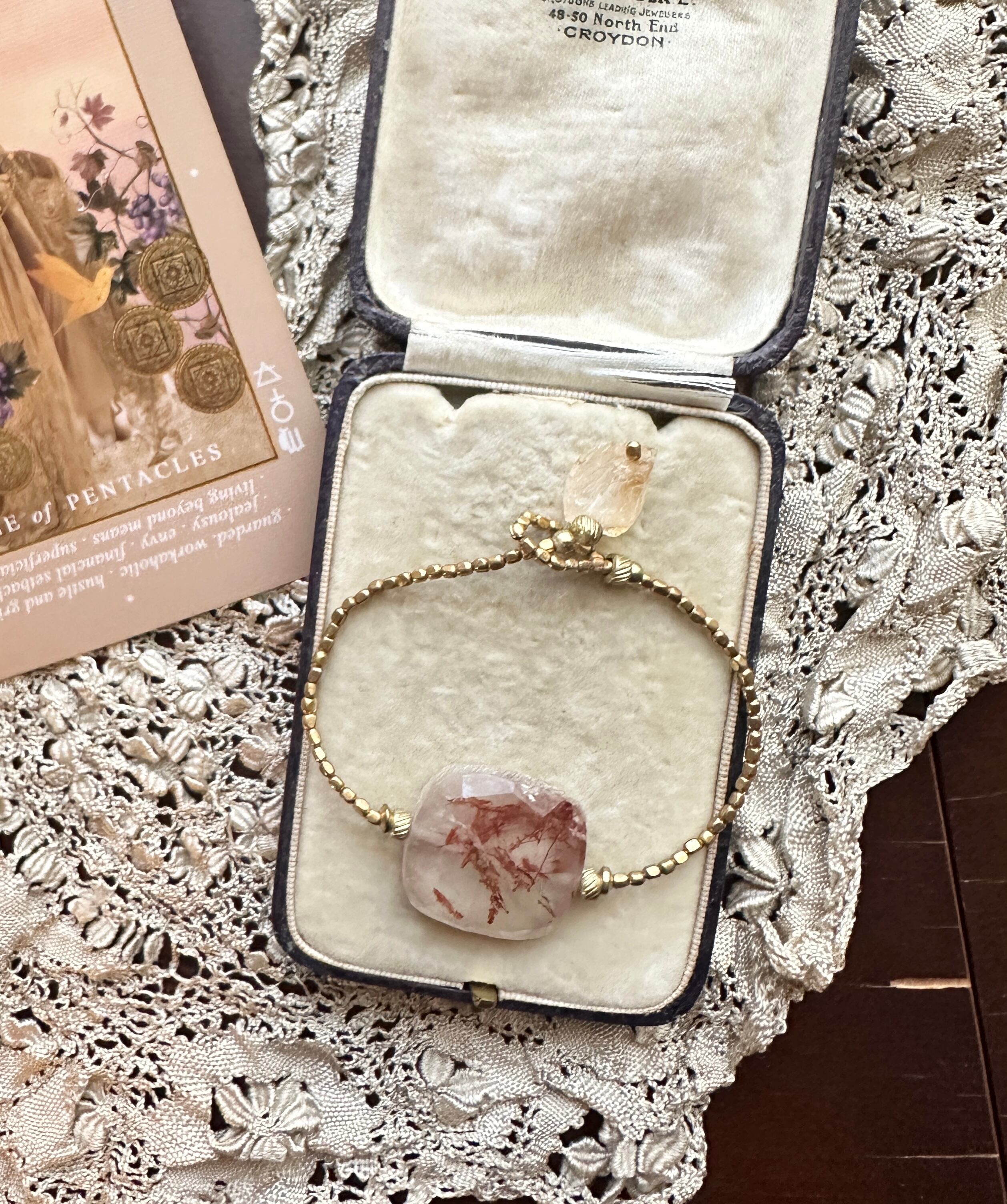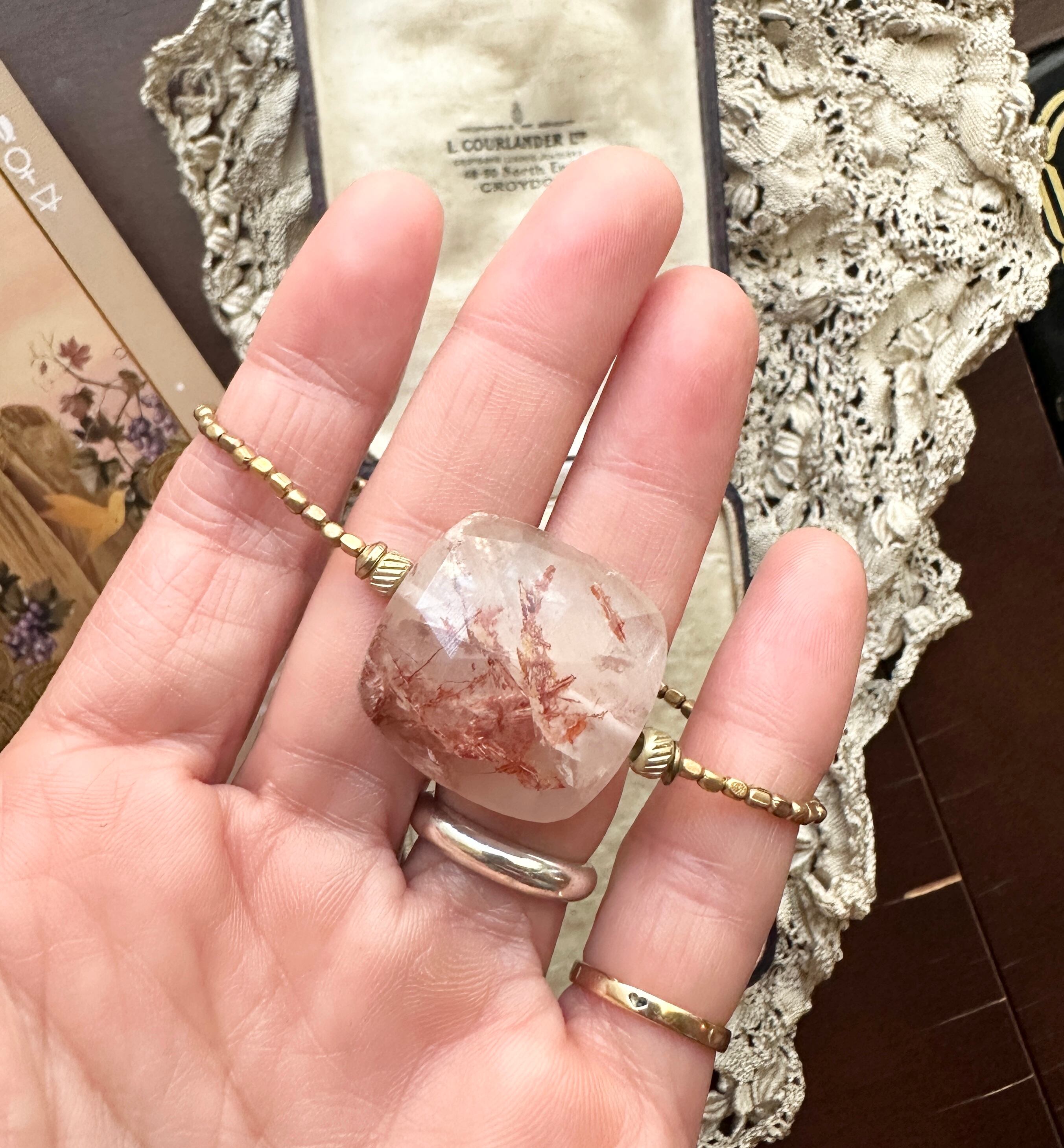 繊細な銅色の針が美しい銅ルチルクオーツを主役に、
