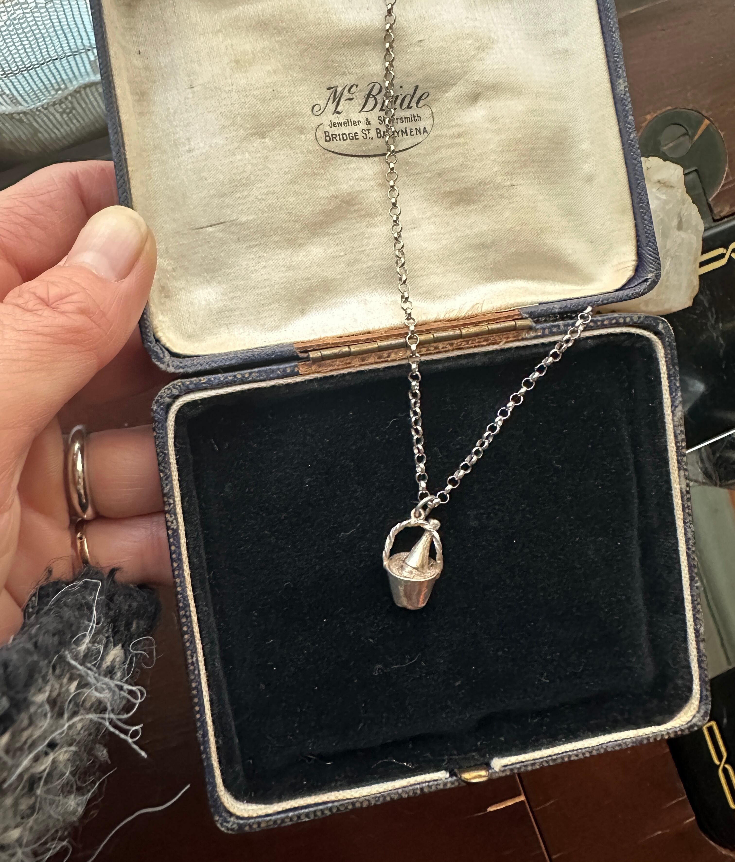 イギリス ヴィンテージ シルバー925 シャンパンバケツ ペンダントネックレス