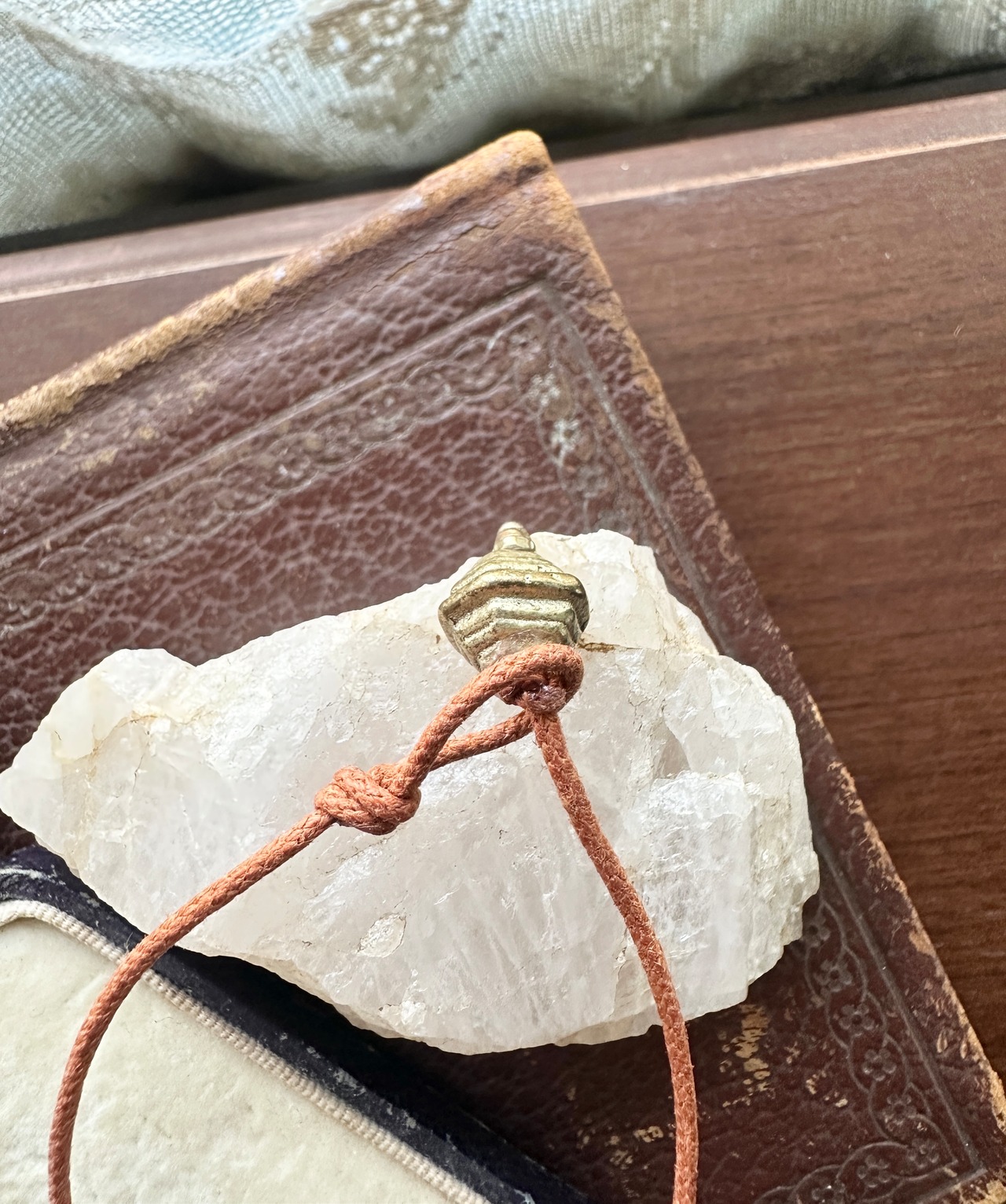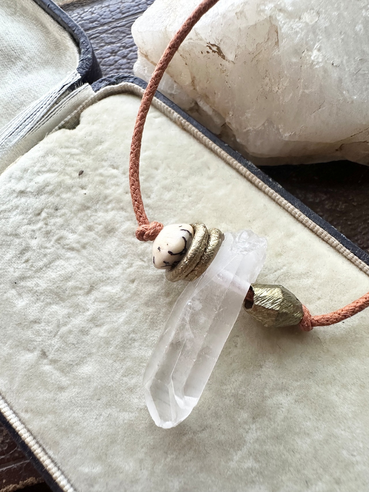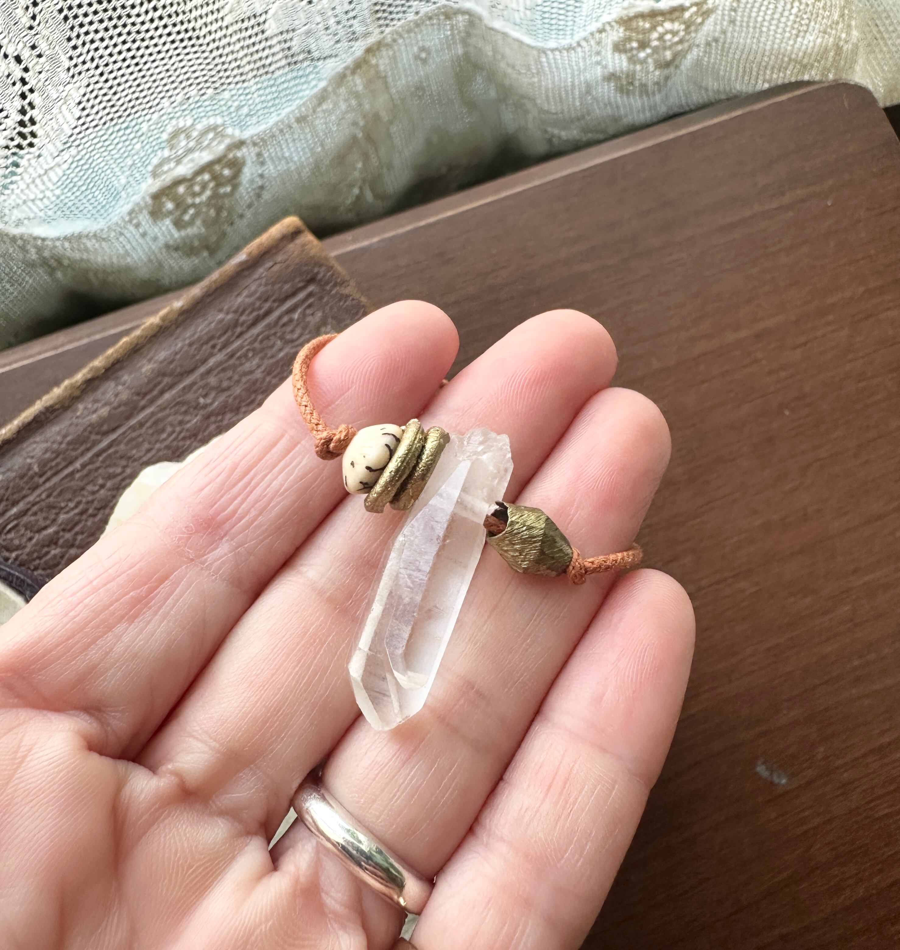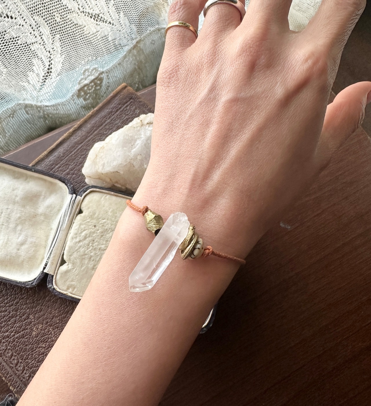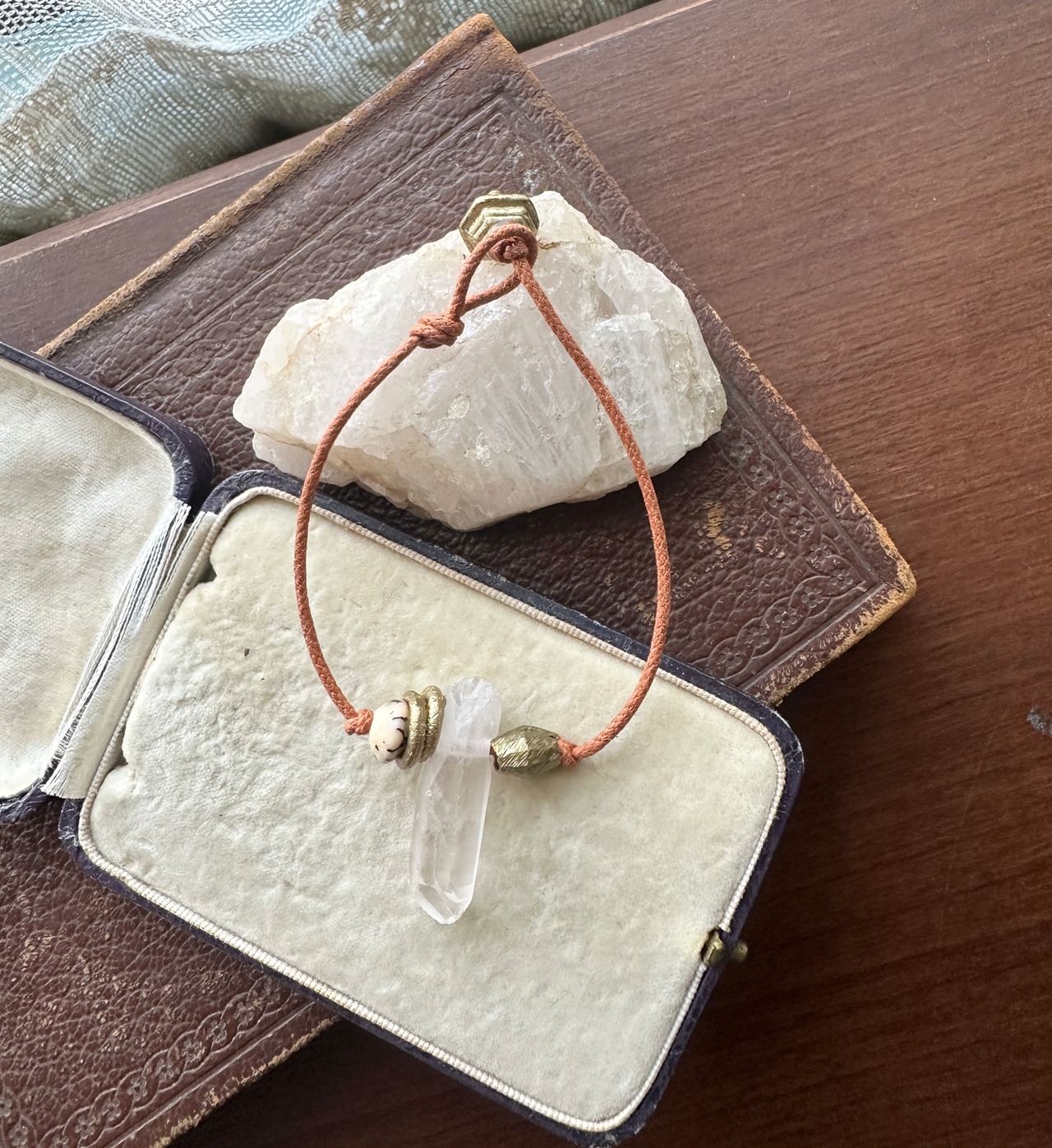 クリスタルポイント × アフリカン真鍮ビーズ コットンコード ブレスレット
