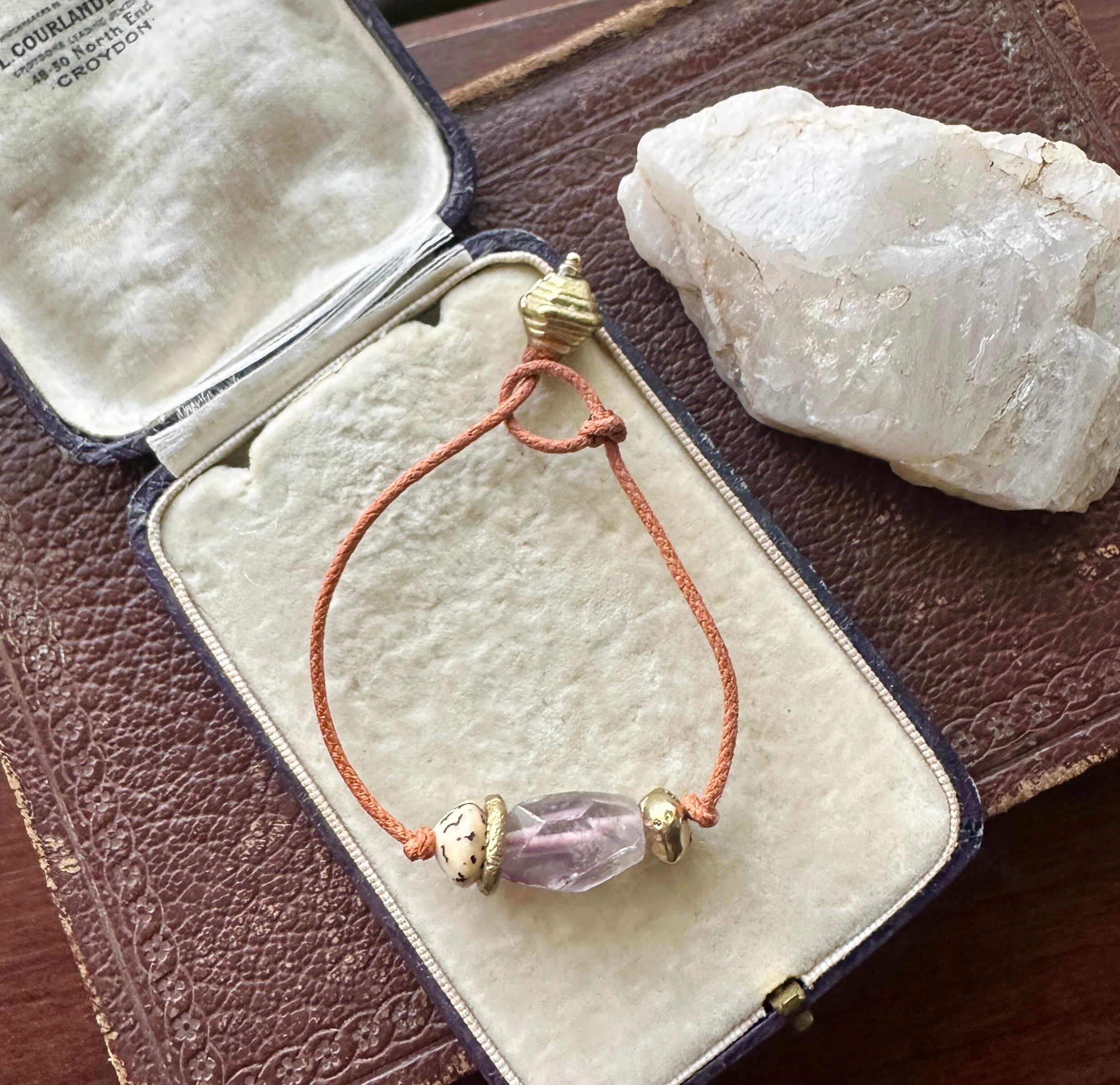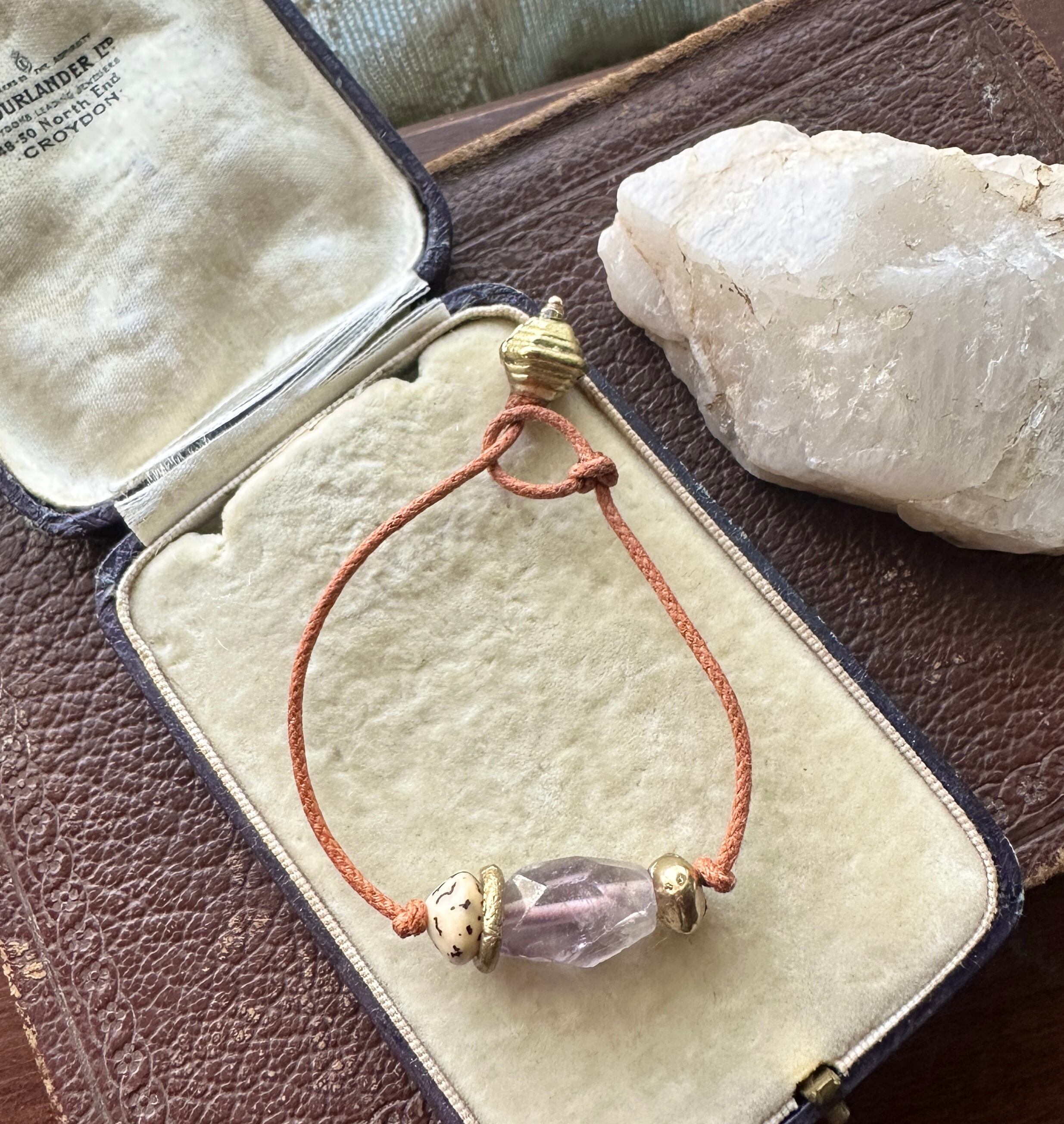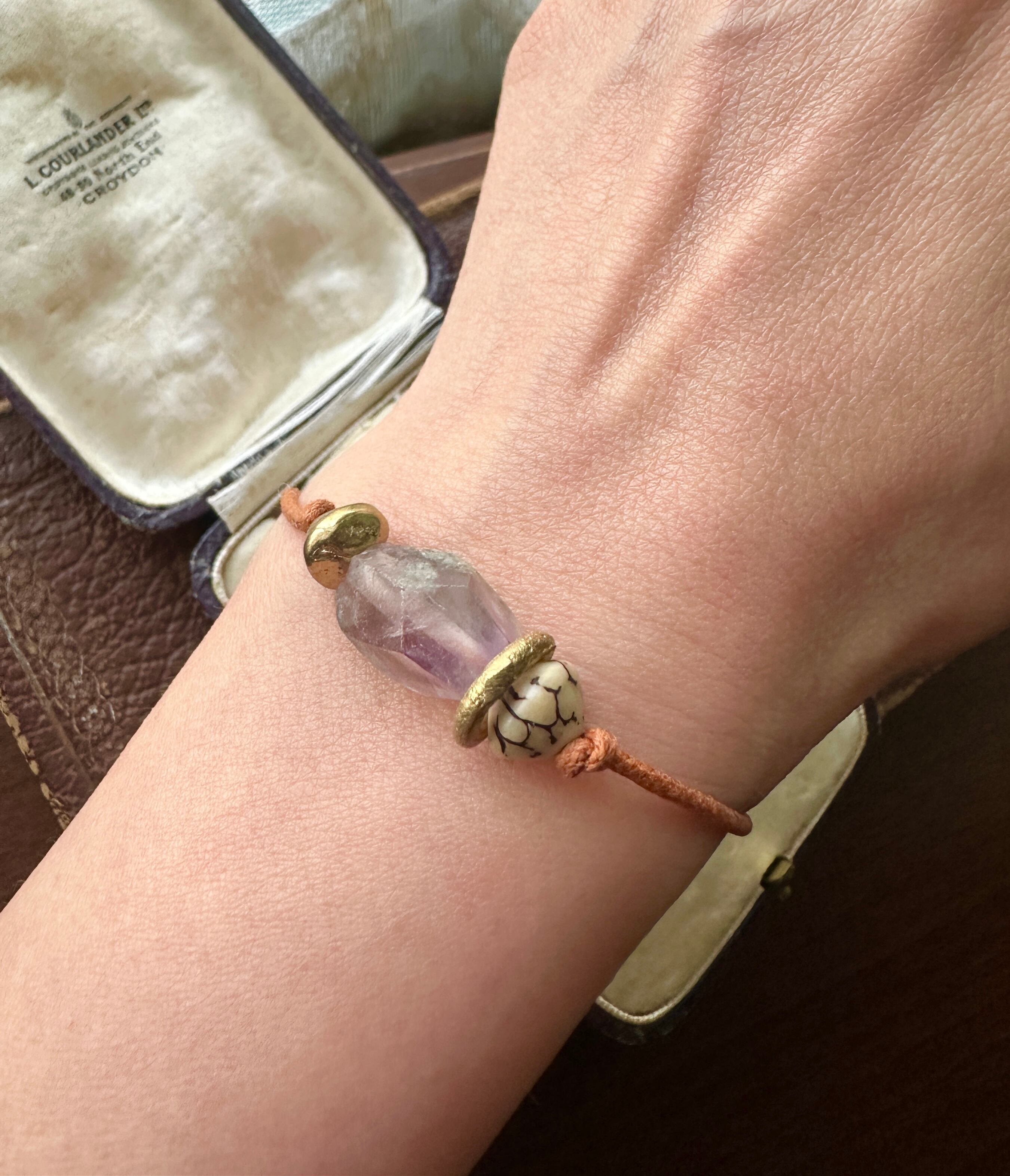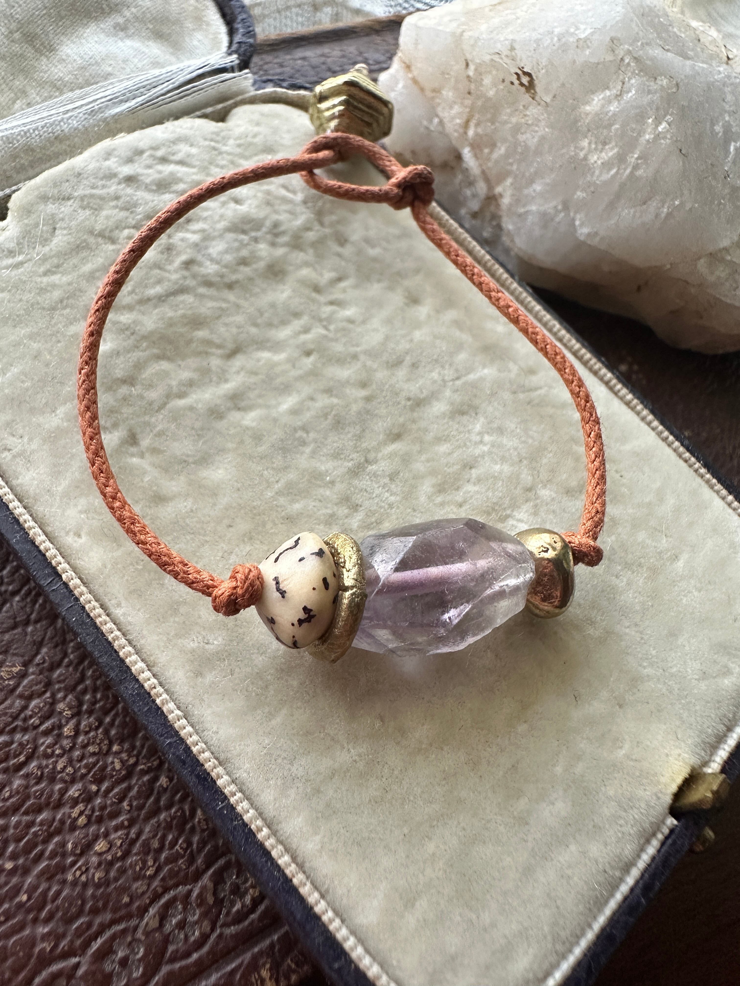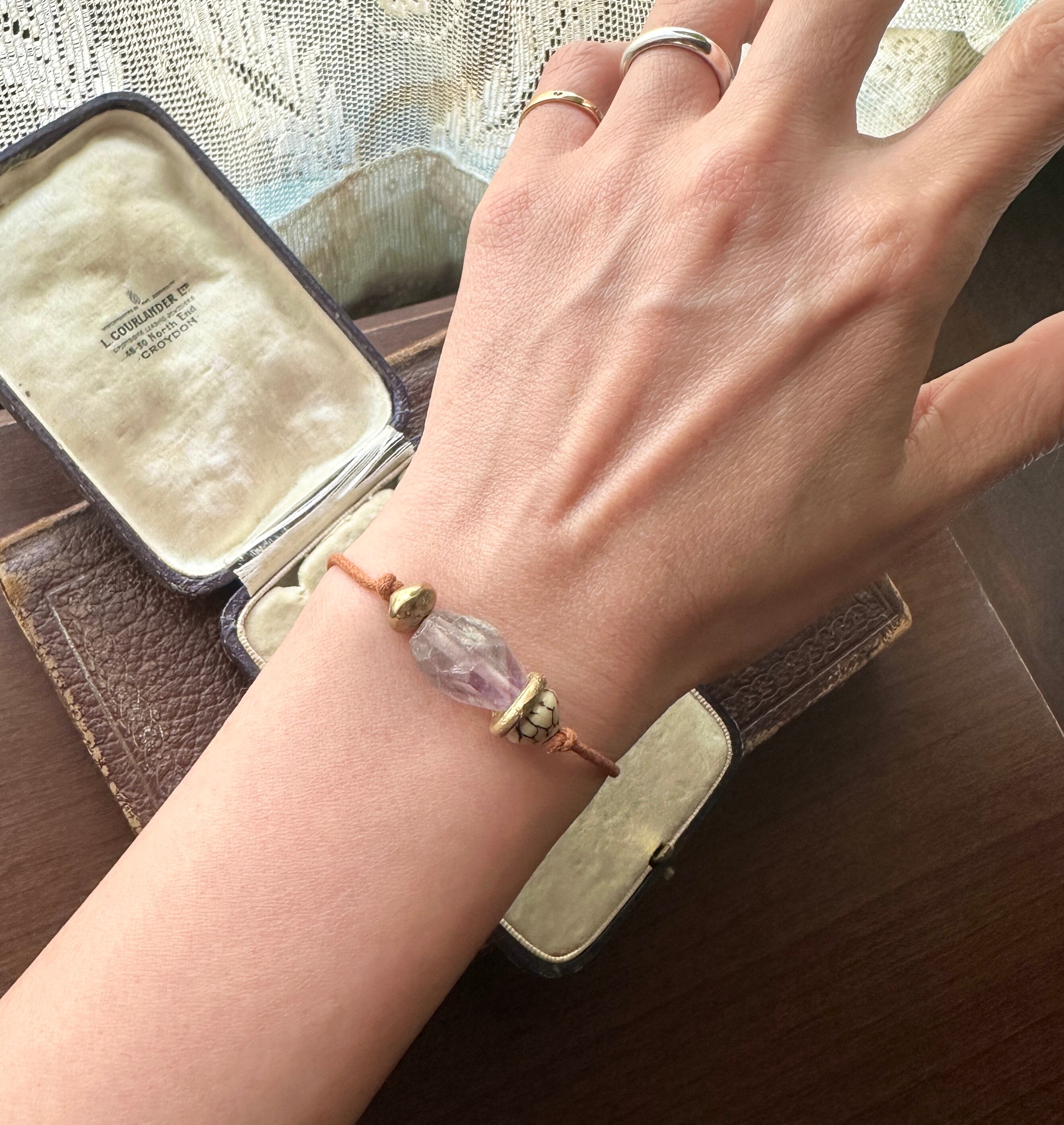 アメジスト × アフリカン真鍮ビーズ コットンコード ブレスレット