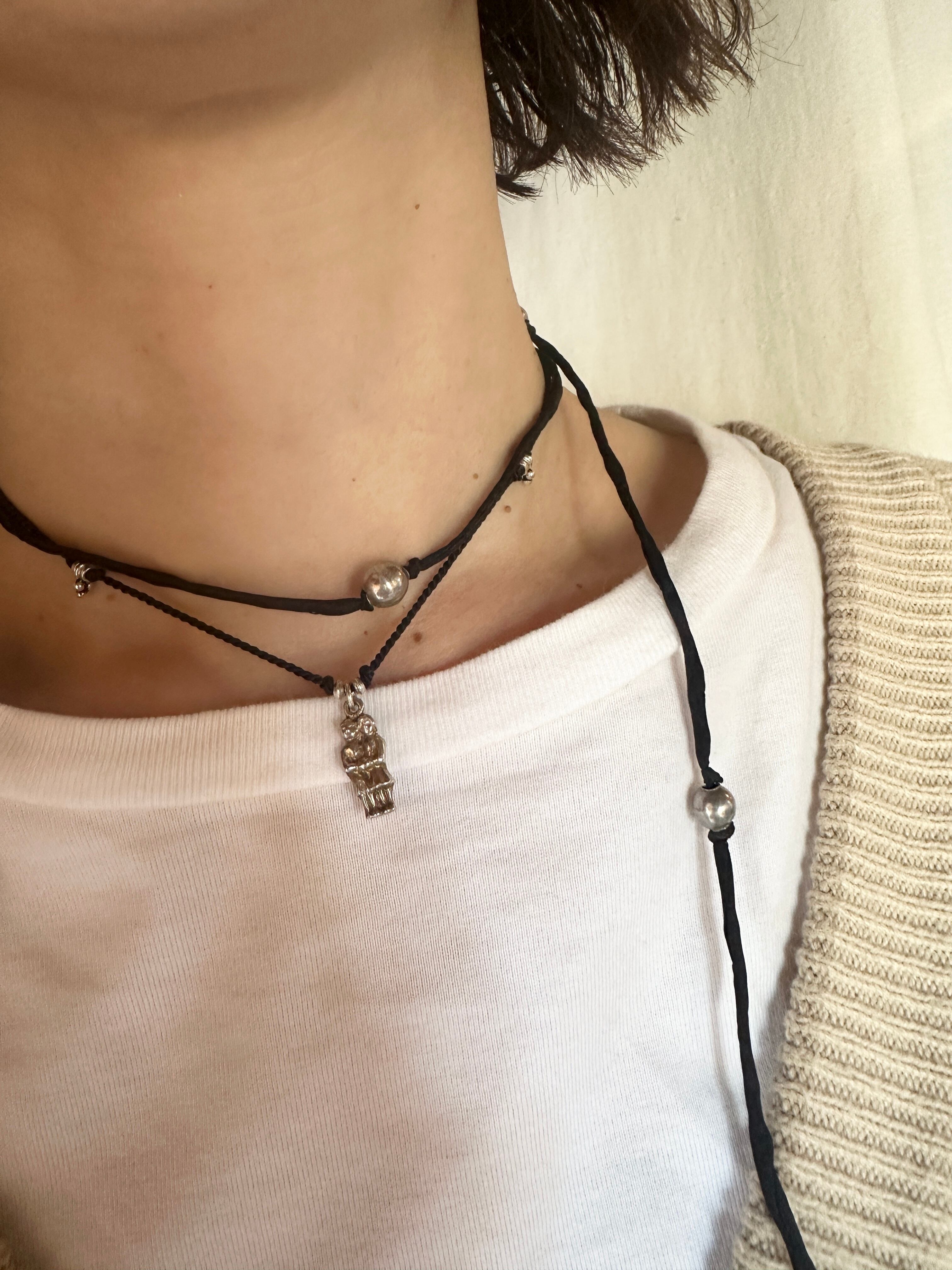 ヴィンテージナバホビーズ ハンドメイドシルク紐ネックレス ― 1点もの ―