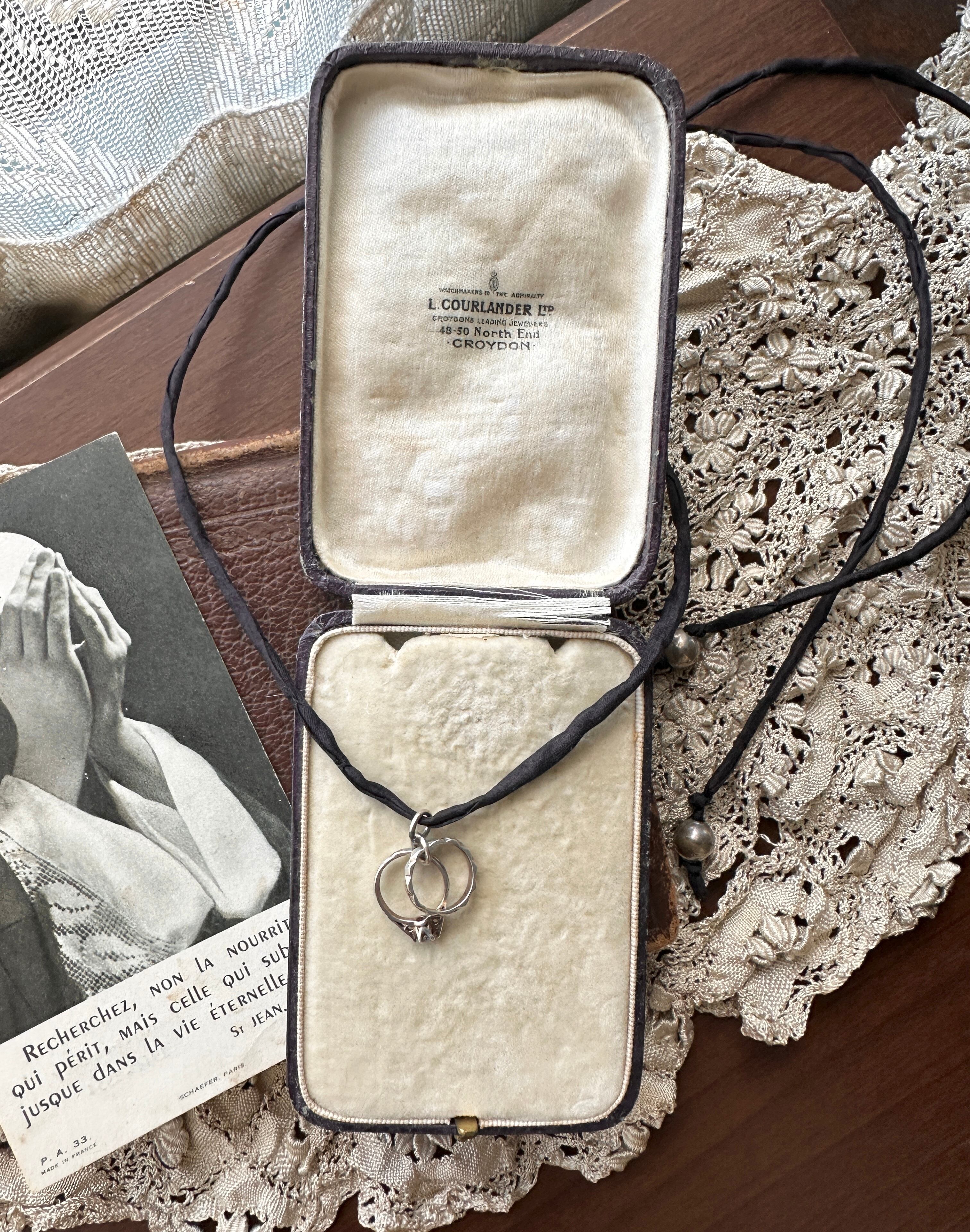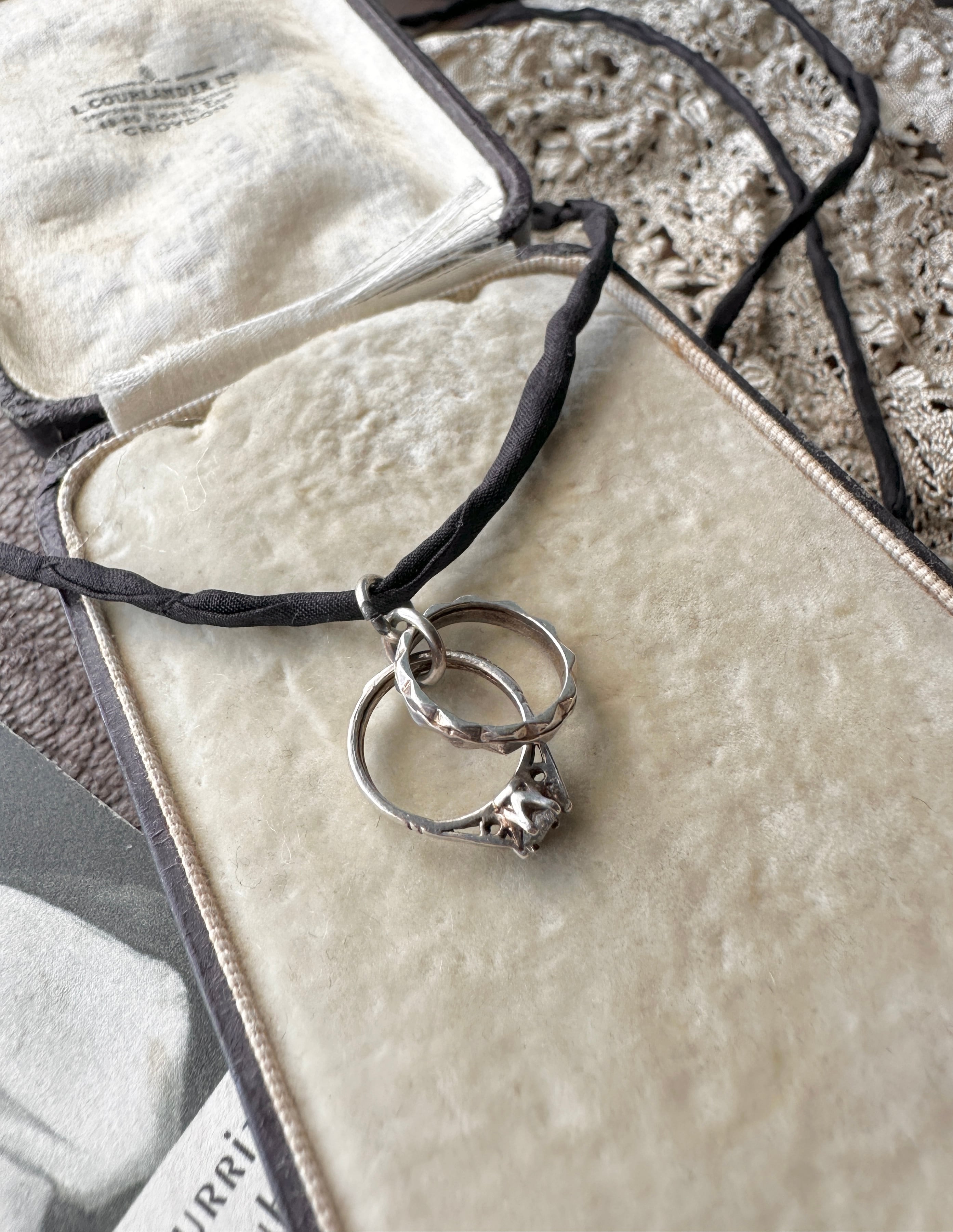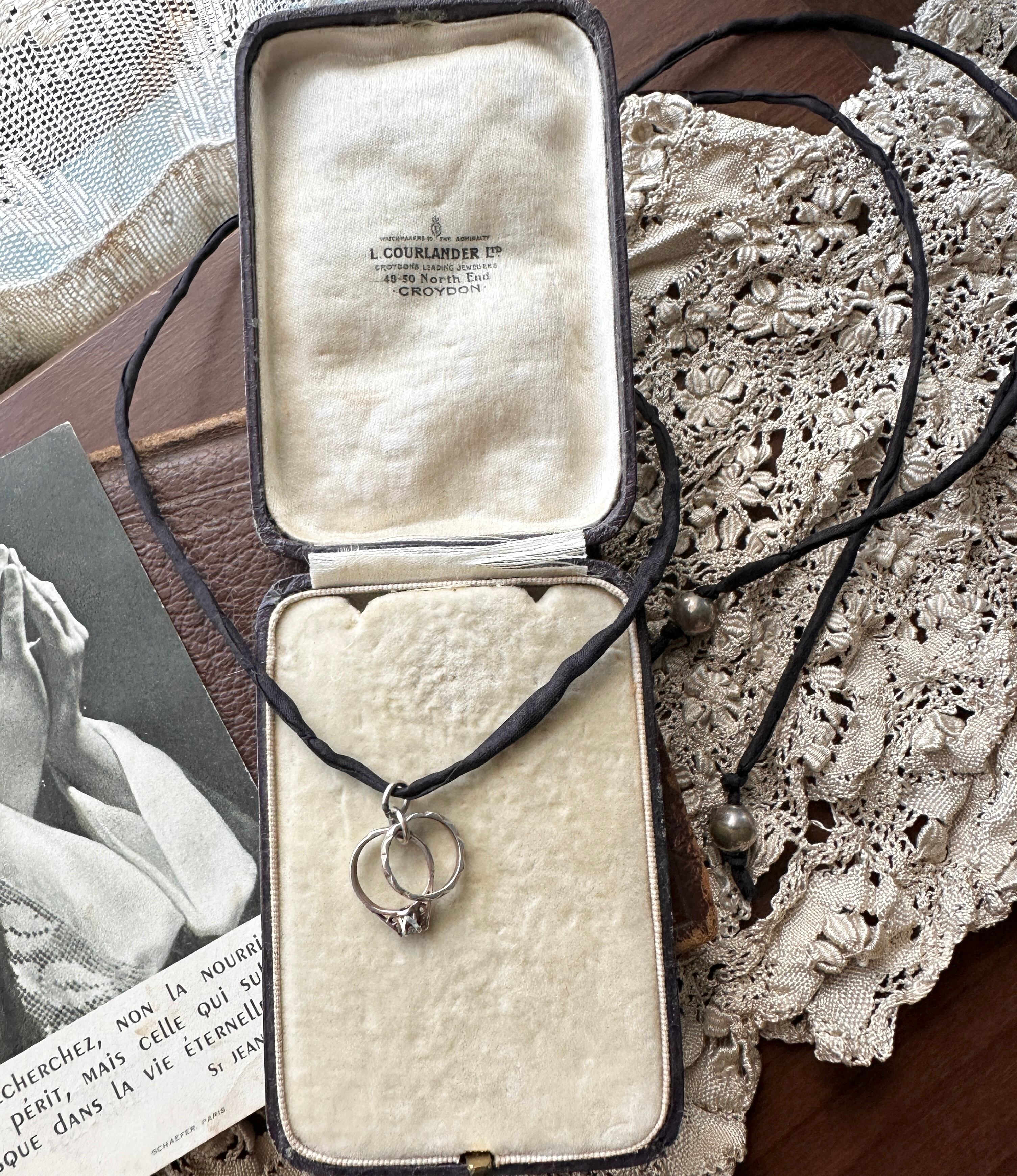 アンティーク カップルリングデザイン Silver925チャーム ハンドメイドシルク紐ネックレス ― 1点もの ―