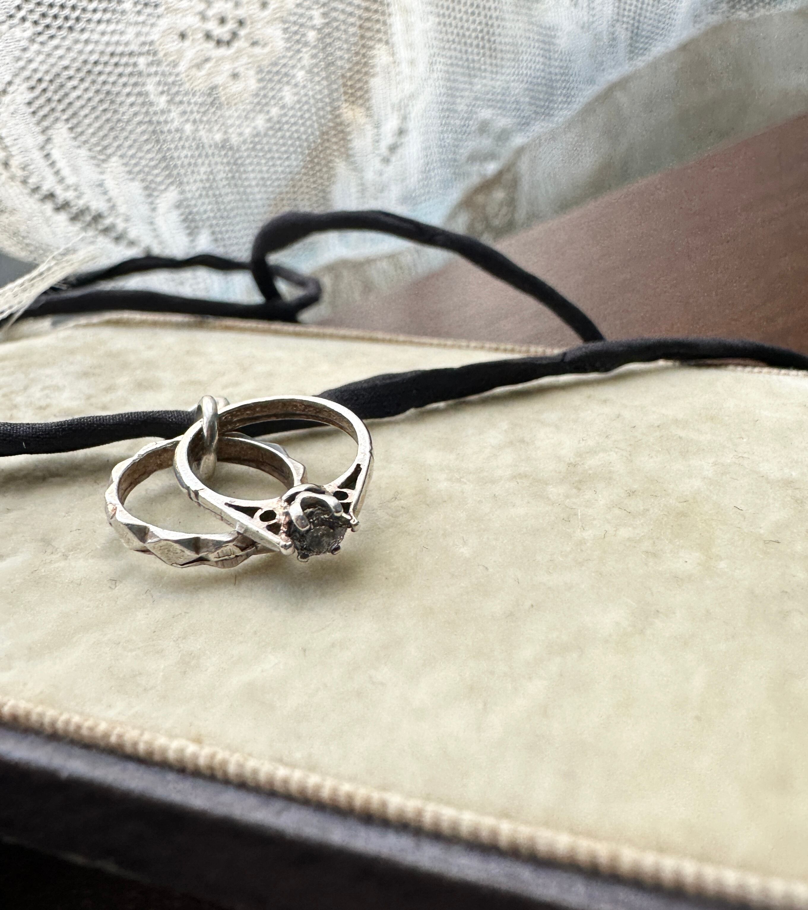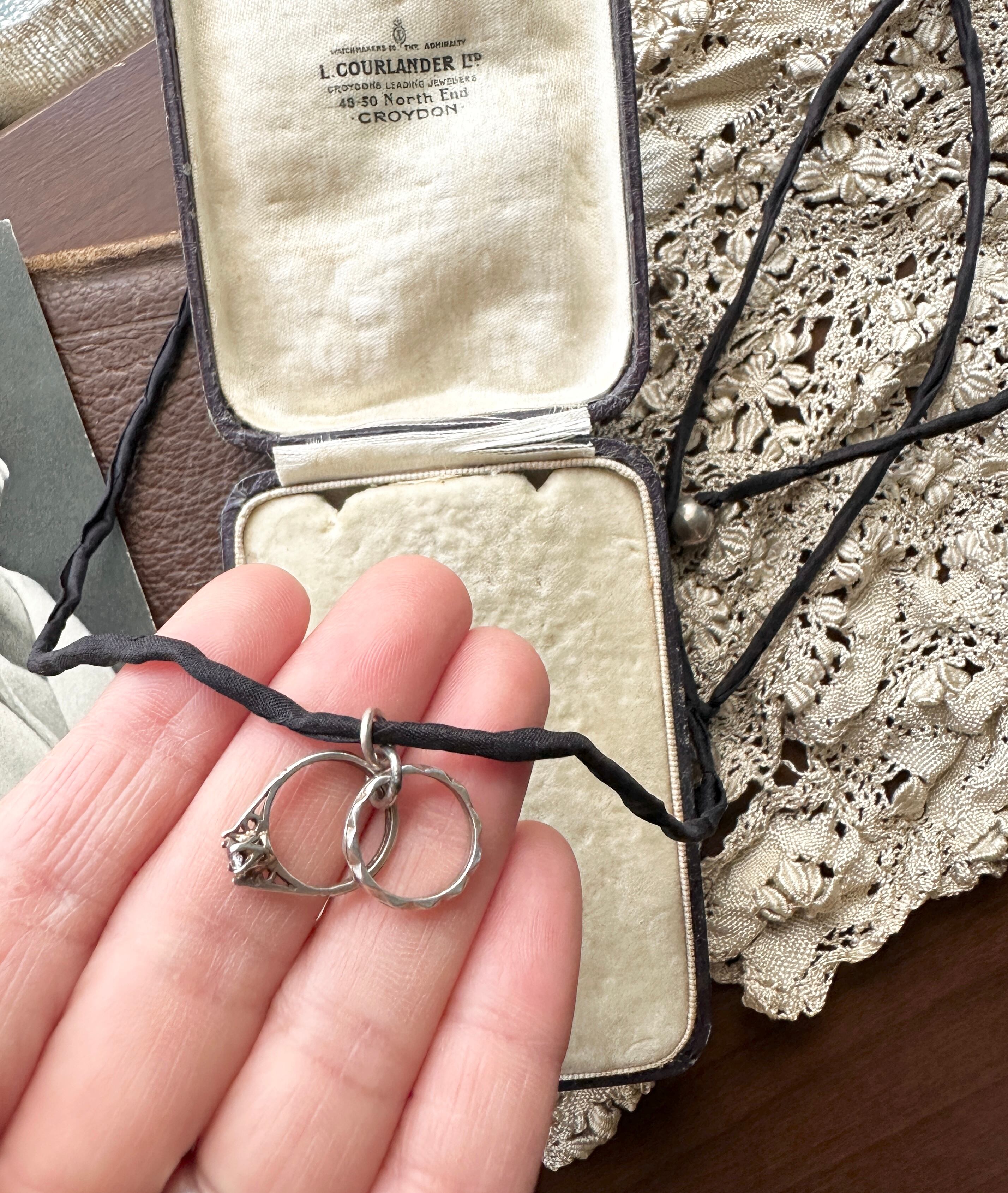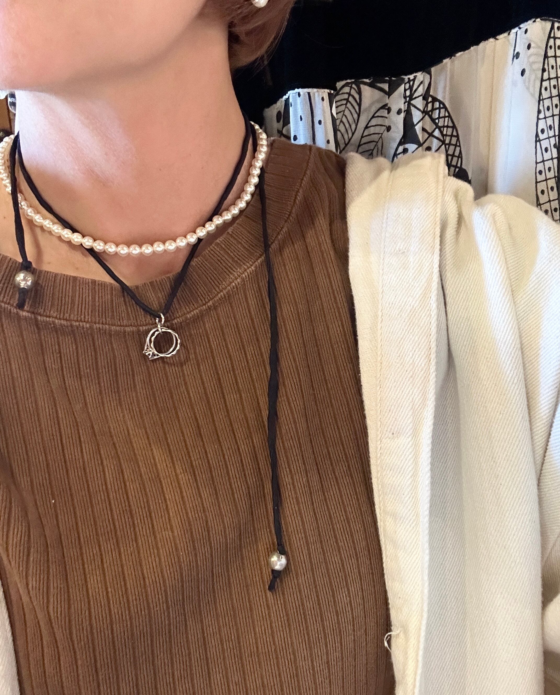 アンティーク カップルリングデザイン Silver925チャーム ハンドメイドシルク紐ネックレス ― 1点もの ―