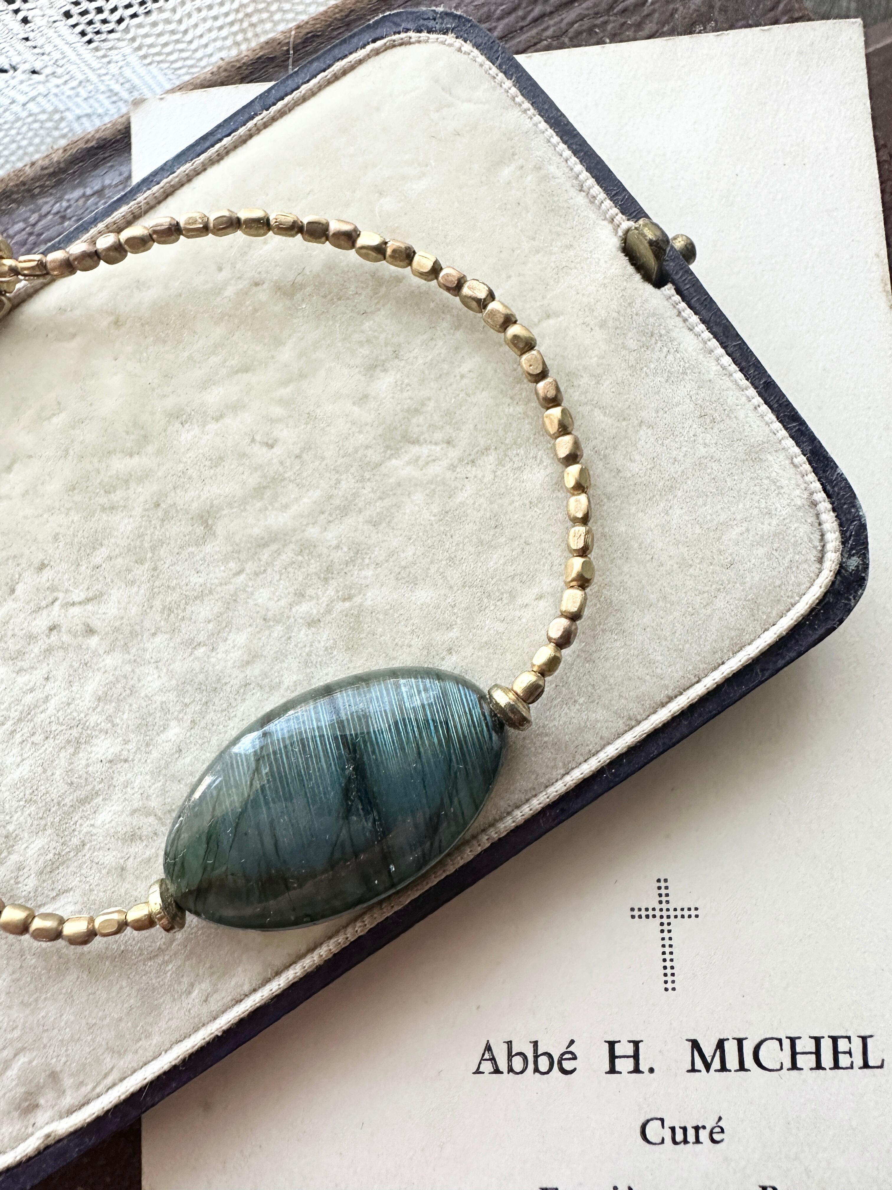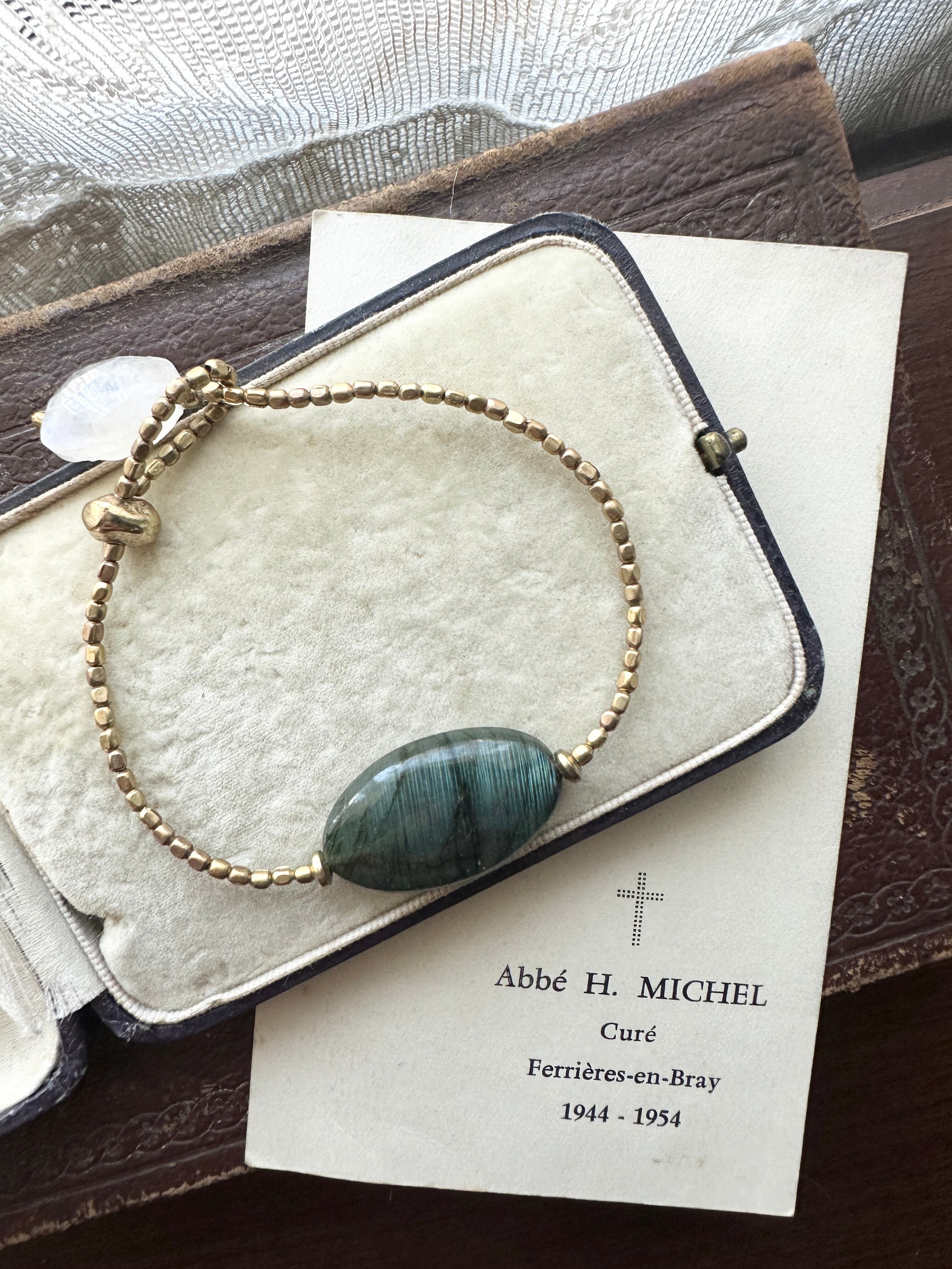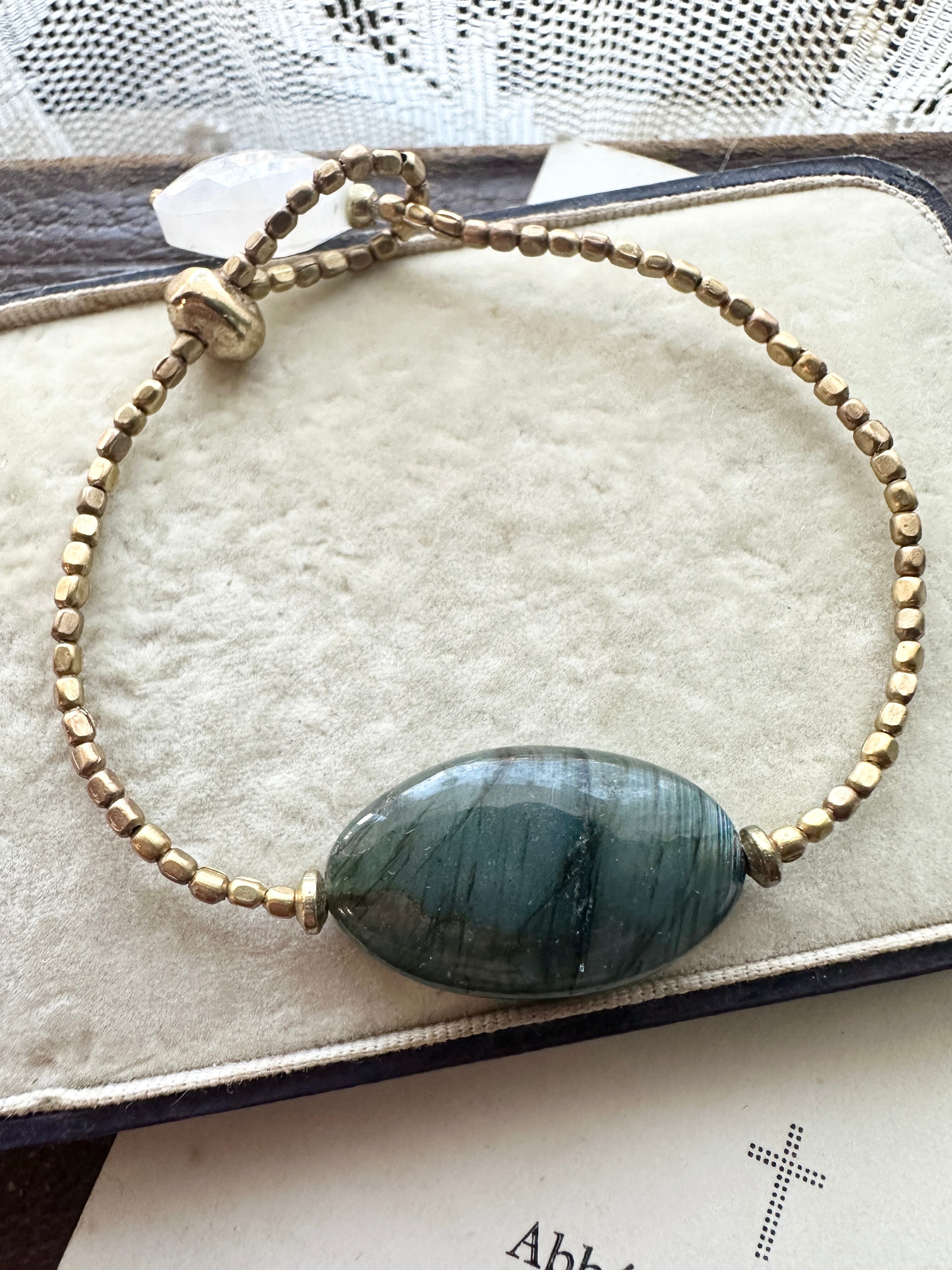 ラブラドライド × アフリカン真鍮ビーズ レインボームーンストーン ブレスレット