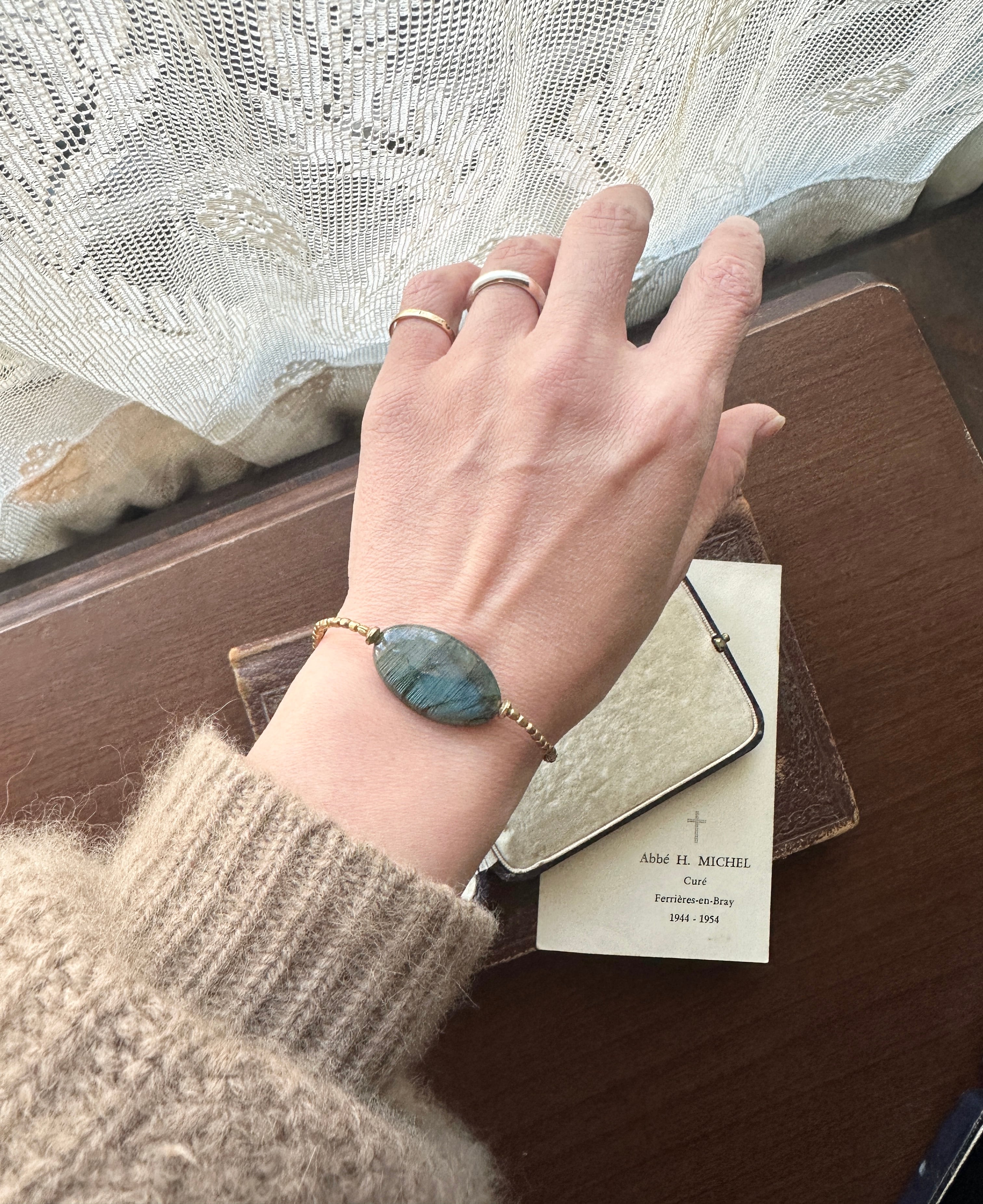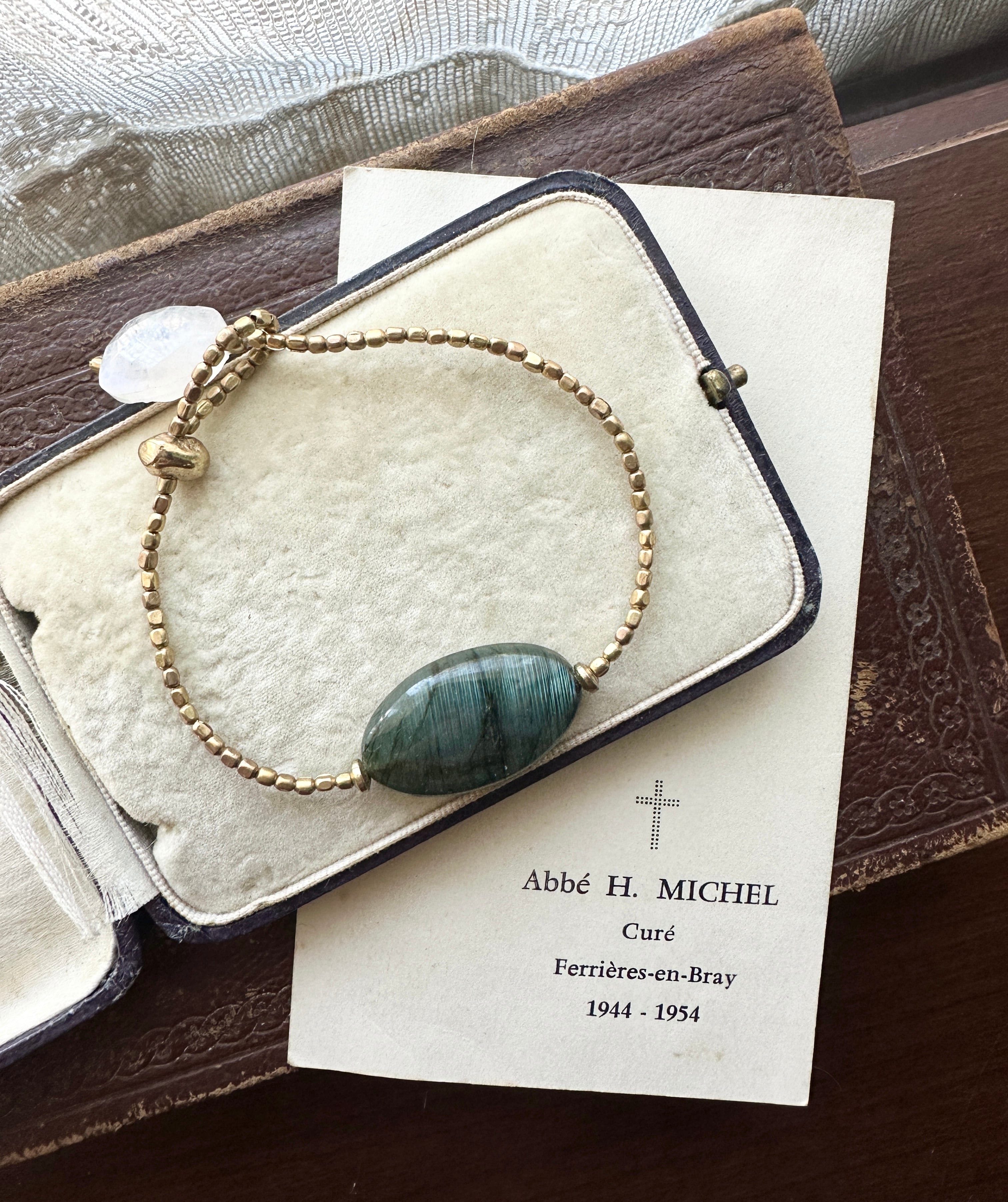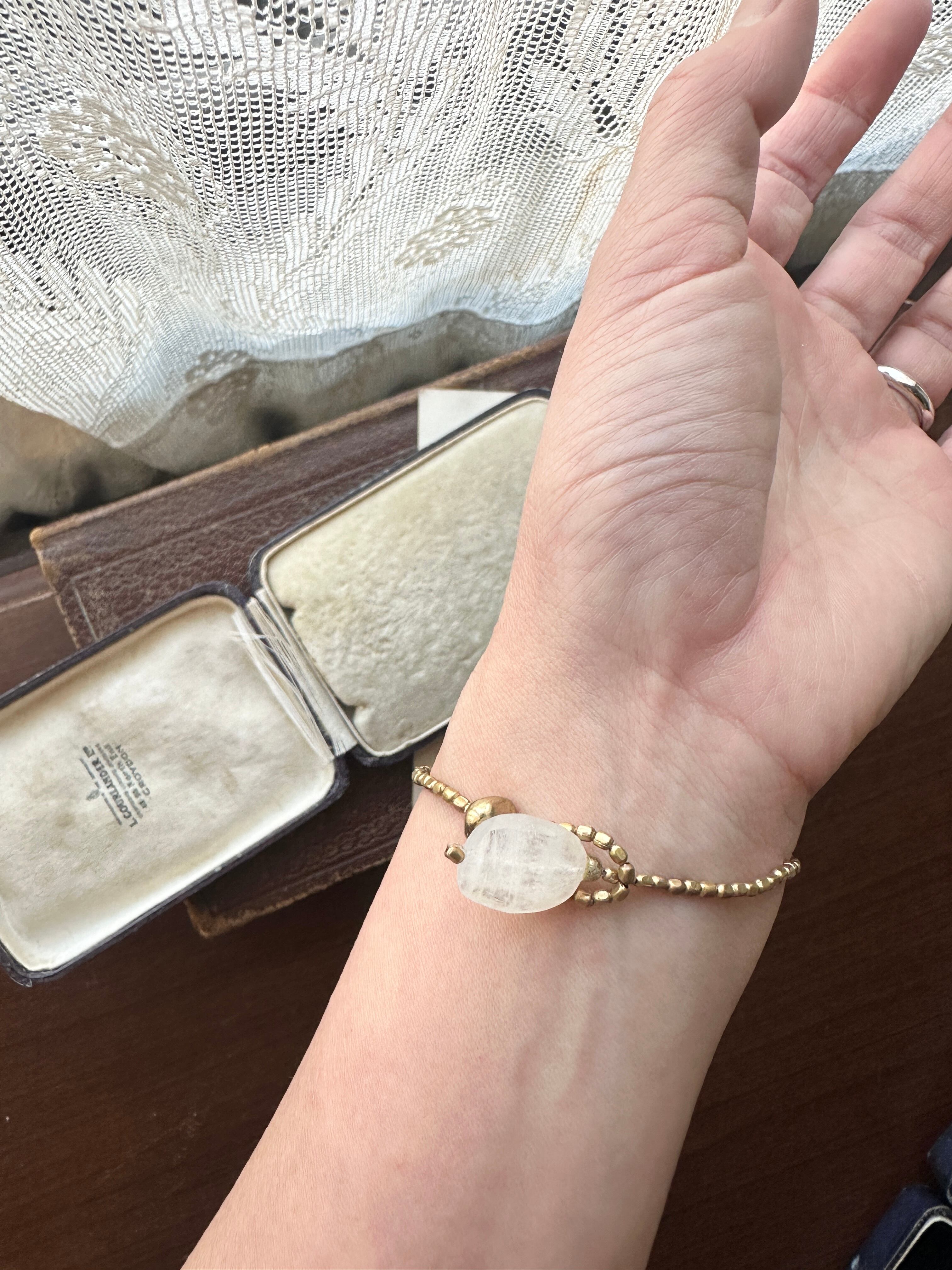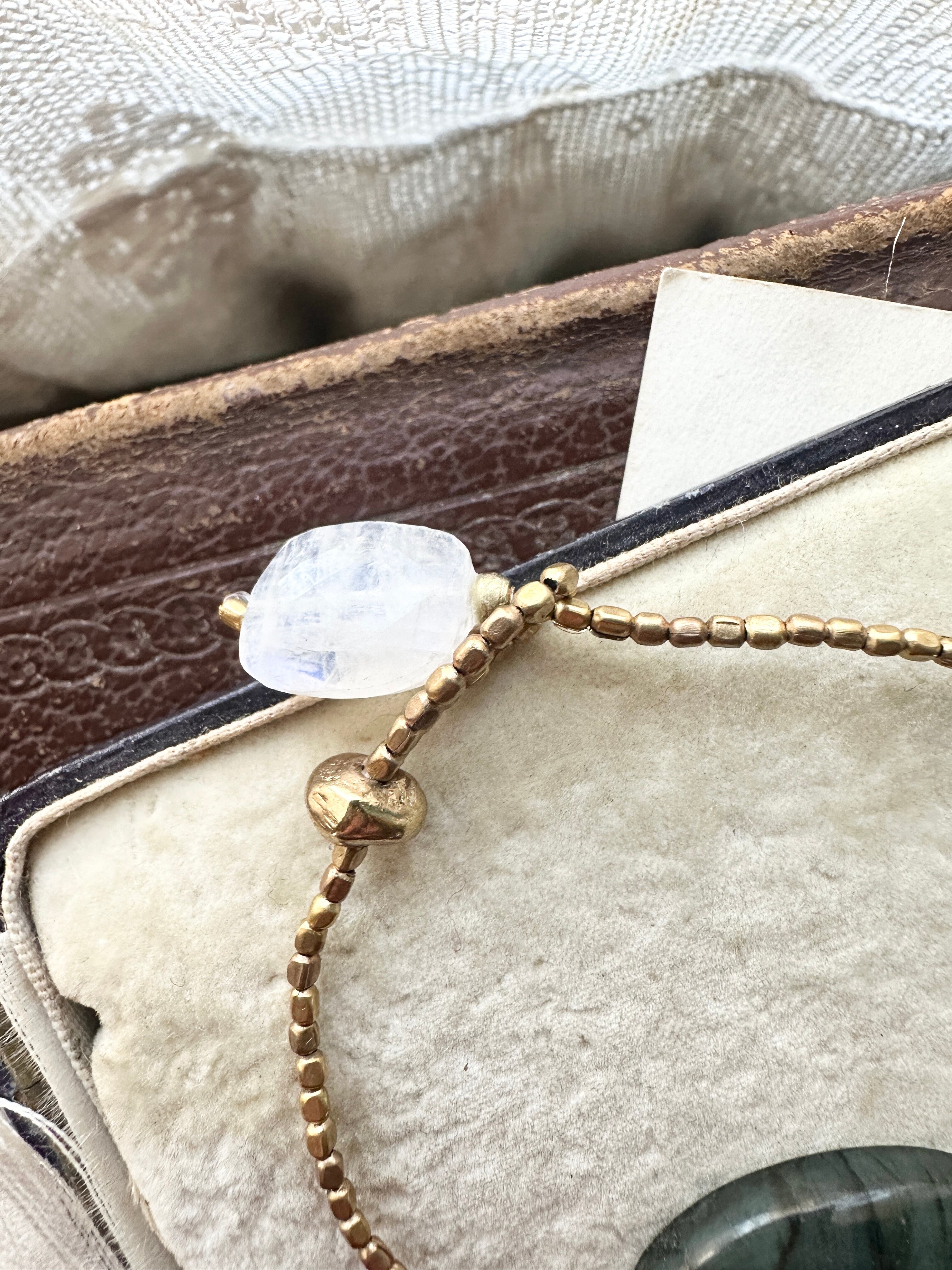 ラブラドライド × アフリカン真鍮ビーズ レインボームーンストーン ブレスレット