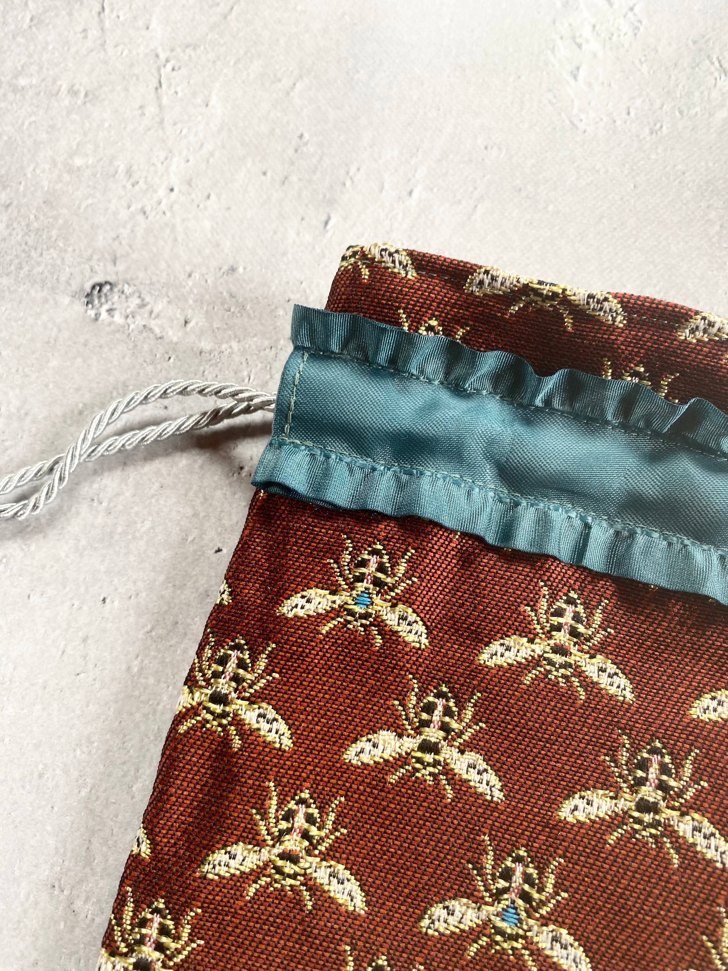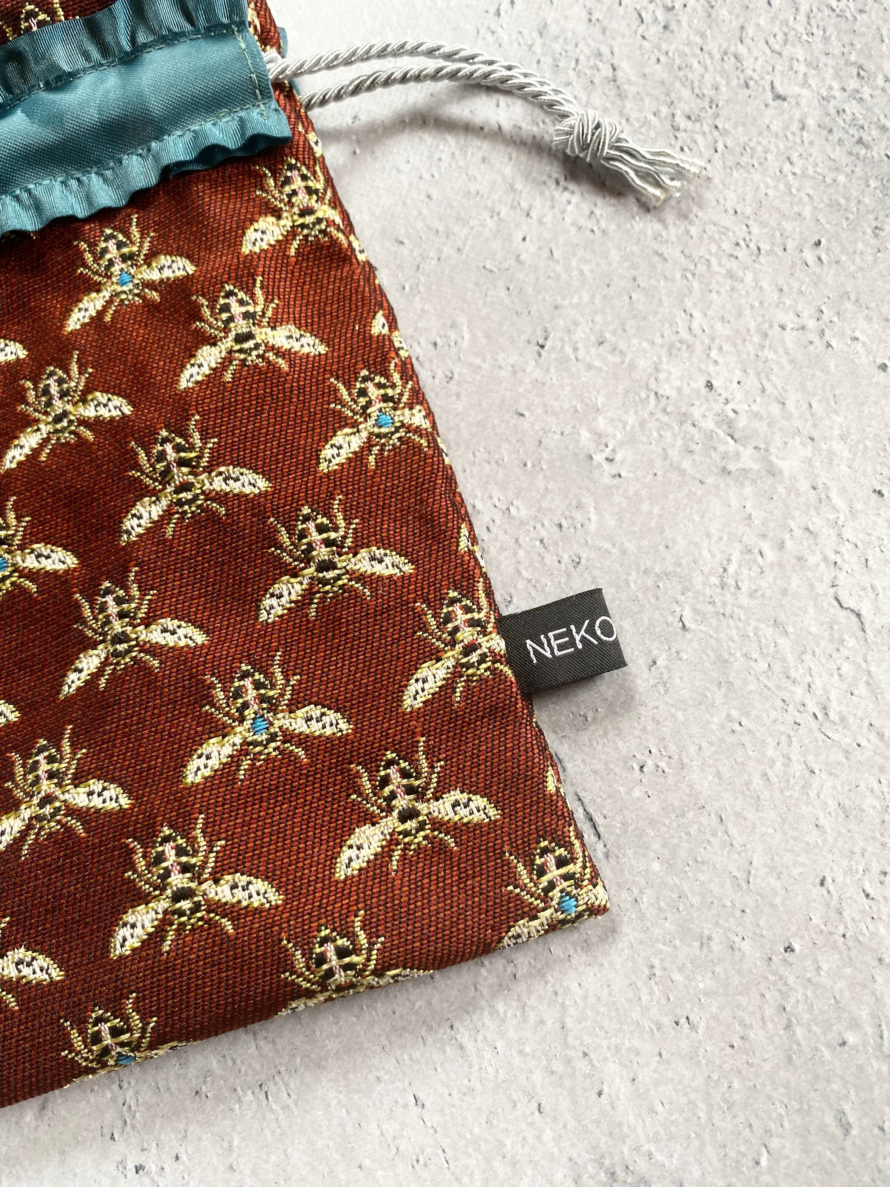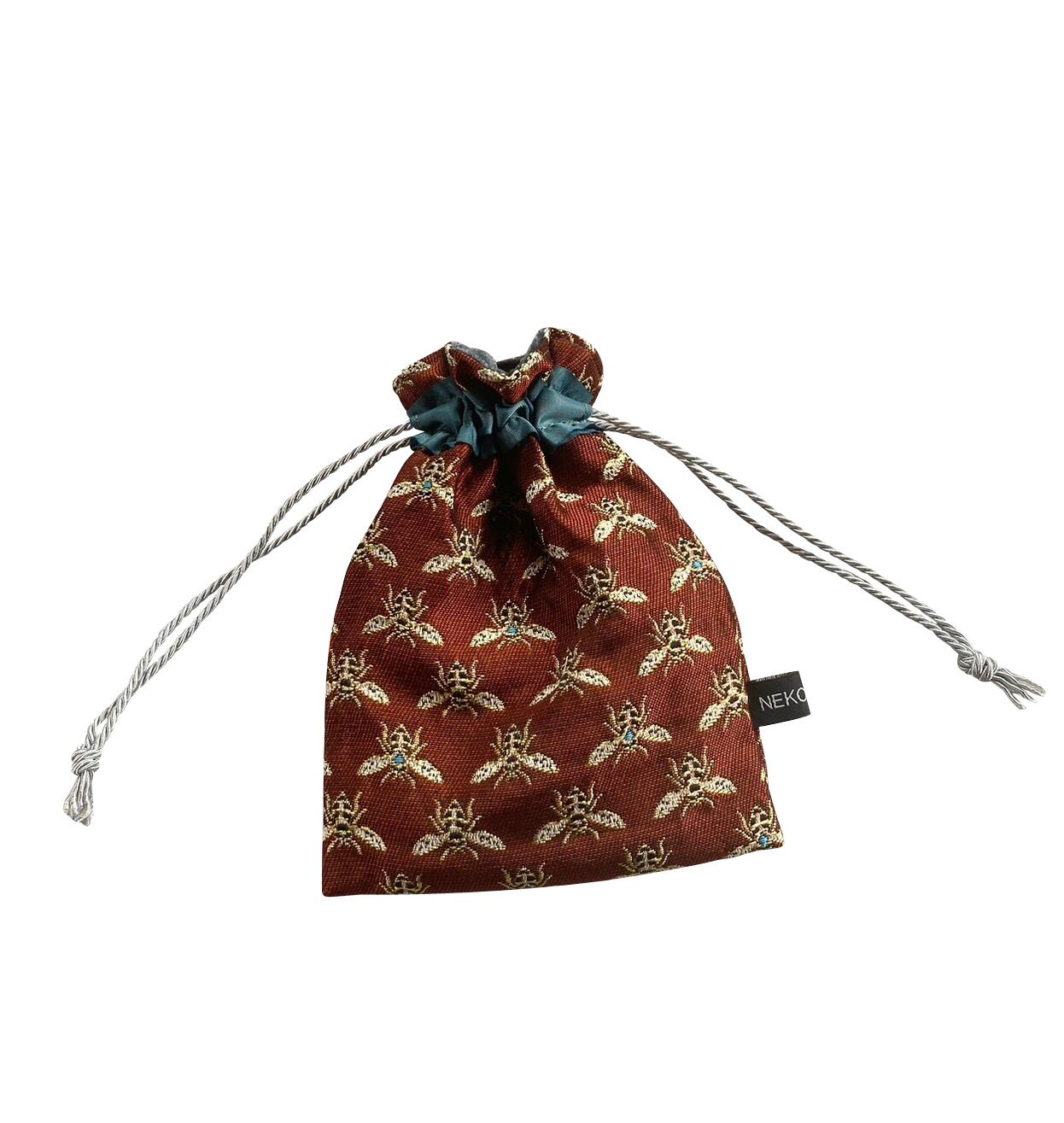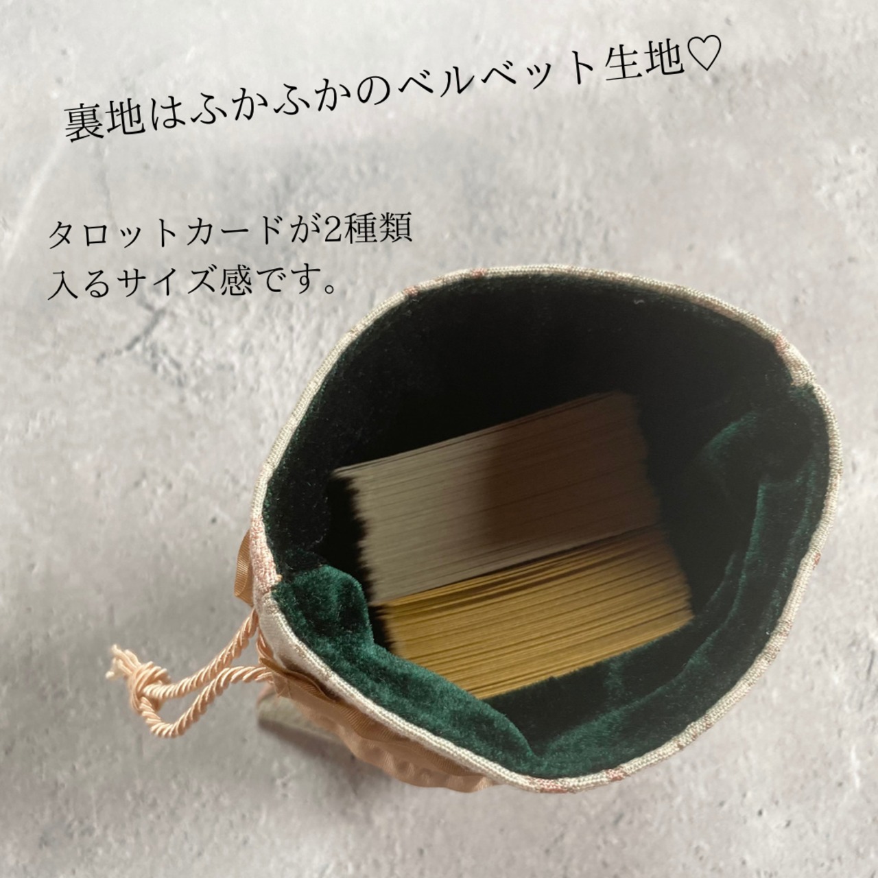 フリルリボンの巾着型タロットカードケース ハンドメイド Made in JAPAN フランス製ジャガード生地