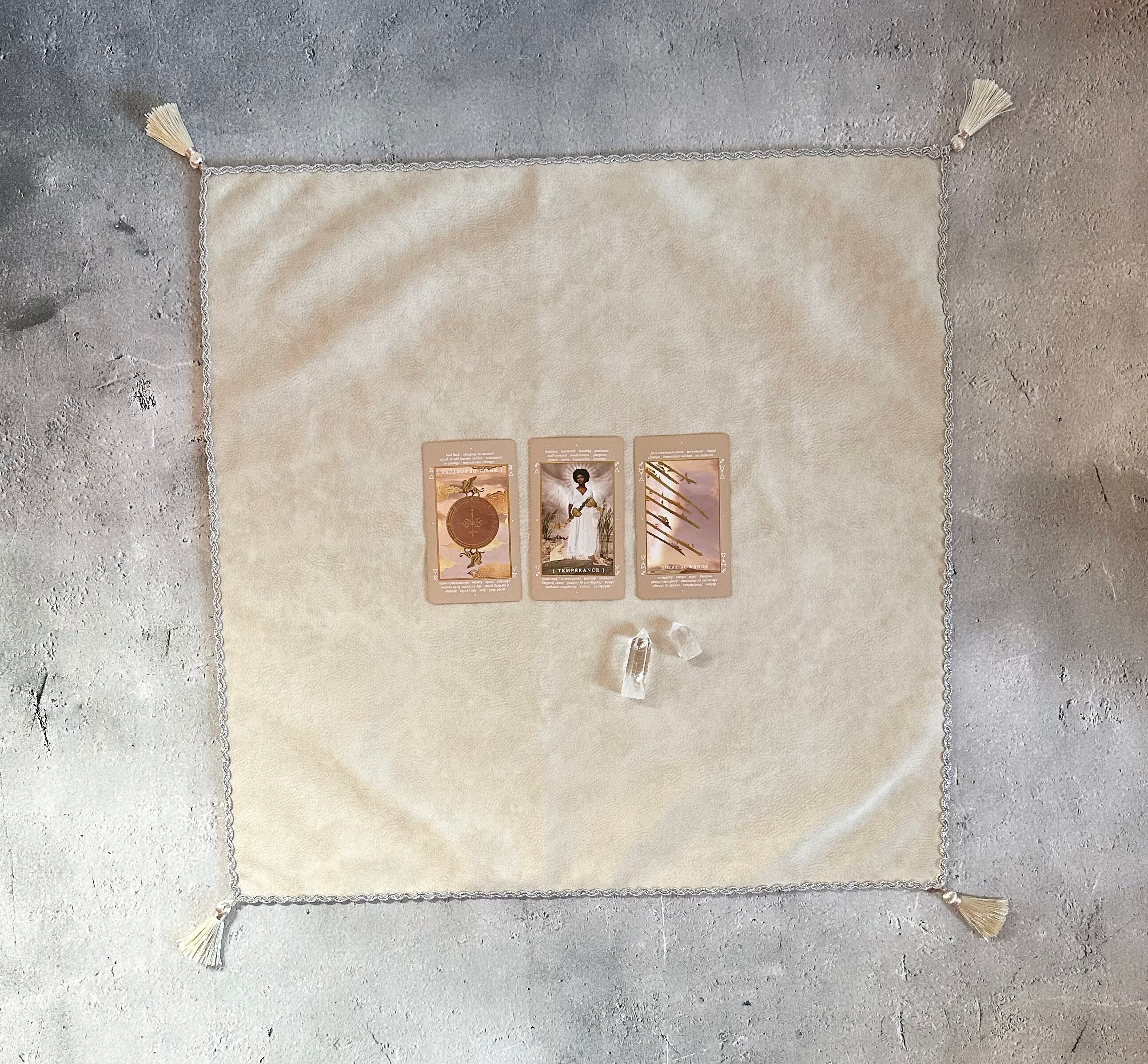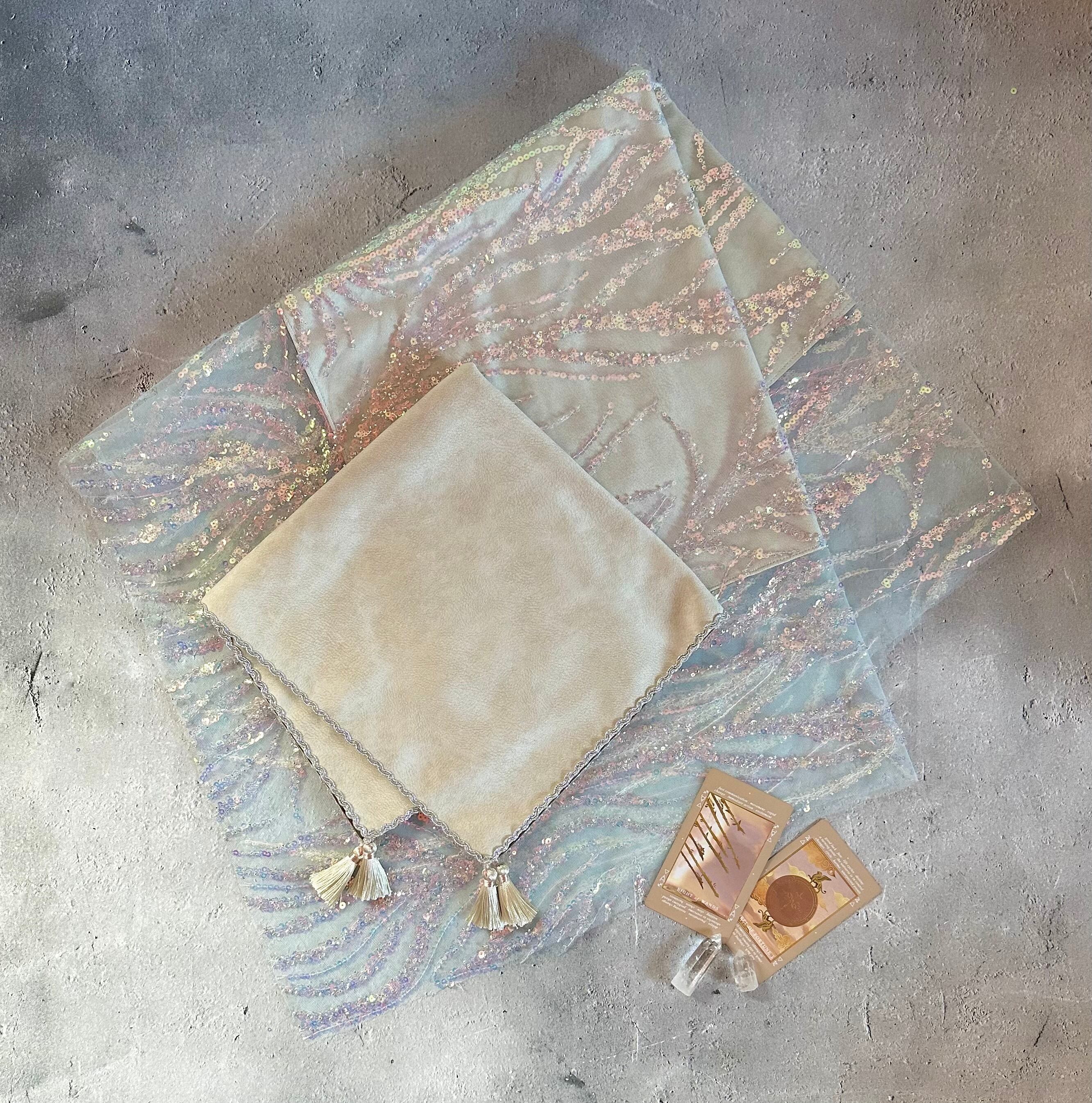 こちらは総レースのベースマットと、シャッフル用タロットクロスセットです。