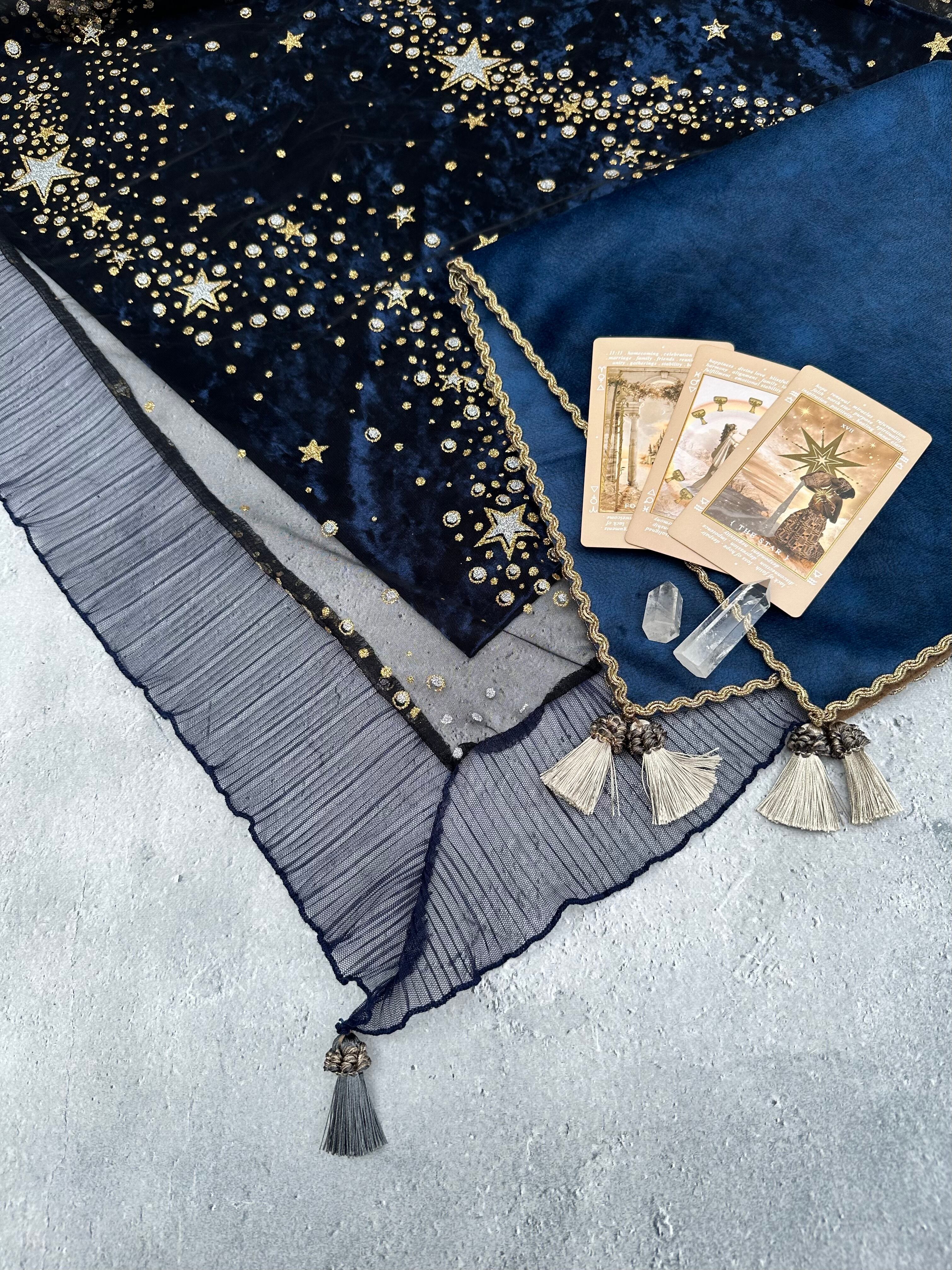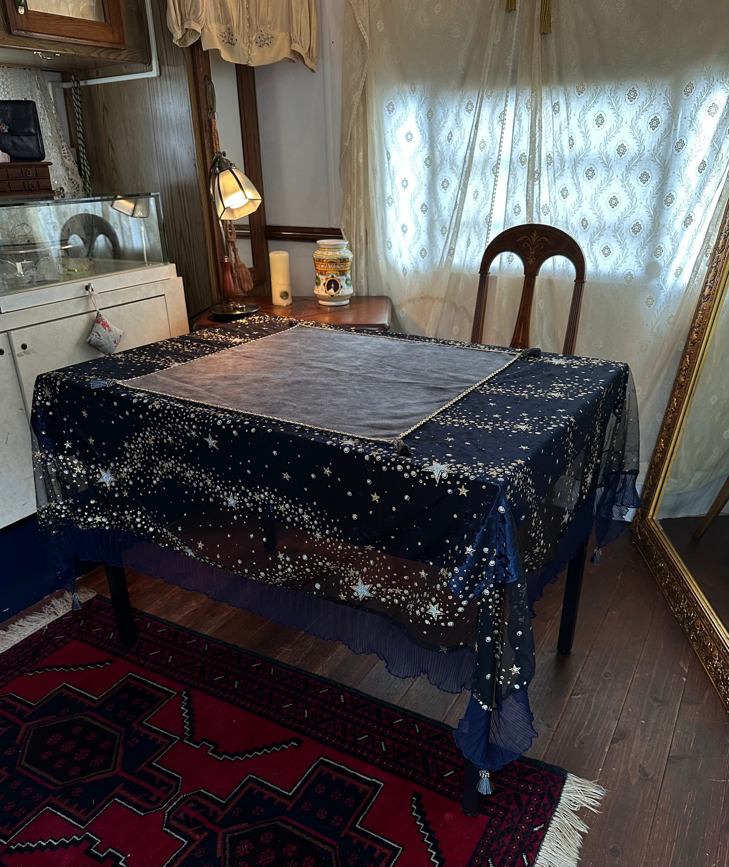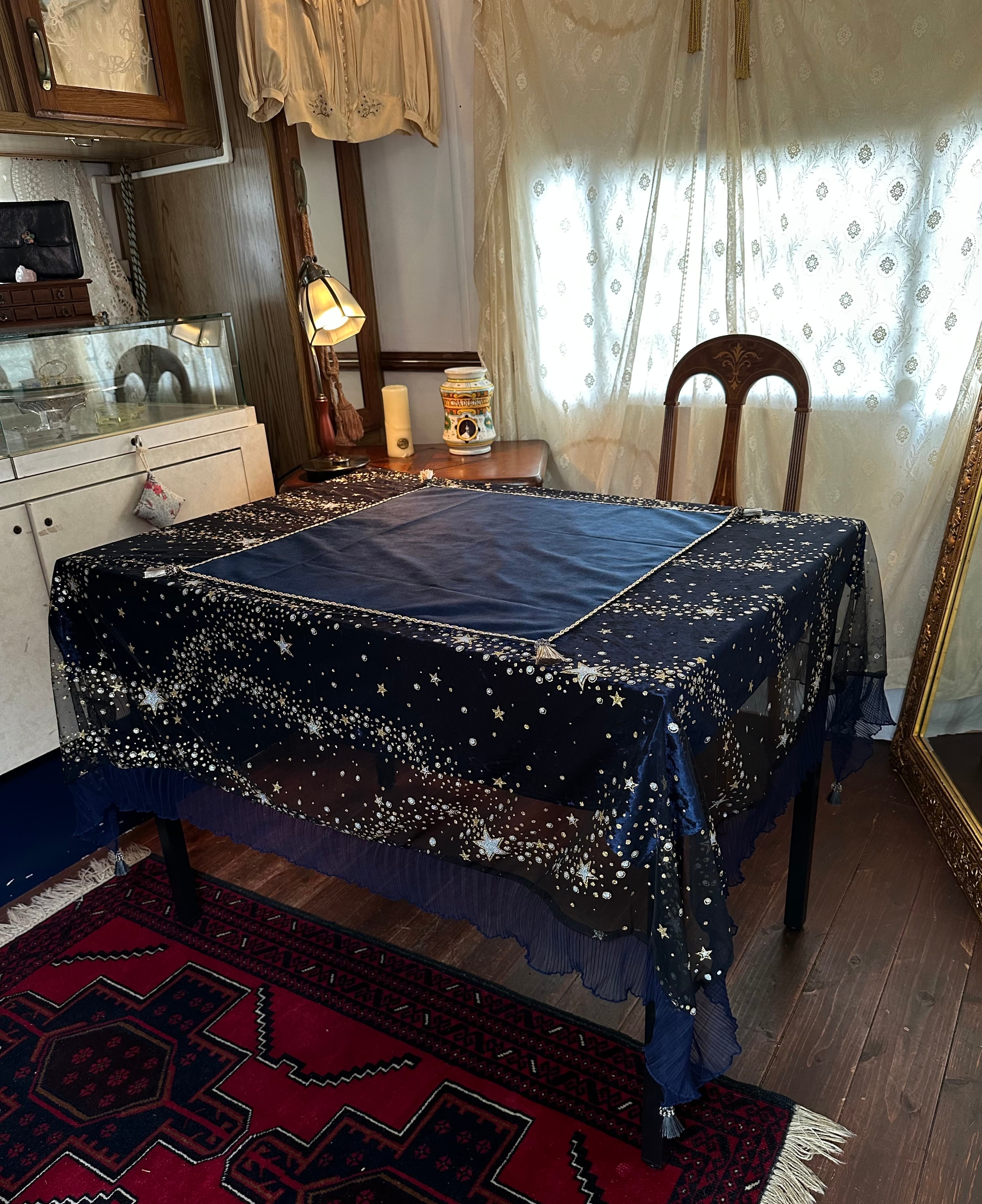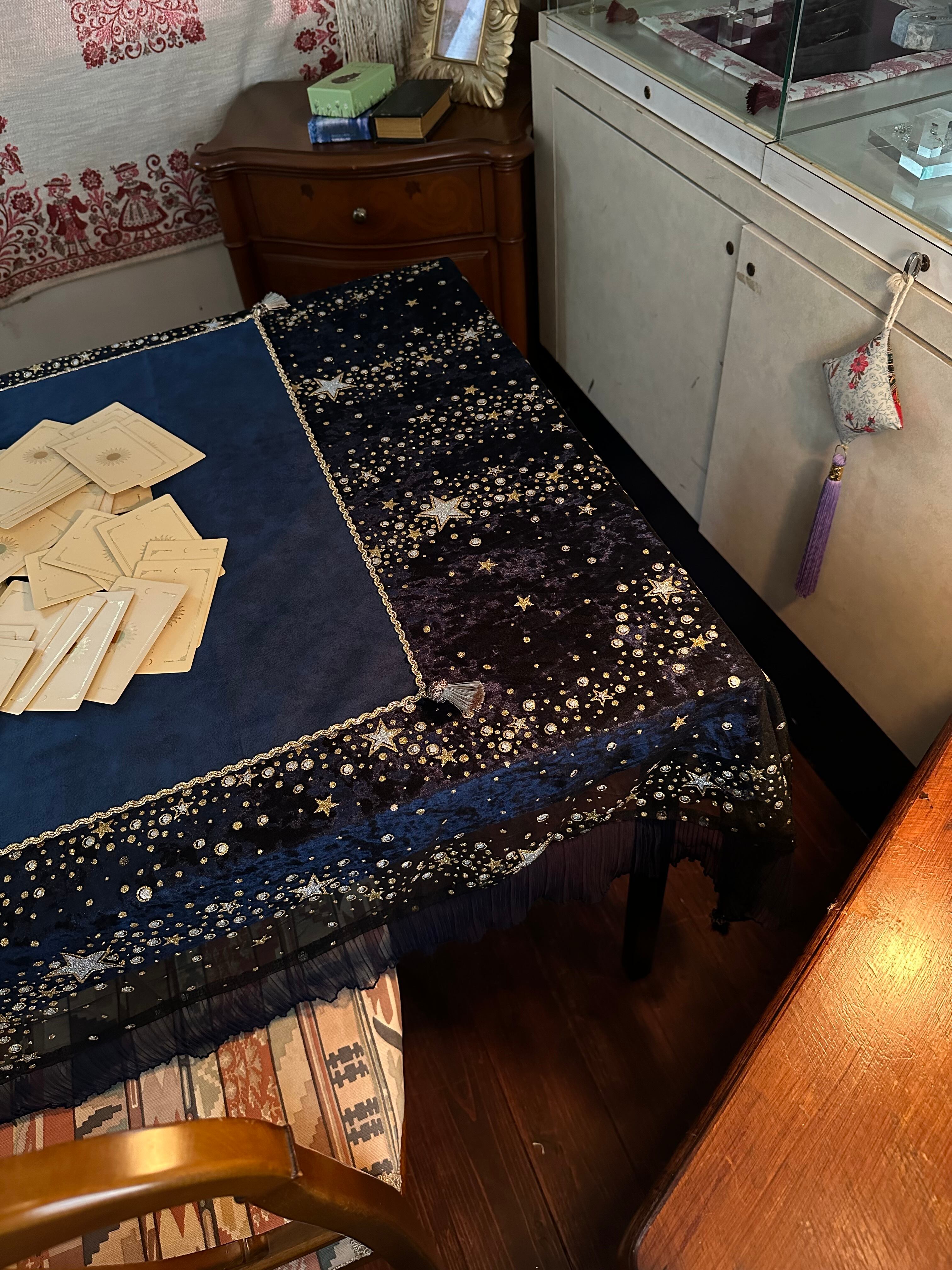 豪華⭐︎タロット用テーブルドレス3点セット 星柄レース ブラック×ネイビー