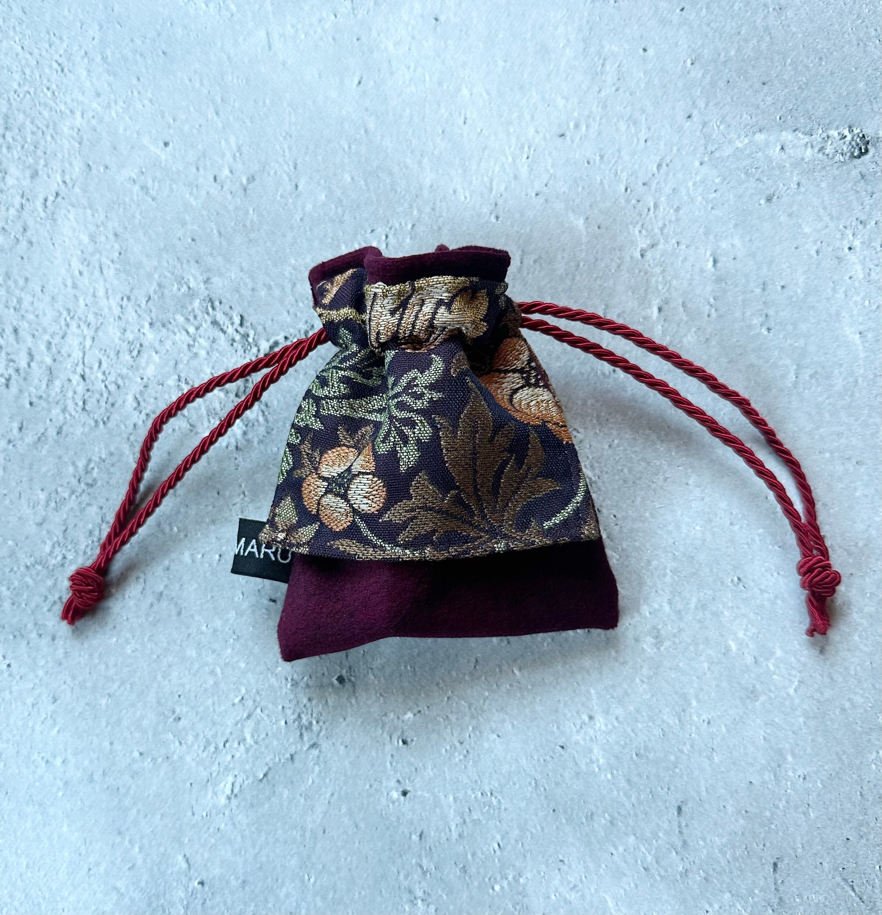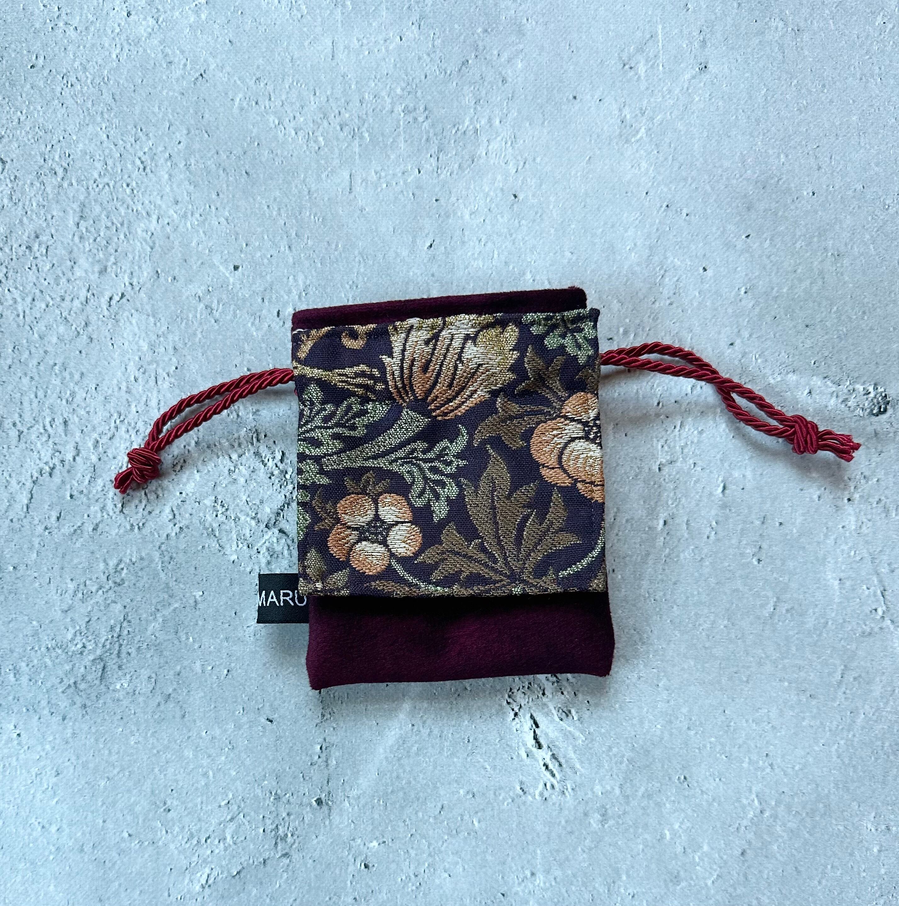 ウィリアムモリスジャガード生地の端切れで作ったストーンポーチです。