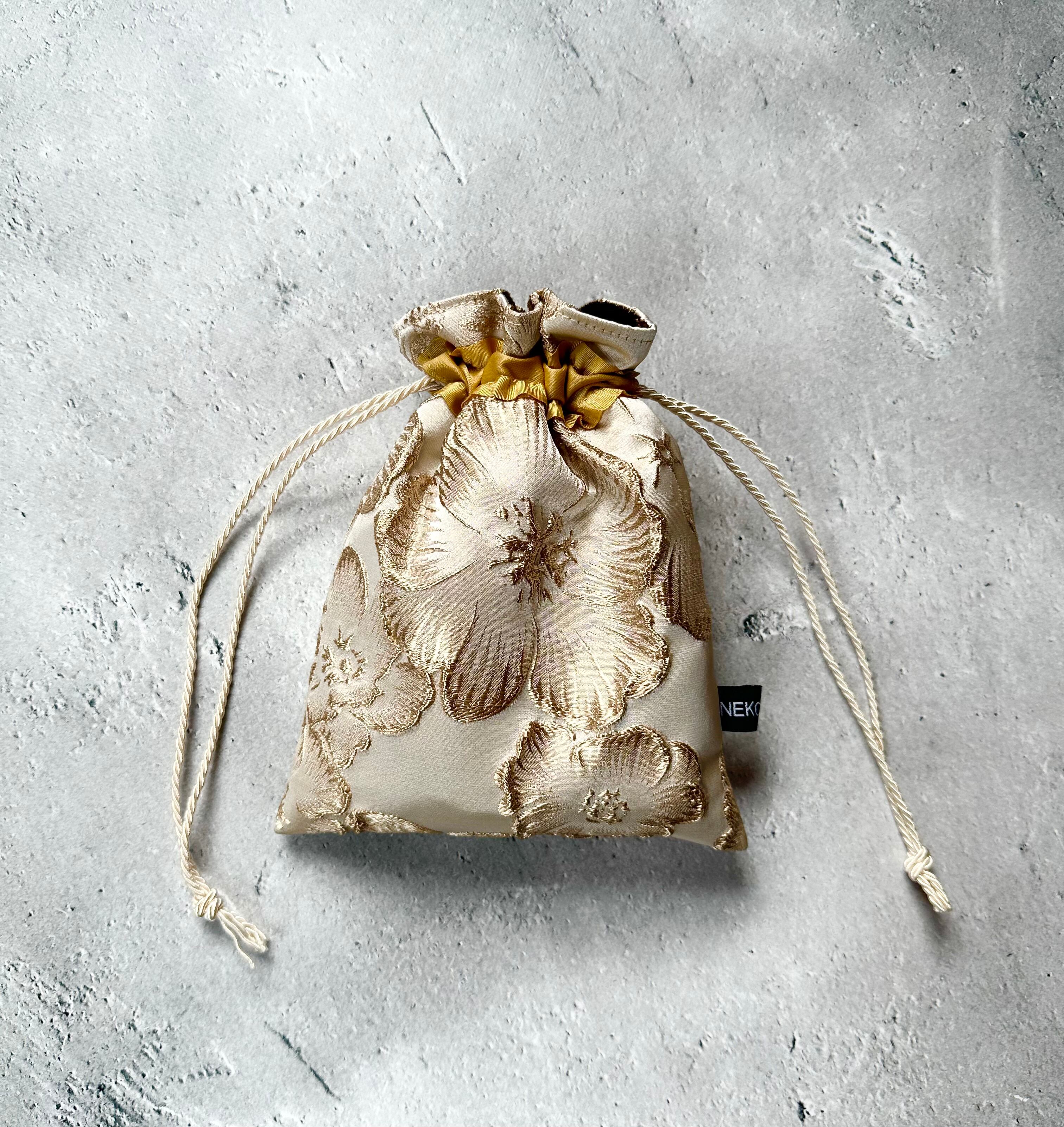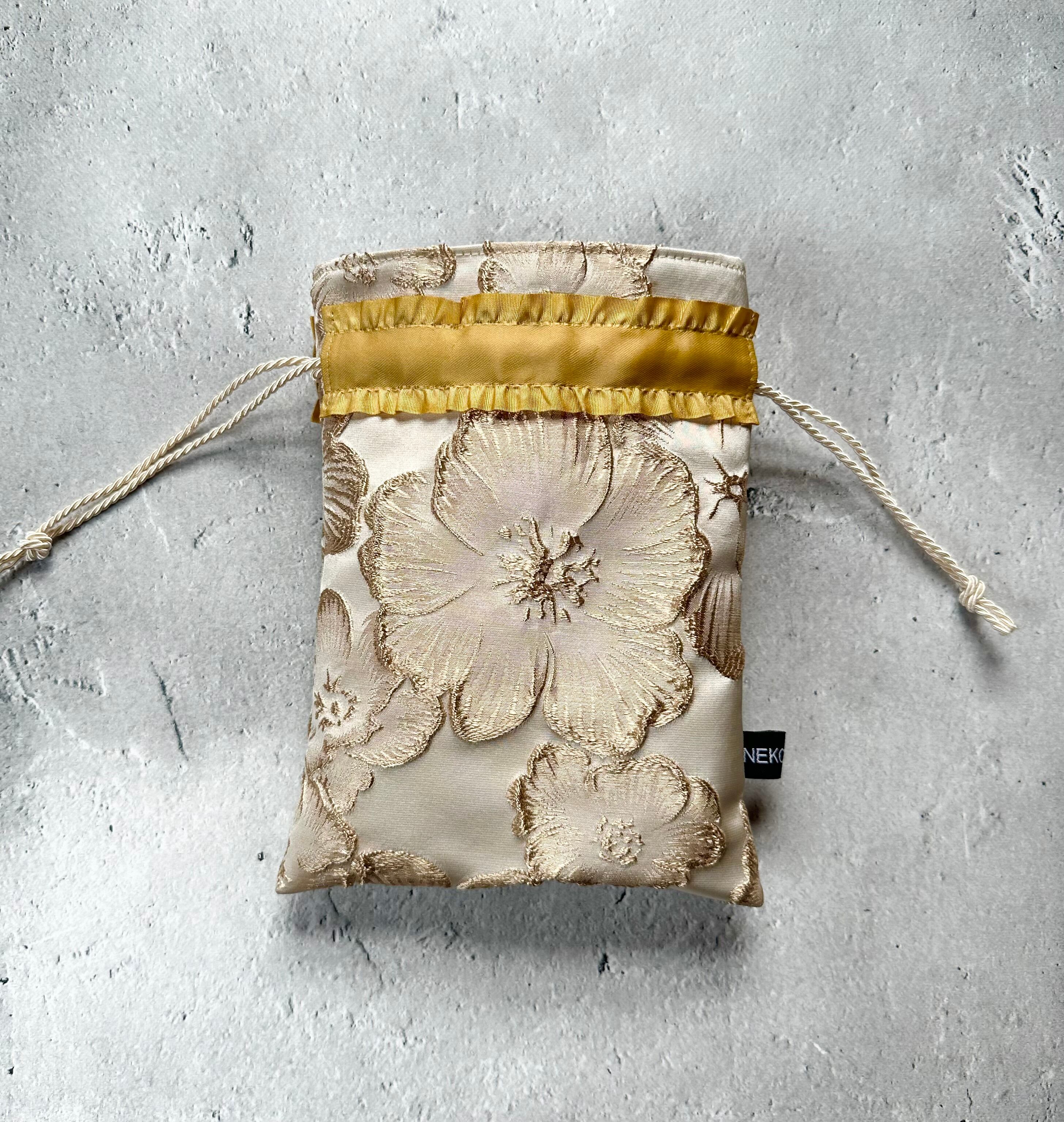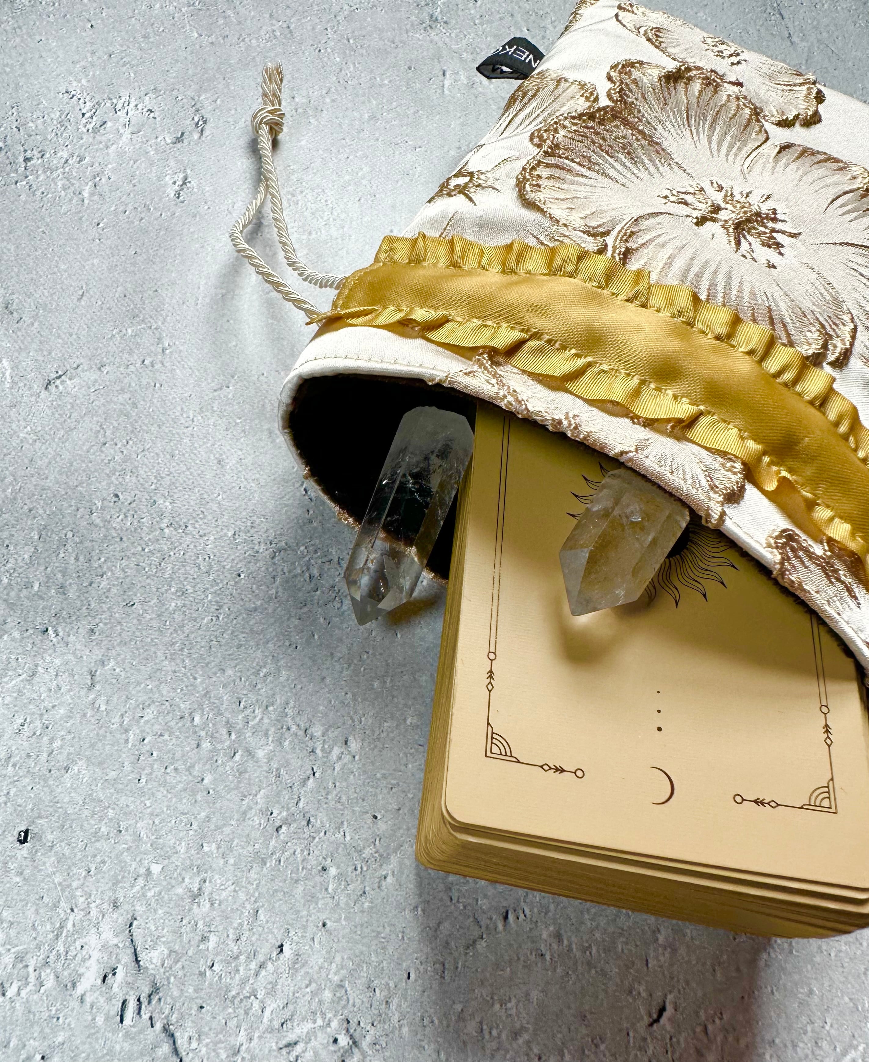 タロットカード専用ケース オラクルカードケース 海外輸入立体ゴールドフラワー生地 ハンドメイド