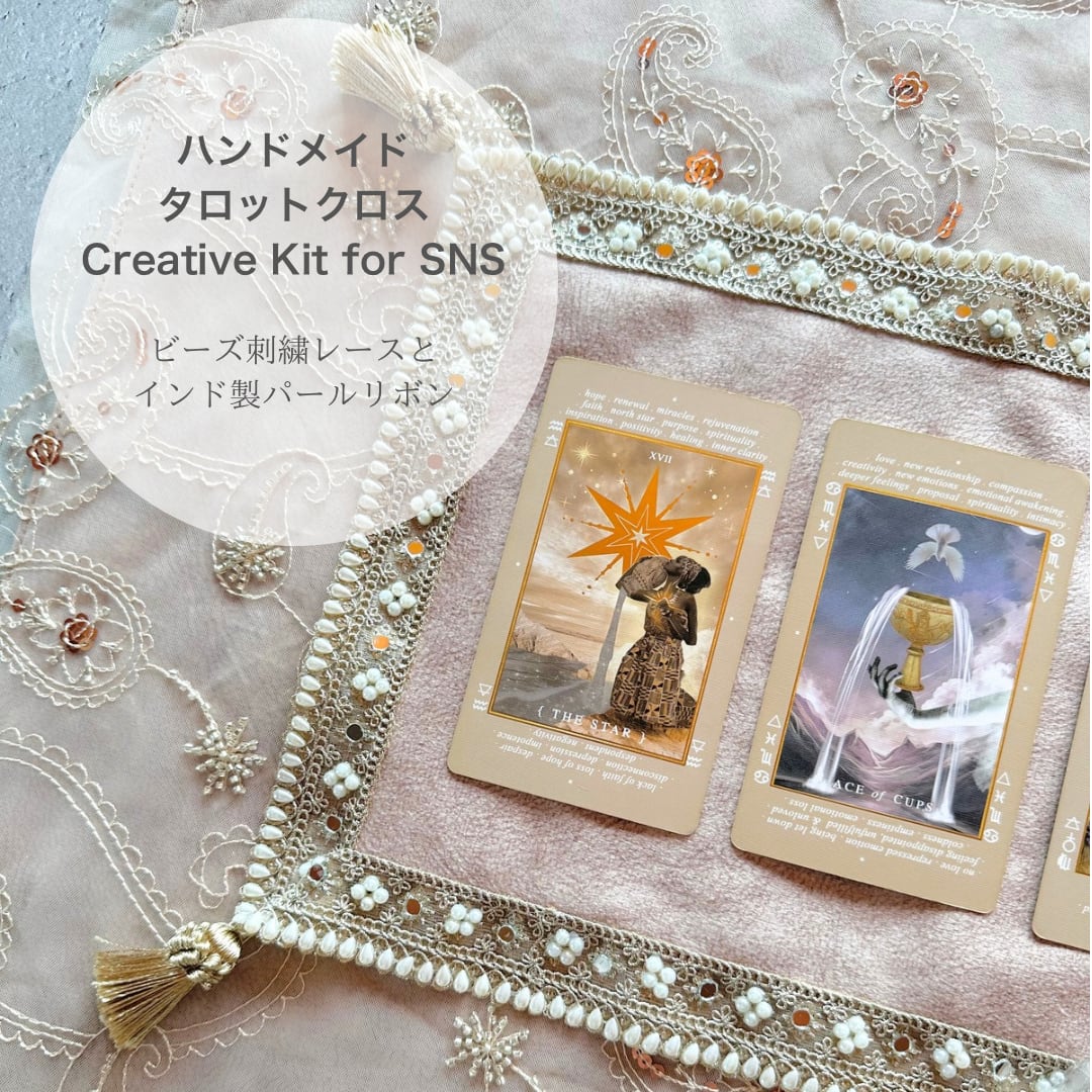 ★縦長配信の時に、画面写りがよいタロットクロスが欲しくて作りました。インドレースがしっかりと画面に写りますので、華やかな雰囲気を出す事が出来ます。
