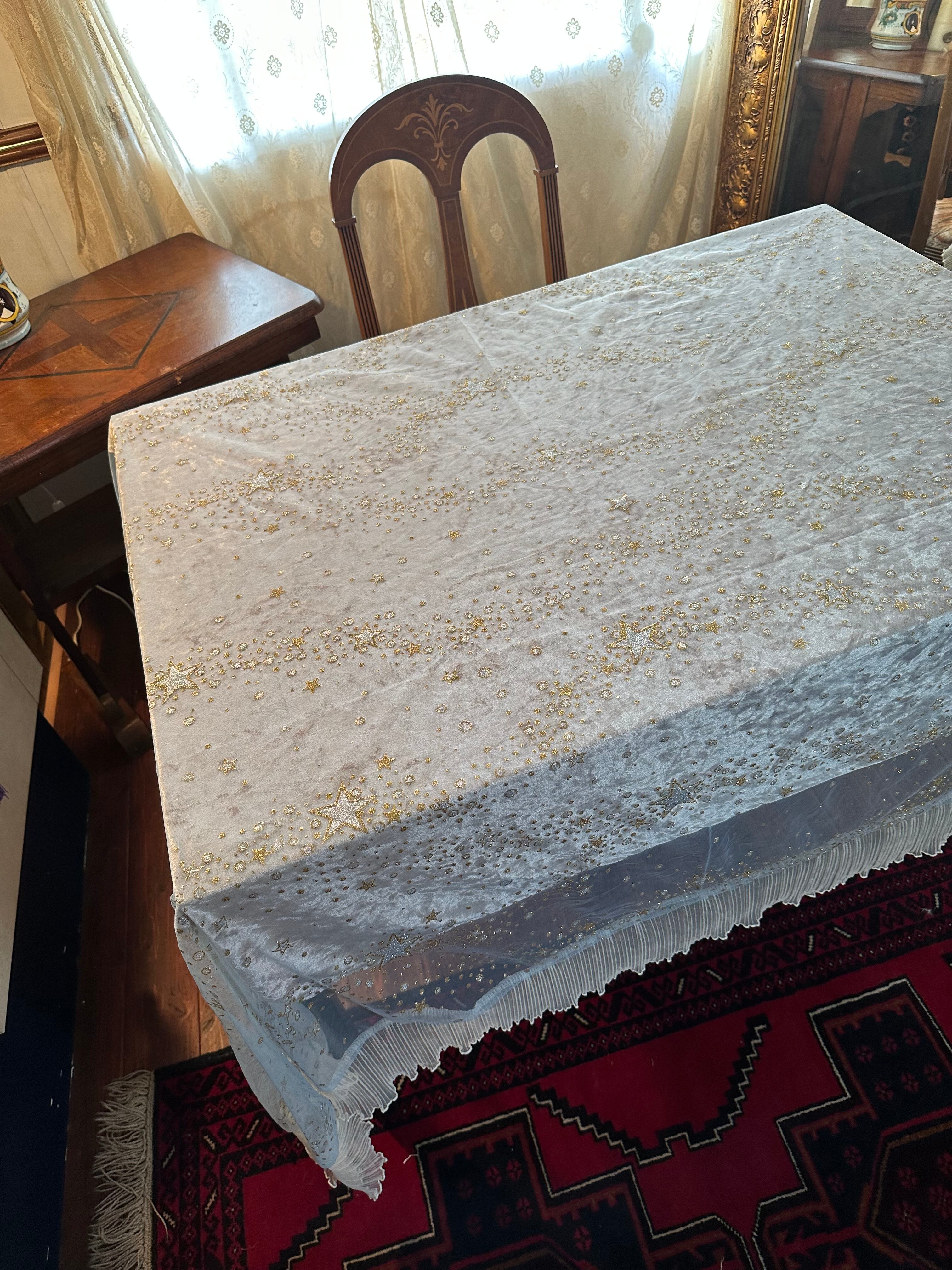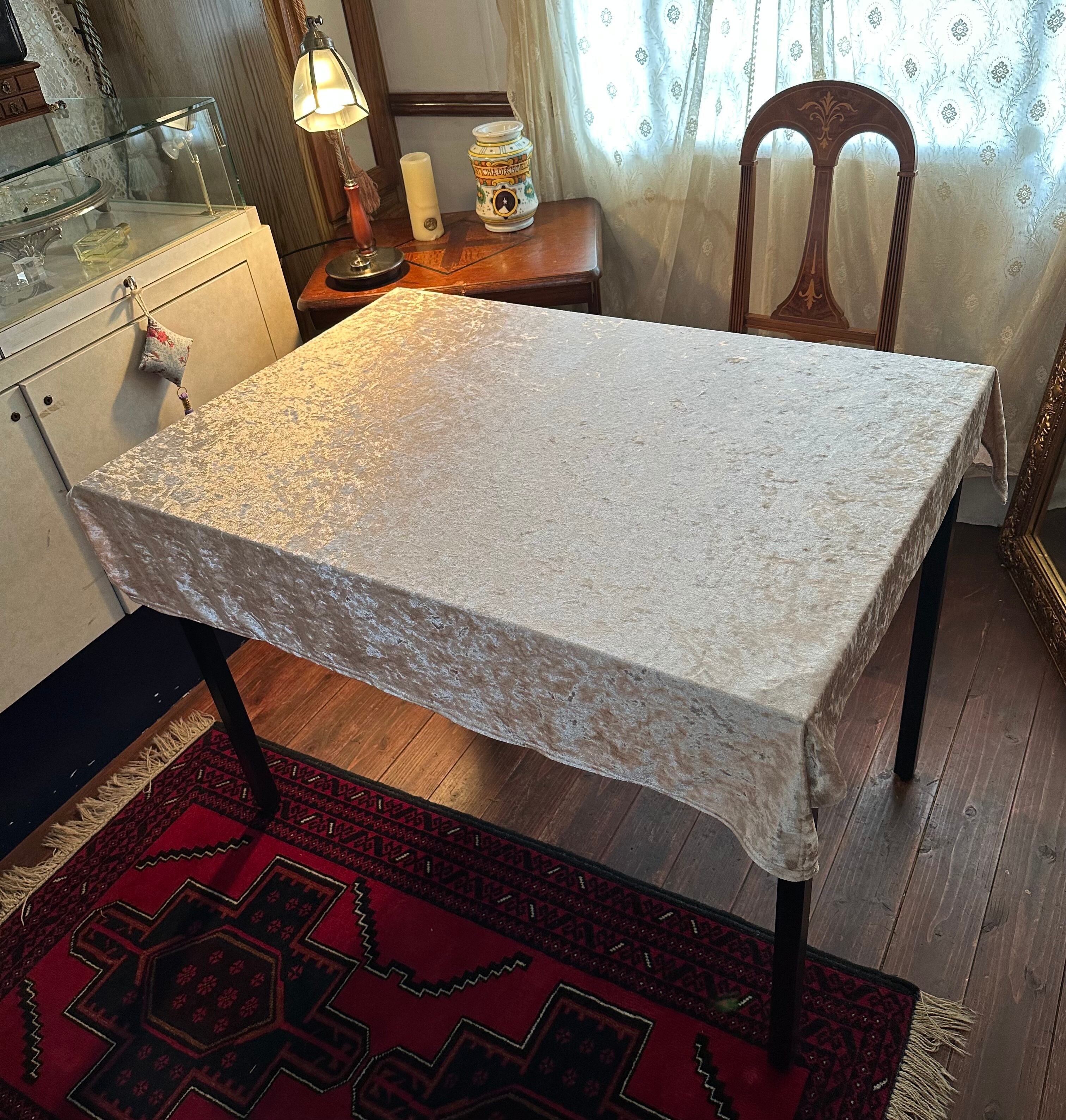テーブルを隠すためのベロアベースクロスがついています。レースの下に敷いて使う事でより美しい見た目になります。
