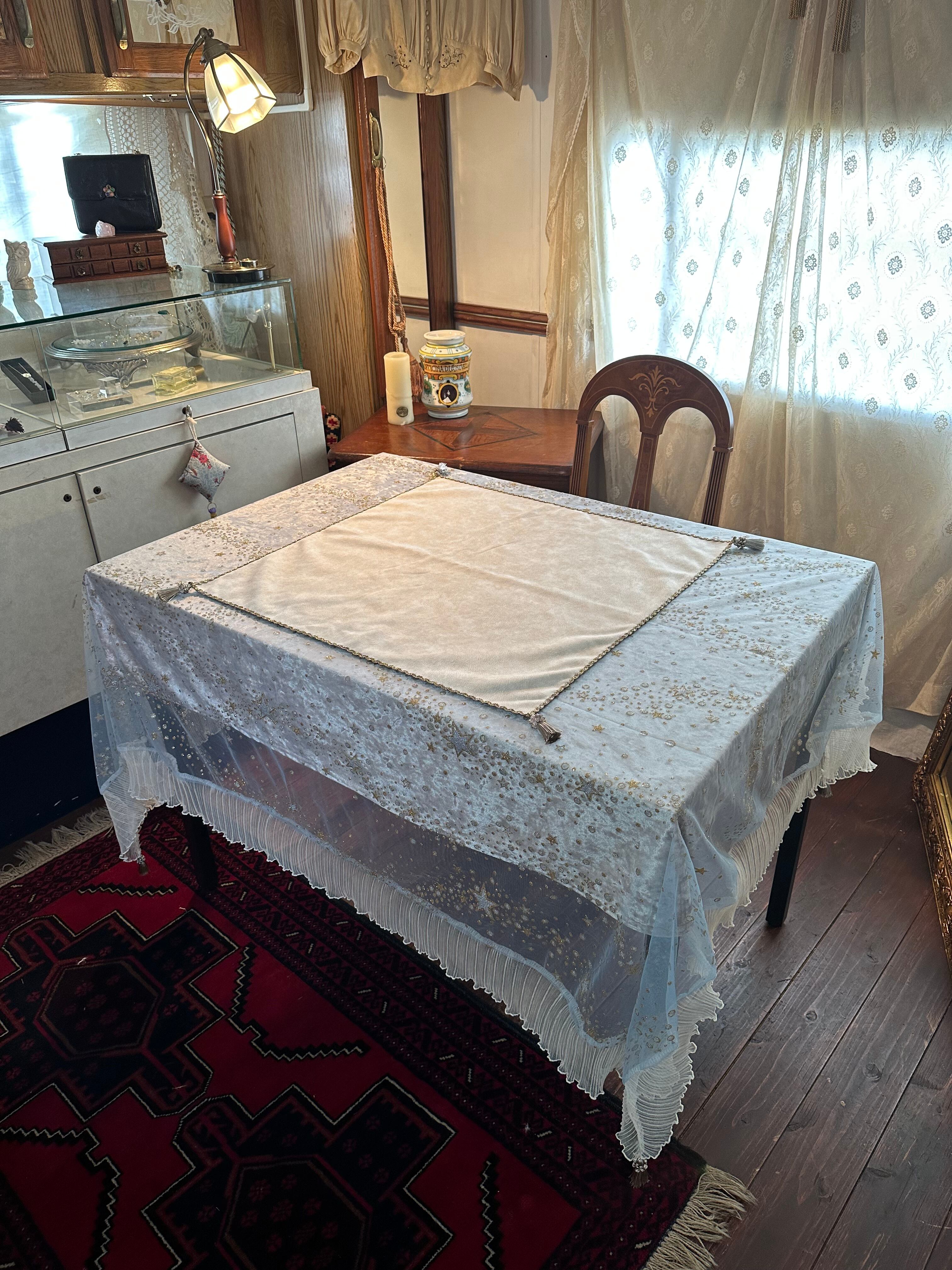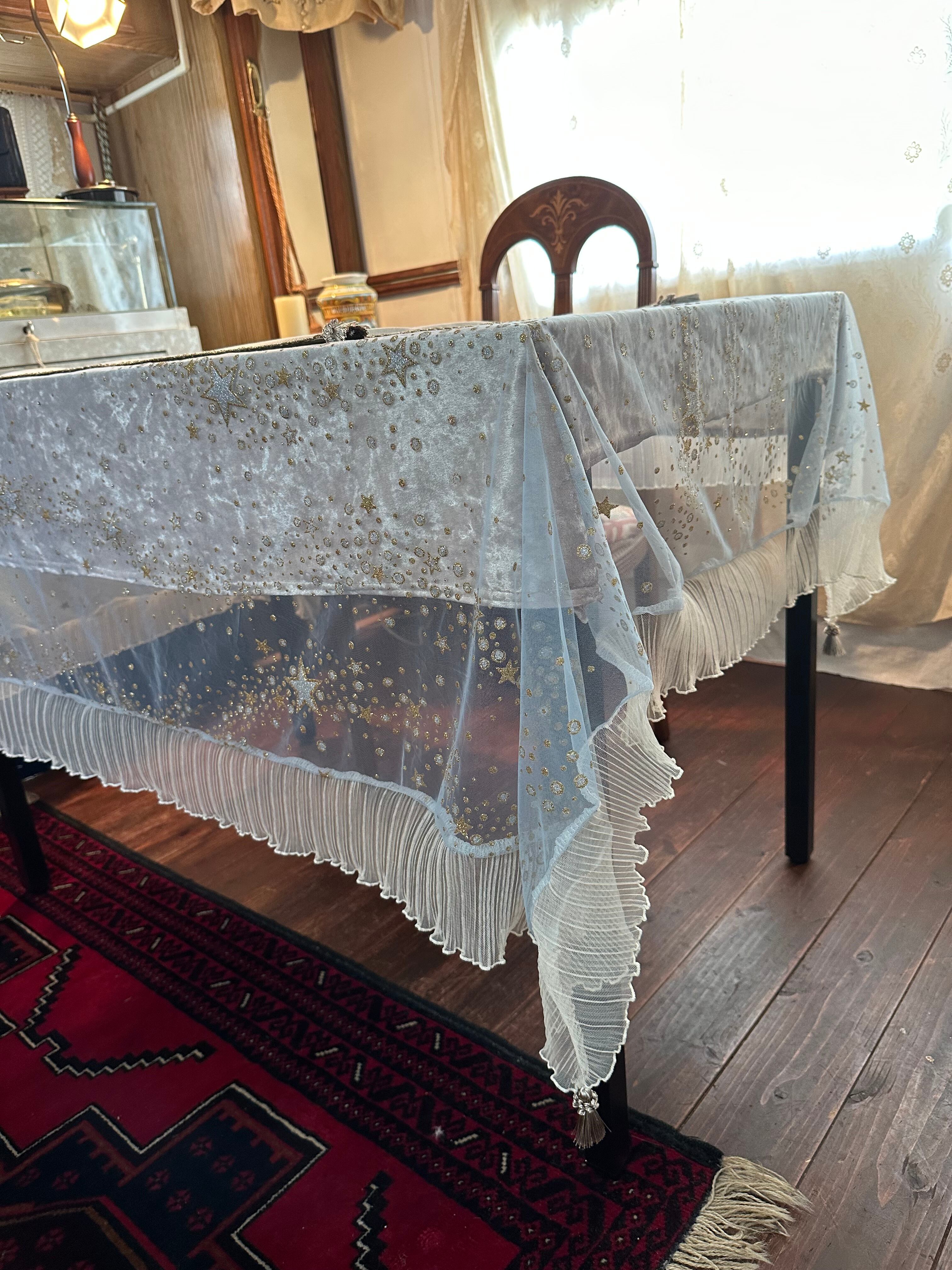 ★美しい星柄レースをたっぷり使った、豪華タロット用テーブルドレス3点セット。占いの気分を高める、素敵なインテリア空間を演出します。
